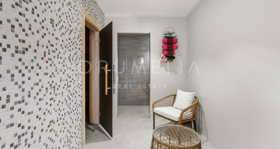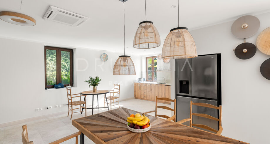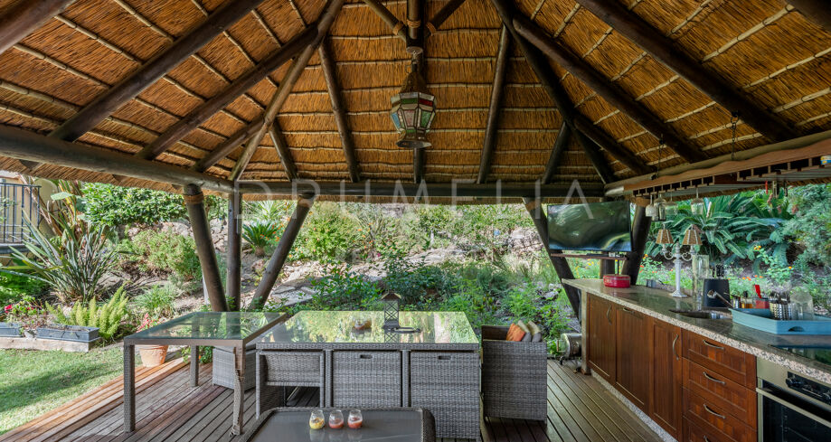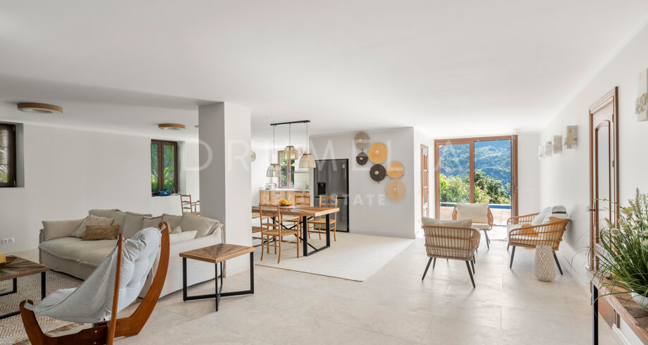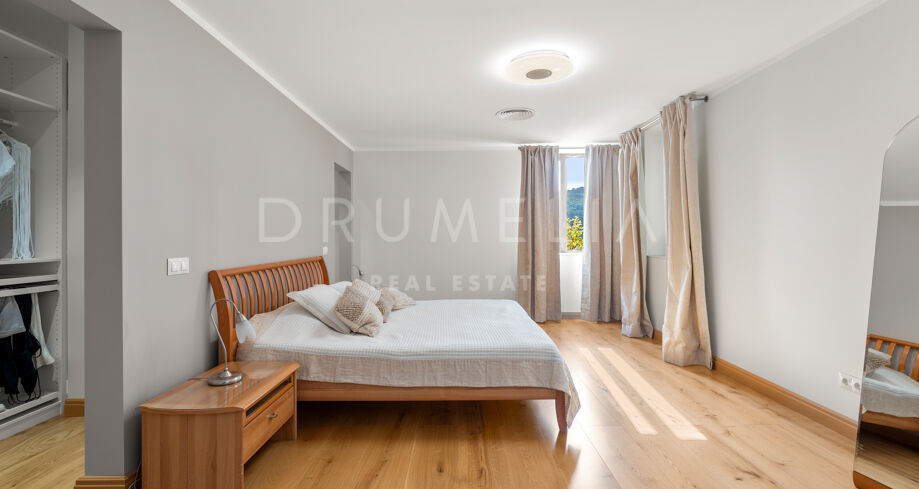 The 500㎡ property blends beautifully with its lush natural surroundings. Its design features a classic architectural style with an open-plan layout, including a living room with access to a terrace that offers impressive mountain views. The interior offers luminous living areas, a fully equipped kitchen, 5 serene bedrooms, and 6 bathrooms. Key features like the private swimming pool and spacious terraces enhance the property’s charm.