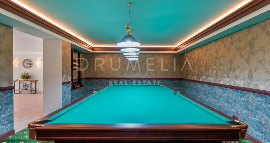 The basement level is dedicated to leisure and entertainment, boasting a versatile space, a cinema room for movie nights, and a games zone to have fun with friends and family, a kitchen and a bedroom and bathroom. This property is ideal for those who value eco-conscious living, offering an opportunity to harmonize with nature.