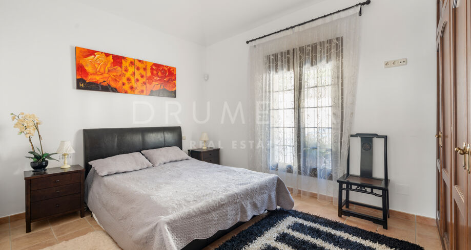 The outdoor spaces of the property are designed for relaxation and entertainment, with a well-maintained garden. Surrounded by beautifully landscaped grounds, the property offers an ideal setting for outdoor dining and swimming. Its location in Monte Mayor is perfect for families and professionals, with proximity to nearby facilities such as schools and restaurants.