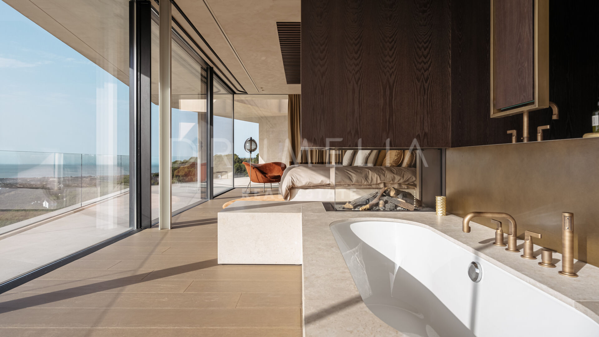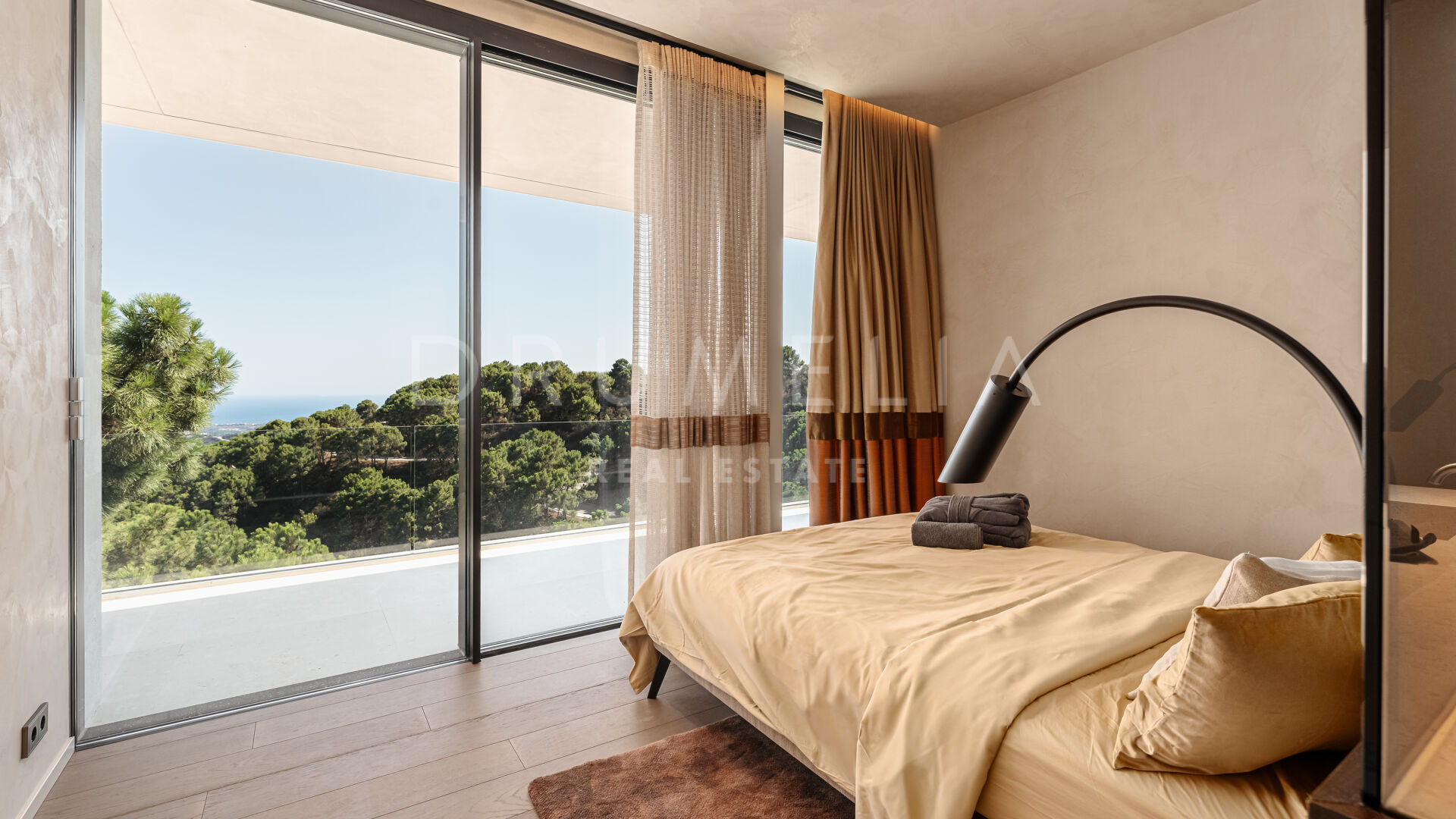 This brand-new contemporary villa in Monte Mayor, Benahavis, is a hidden gem within an exclusive gated community spanning 330 hectares of valleys and hills, with more than half preserved as a green belt zone. Surrounded by protected nature and luxury properties, the estate offers 24-hour security, low-density living, and stunning views of the Mediterranean Sea, Gibraltar, and the African coast. The villa, located just 15 minutes from the sea and close to amenities, world-class golf courses, shops, restaurants, bars, beaches, and renowned schools, promises a luxurious lifestyle in the Marbella area.