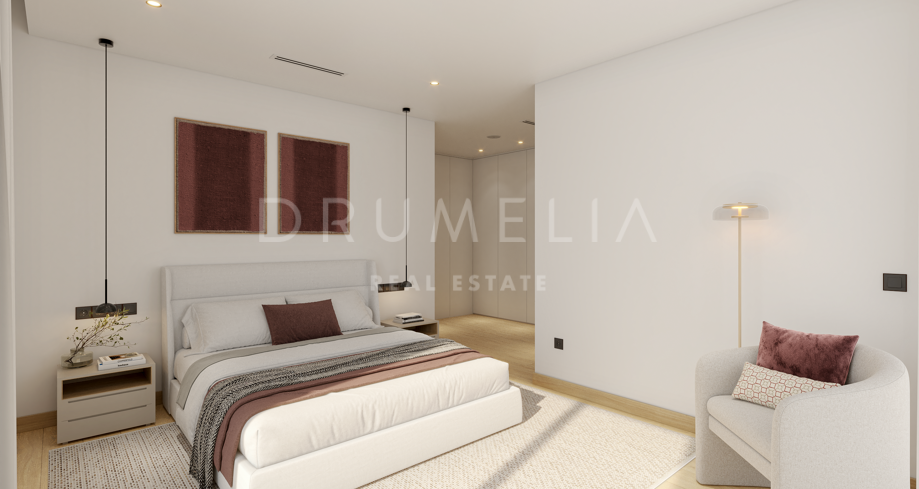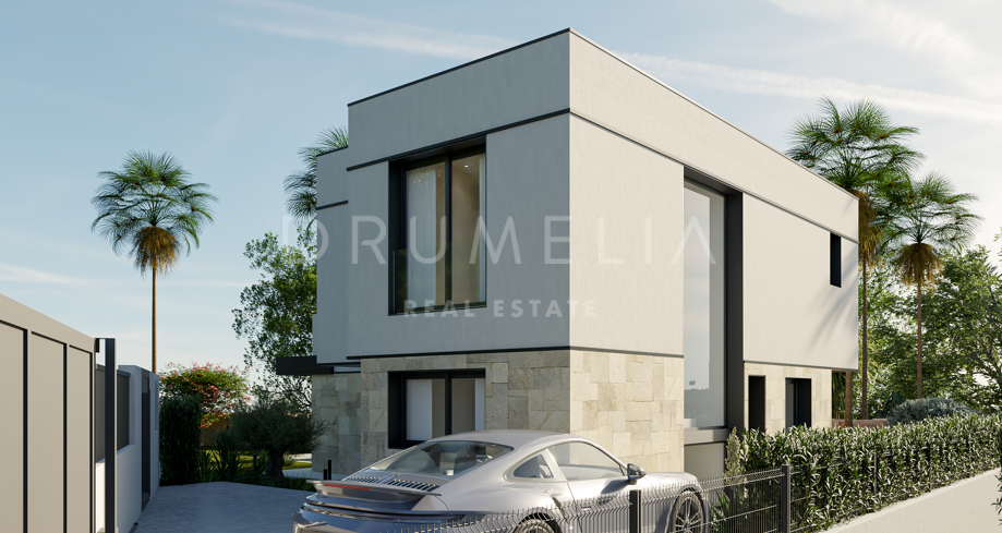 Surrounded by subtropical greenery, all amenities and luxury properties of the prestigious area, the plot of 419 m² will host a gorgeous state-of-the-art villa of 254 m² with 103-m² terraces. The house will feature a modern design combining the best materials with a contemporary architecture that blends perfectly into lovely surroundings. It offers 4 bedrooms, 3 bathrooms and a guest toilet. On the ground floor, a nice entrance hall leads to the impressive living and dining room with open plan fully fitted kitchen with laundry area and access to the porch with a beautiful swimming pool; a guest bedroom or office; and a guest toilet. The first floor consists of the Master bedroom suite with a dressing room, a bathroom and access to a large terrace, plus 2 other bedrooms and additional bathroom. Covered and uncovered terraces invite to enjoy glorious Mediterranean life and serene garden views. The property also includes a 92 m² basement with natural light, a multi-use room that can be your leisure area, a bathroom, storage and tech rooms.
