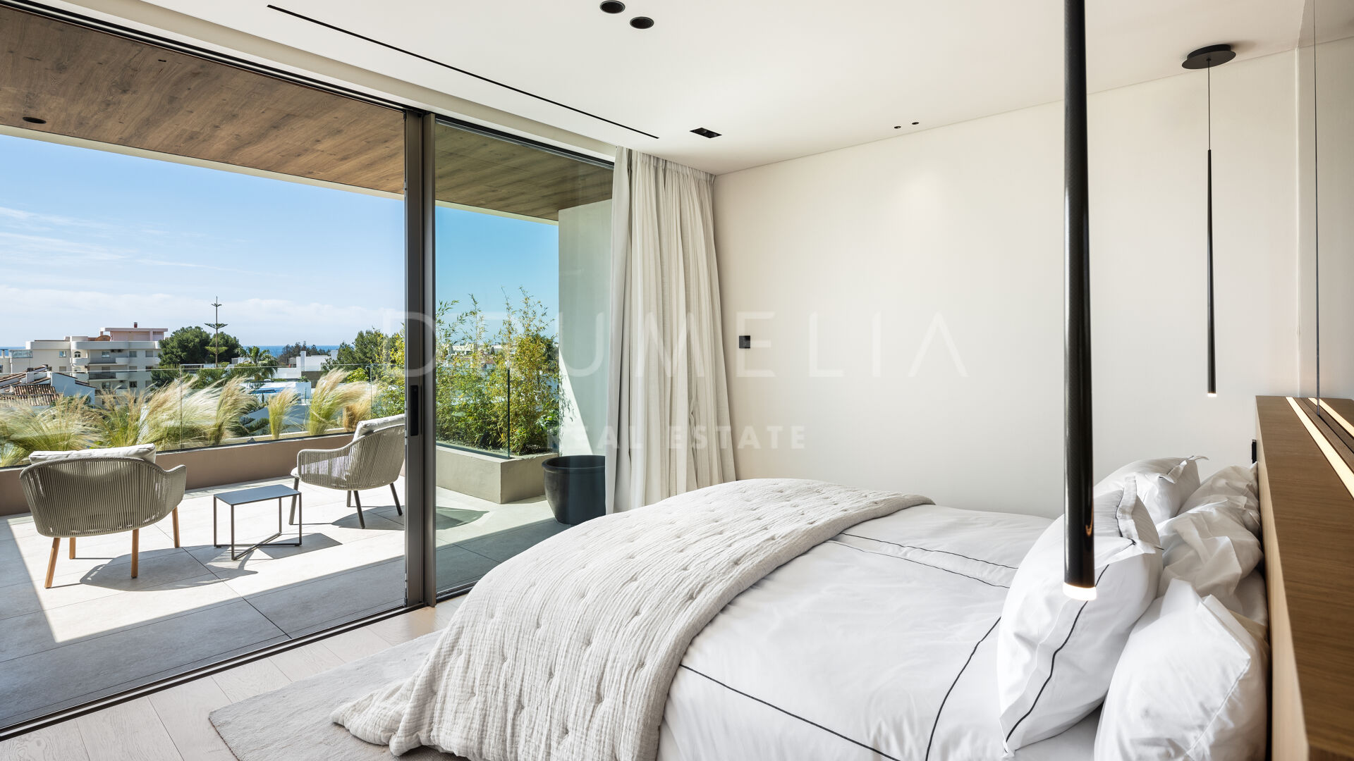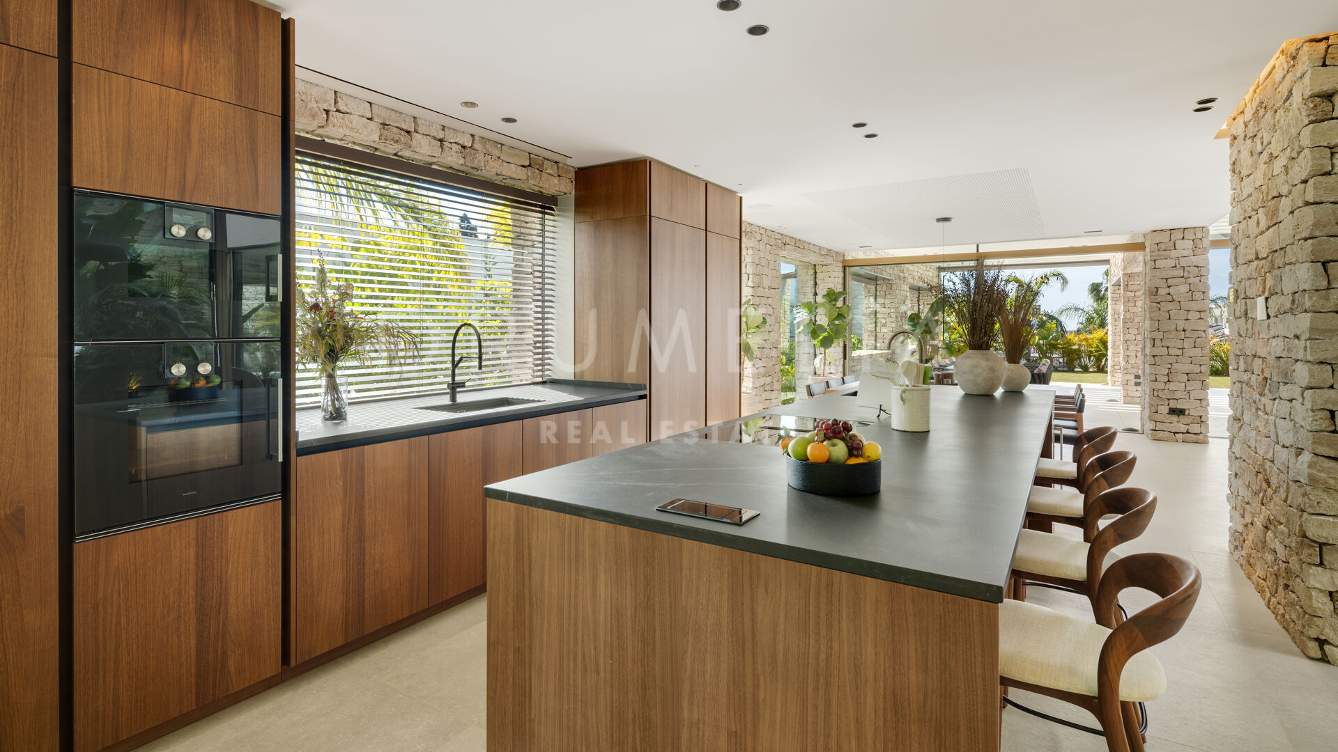 This modern villa is a remarkable architectural gem in Nueva Andalucia, designed to offer an exceptional lifestyle. Just minutes from Puerto Banus, well-known for its luxury yachts, upscale shopping, and vibrant atmosphere, and walking distance to amenities, this unique property merges breathtaking modern design with a prime location. The villa features an impressive infinity pool, an expansive terrace with multiple lounge areas, and a secure private garage.