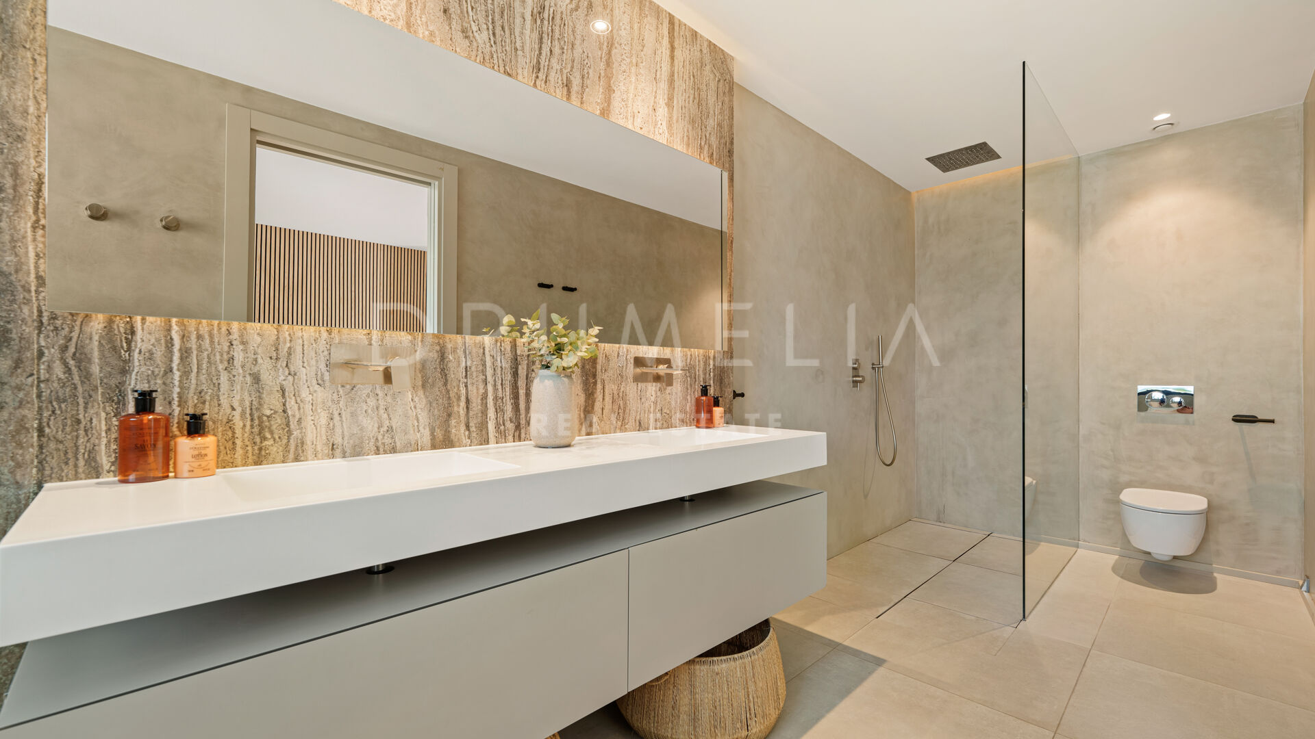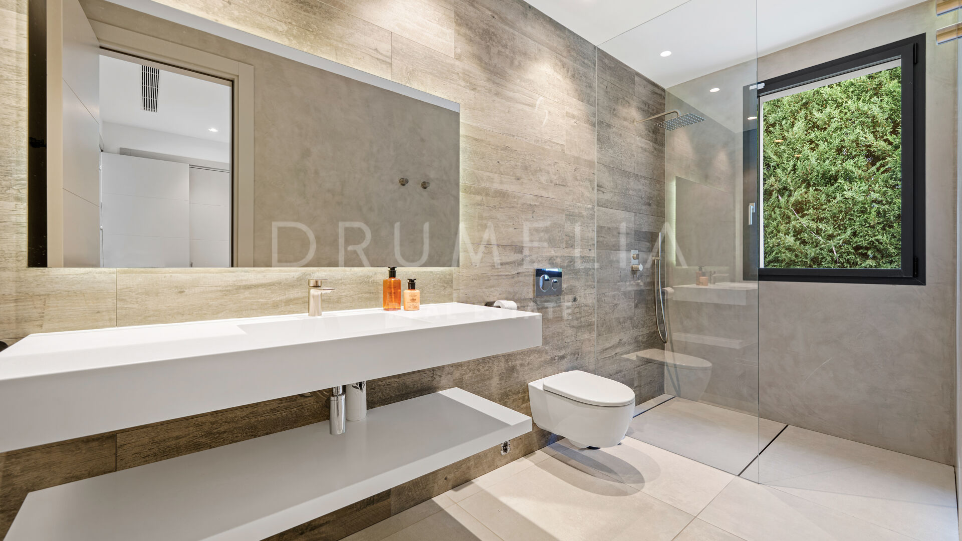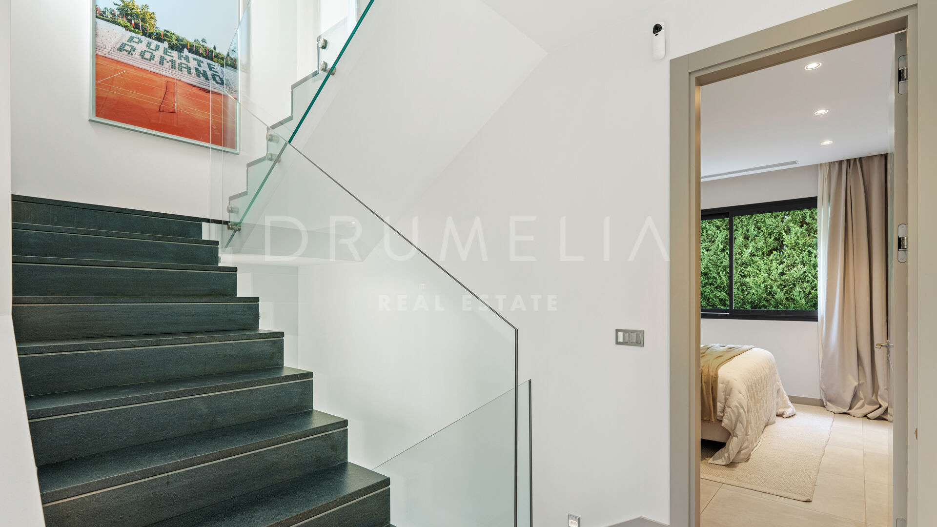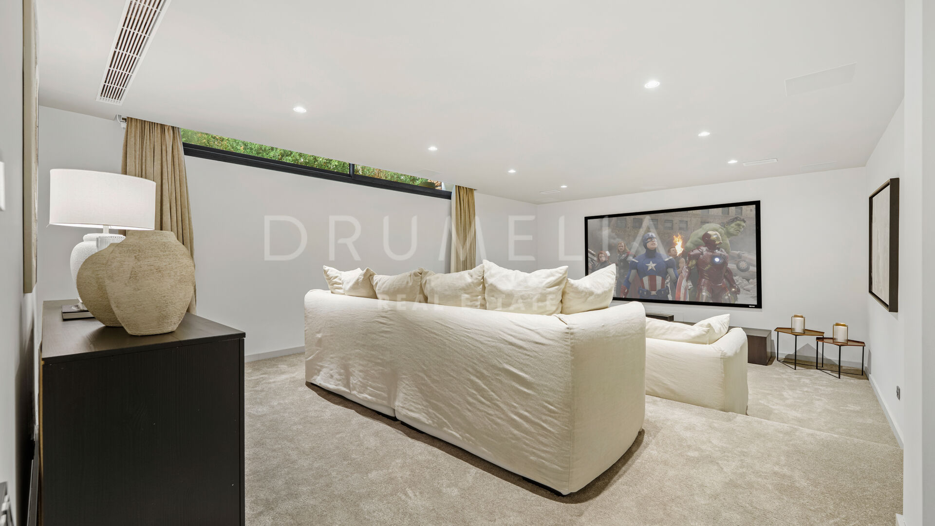 Inside, each bedroom has been designed with refined and welcoming aesthetics, incorporating fitted wardrobes and elegant ensuite bathrooms. Additional features include a cinema and entertainment room, a fully equipped gym, and a private garage. This home represents the ideal balance between modern luxury and comfort, just minutes from Puerto Banús, beaches, golf courses, and all amenities.