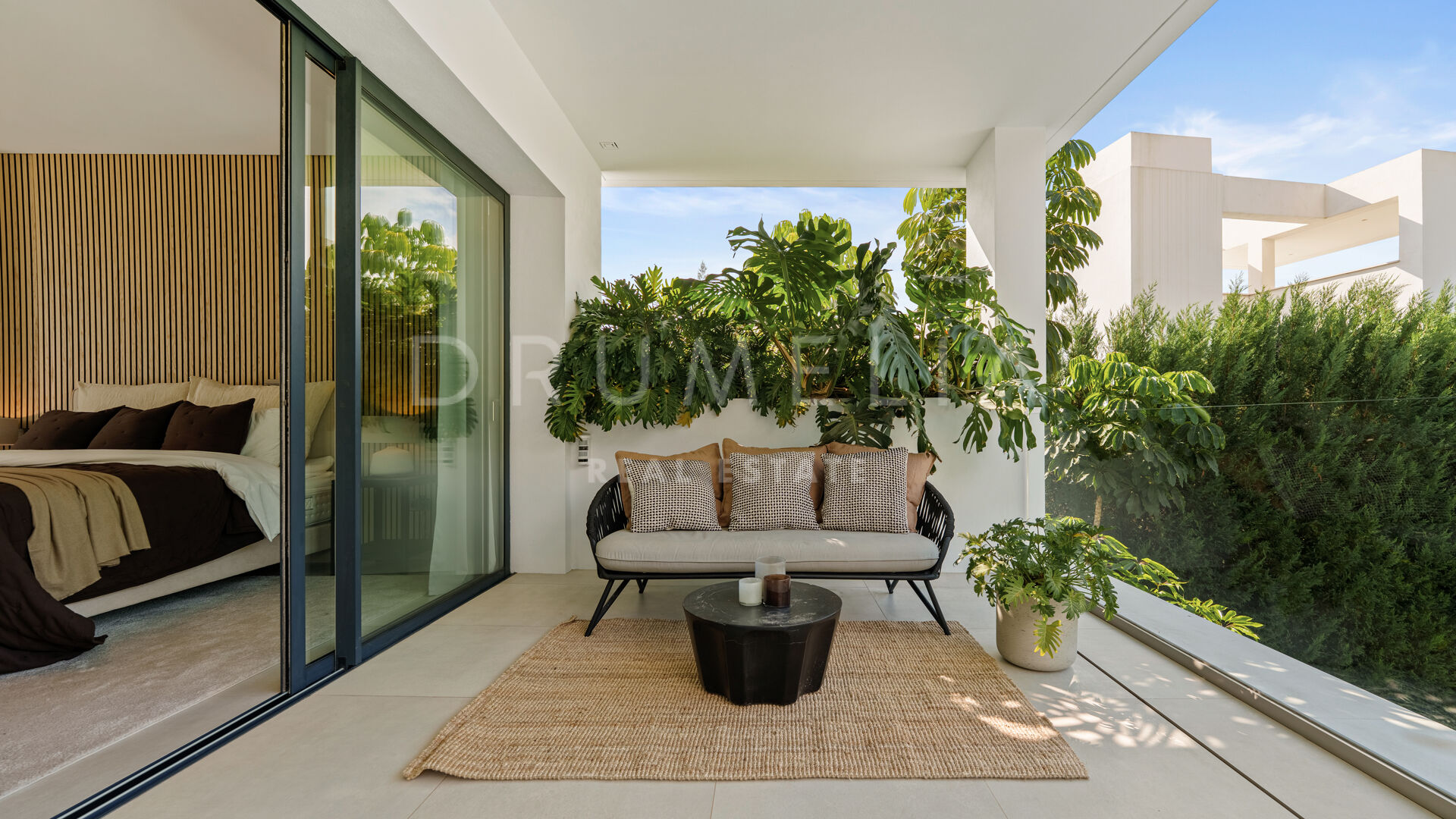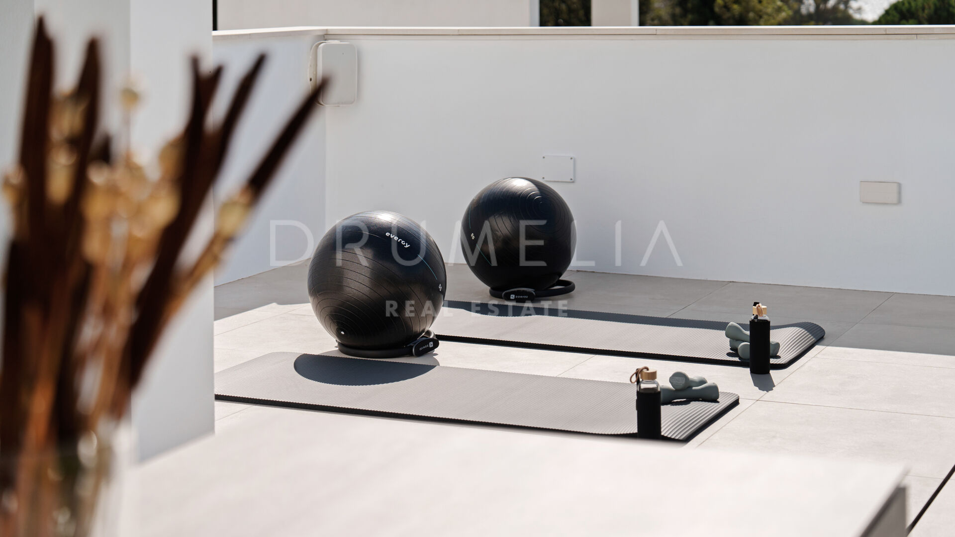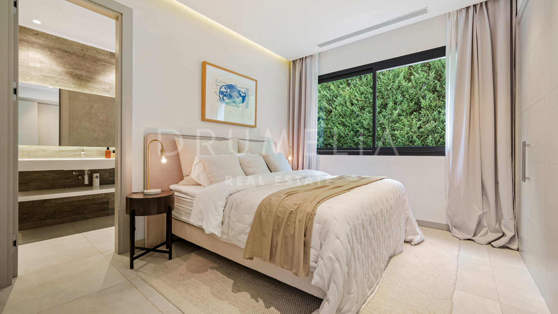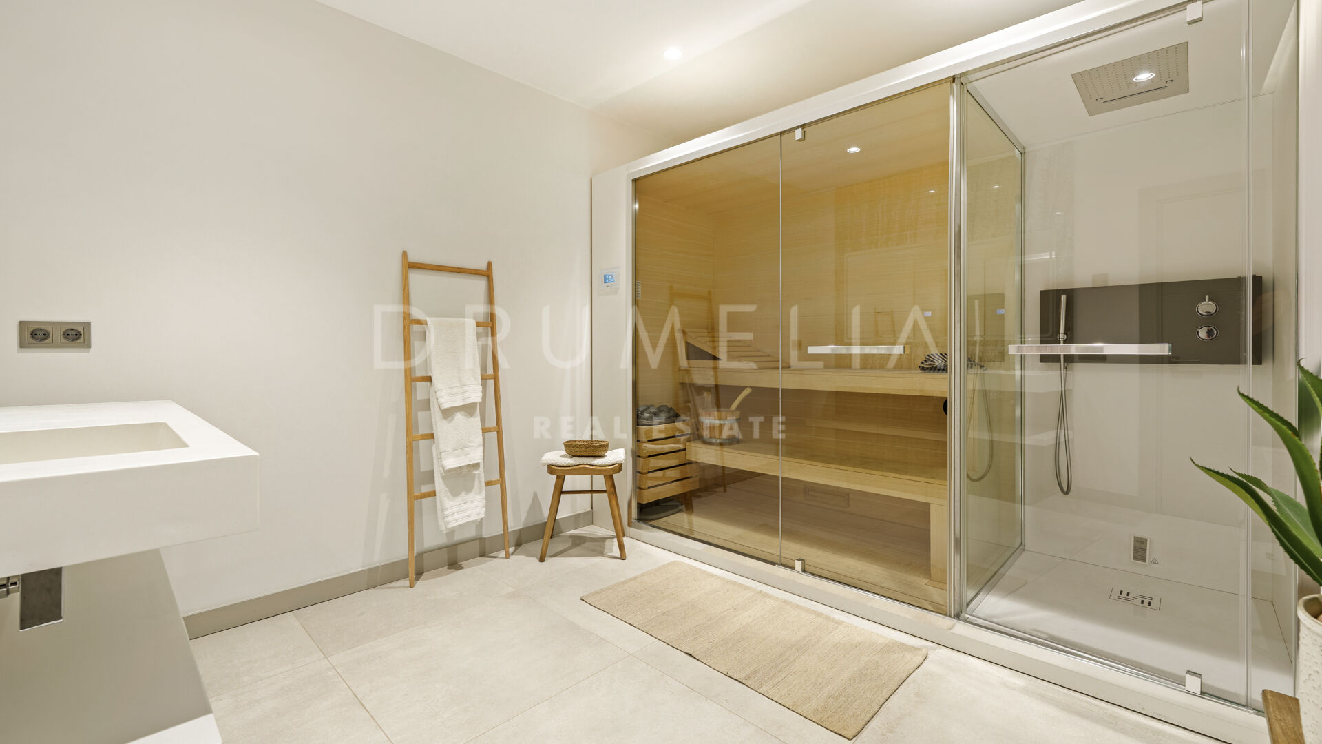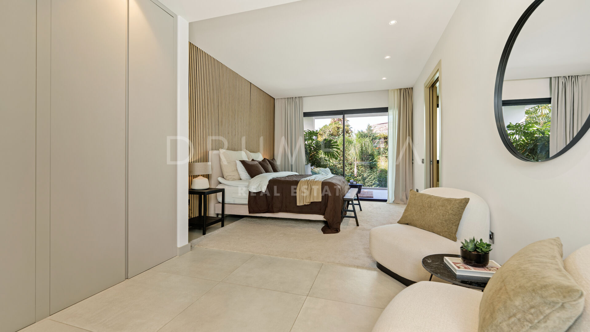 Inside, each bedroom has been designed with refined and welcoming aesthetics, incorporating fitted wardrobes and elegant ensuite bathrooms. Additional features include a cinema and entertainment room, a fully equipped gym, and a private garage. This home represents the ideal balance between modern luxury and comfort, just minutes from Puerto Banús, beaches, golf courses, and all amenities.