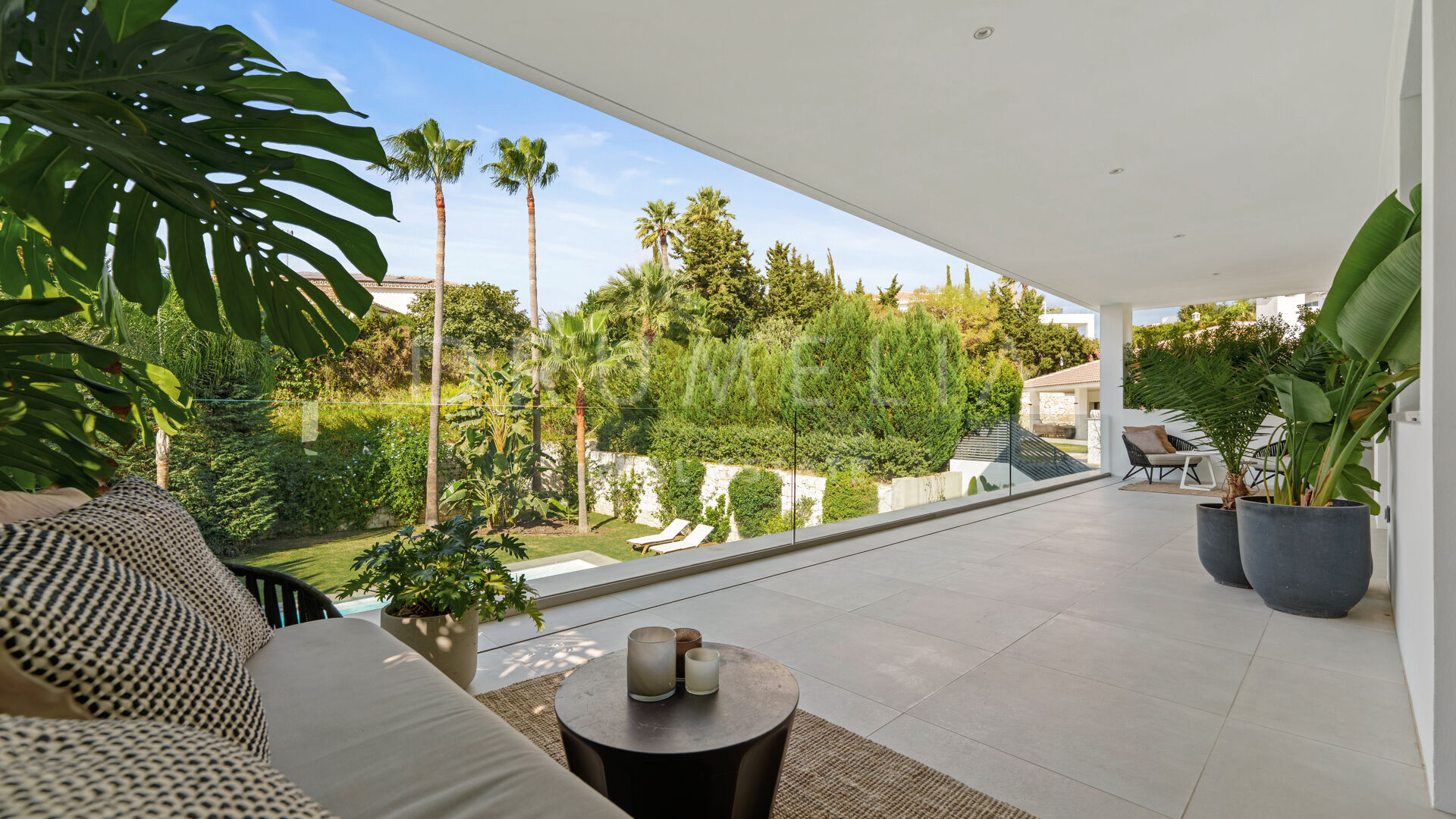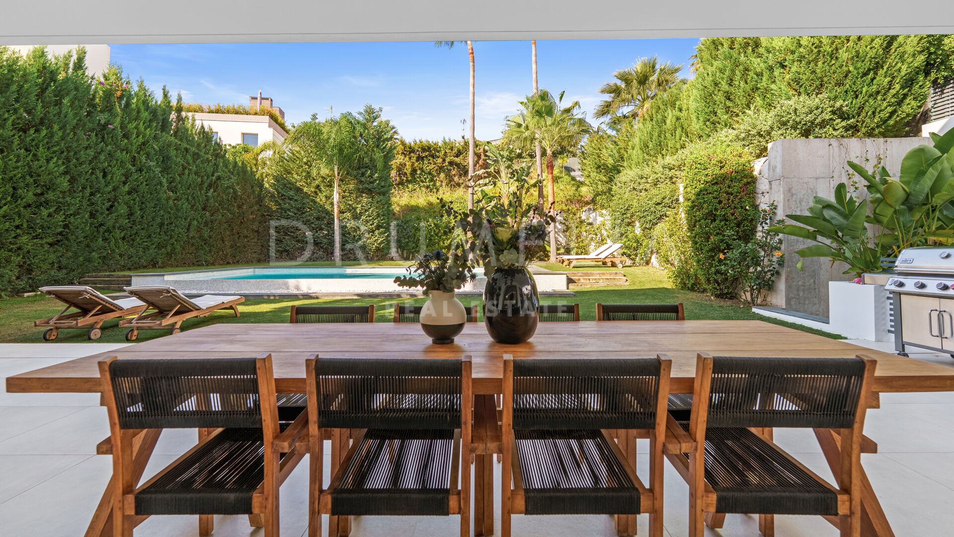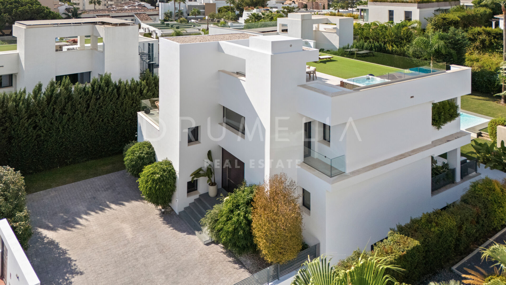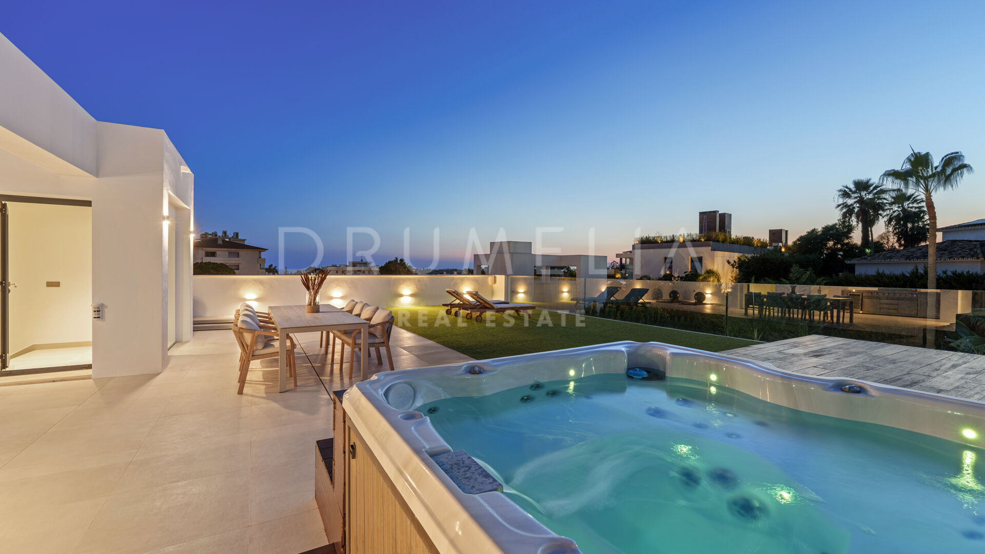 Located in one of Marbella’s most exclusive areas, this modern residence perfectly combines style, comfort, and functionality. The open, bright spaces are connected through large windows that blend the interior with the terraces and the private garden. The spacious and elegant living and dining areas are complemented by a contemporary kitchen, featuring sleek cabinetry and an island ideal for casual dining.
