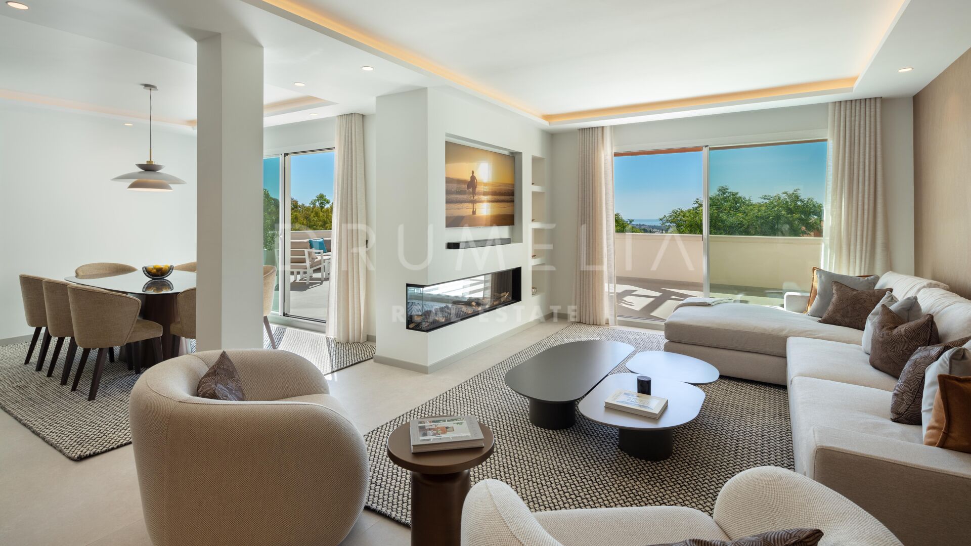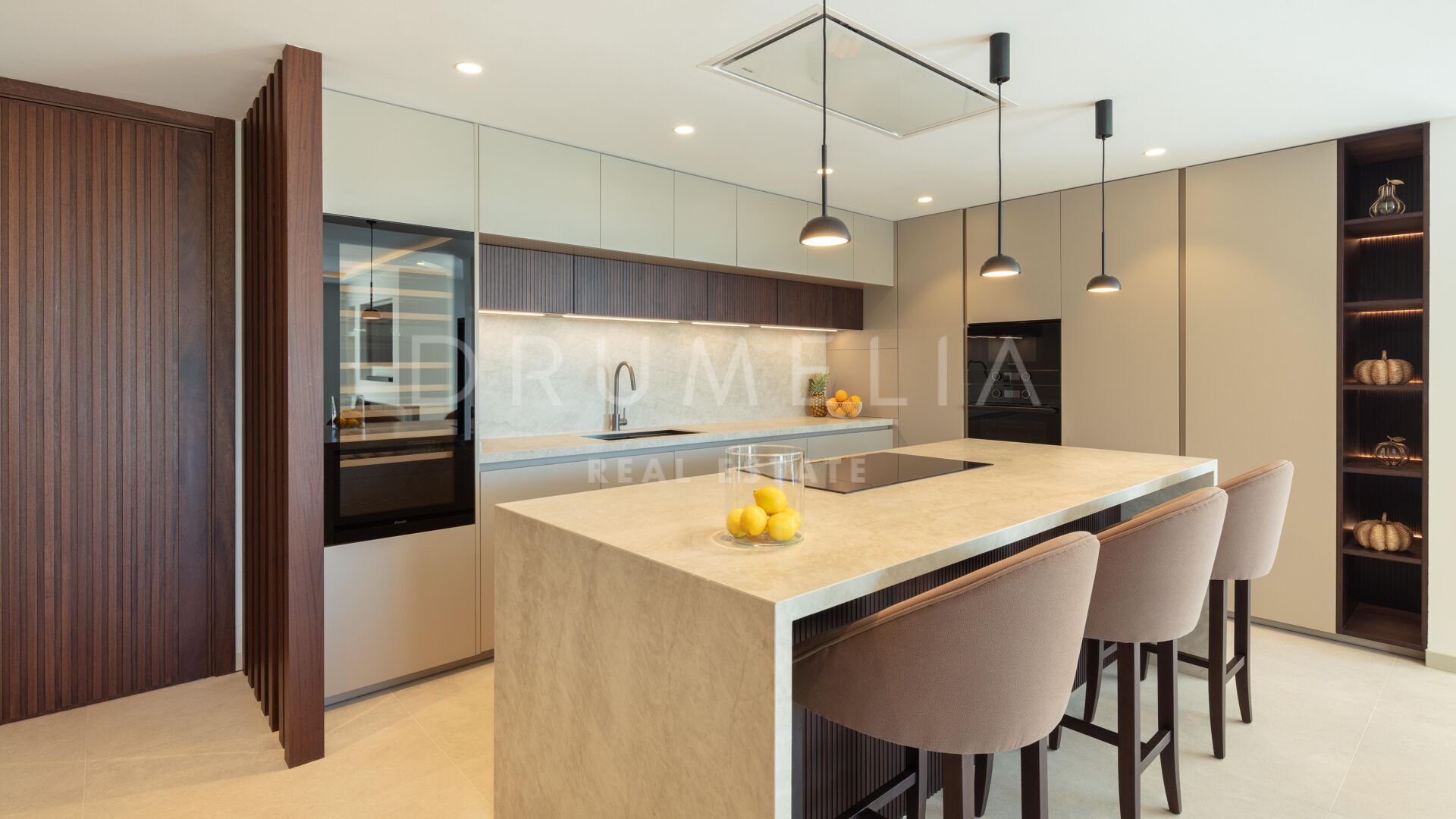 The living and dining room extends effortlessly onto a spacious terrace where you can soak up the sun in Marbella’s glorious climate while enjoying panoramic sea views. An outdoor kitchen and barbecue invite you to dine al fresco and create lasting memories with your loved ones.