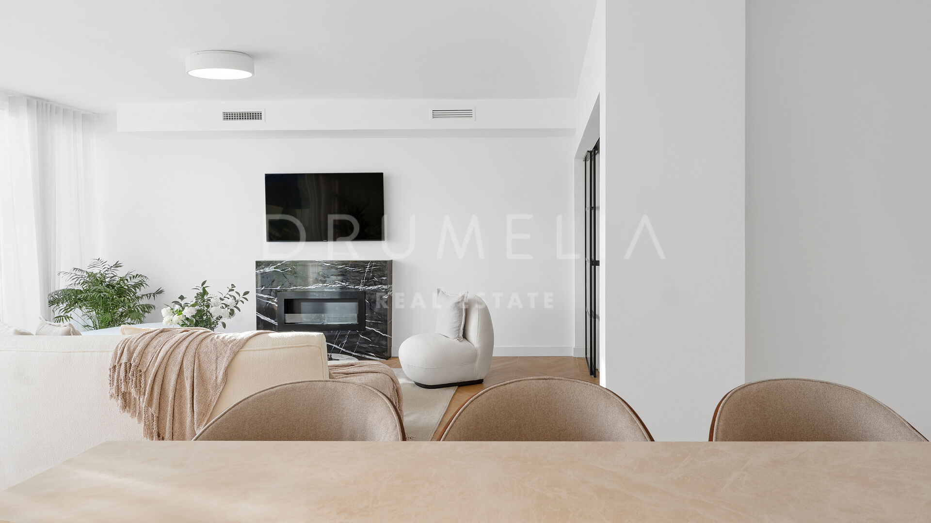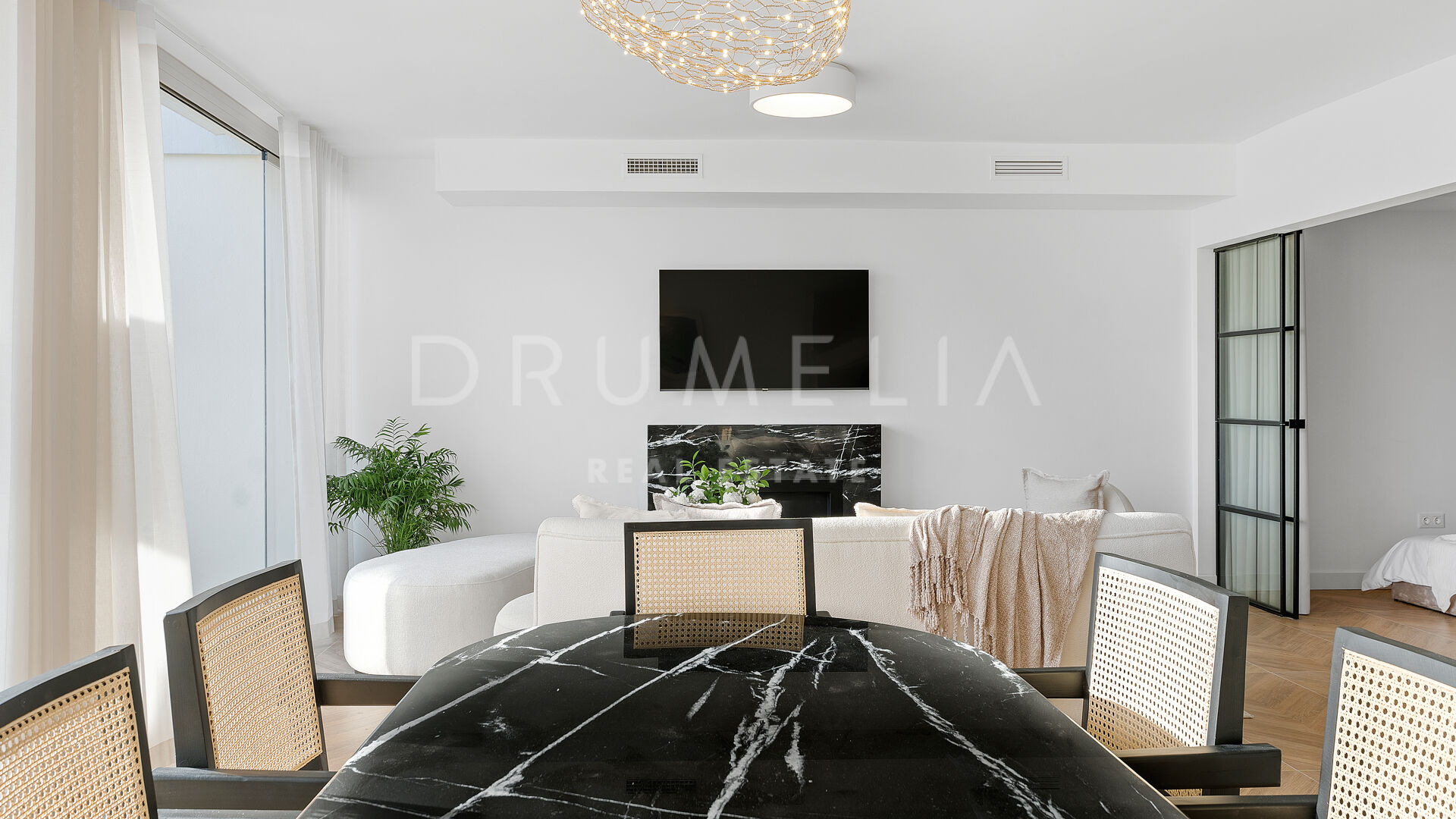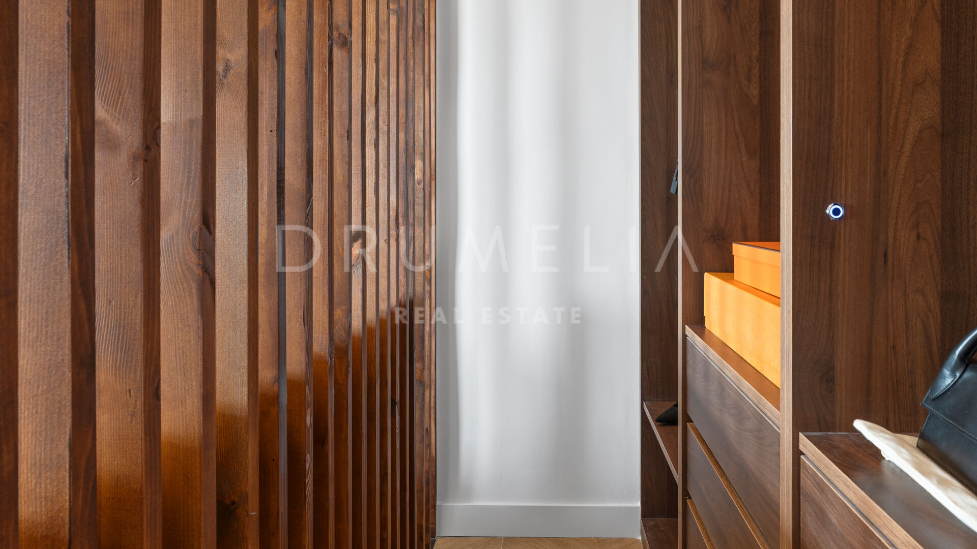 Located within the gated Los Belvederes urbanization, the property is surrounded by prestigious golf courses, including Los Naranjos Golf, Aloha Golf, and Las Brisas Golf. It also includes a private garage, a storage room, and is fully furnished in a bespoke Parisian style, reflecting a refined and distinctive aesthetic.