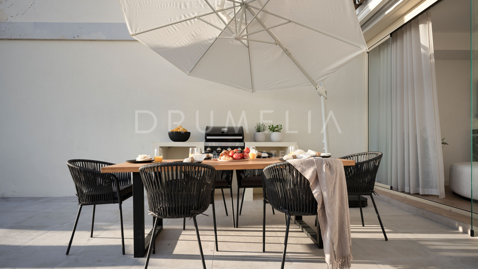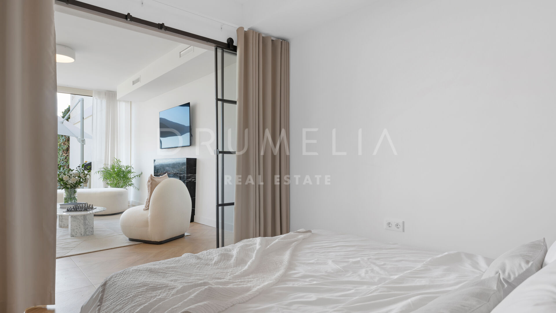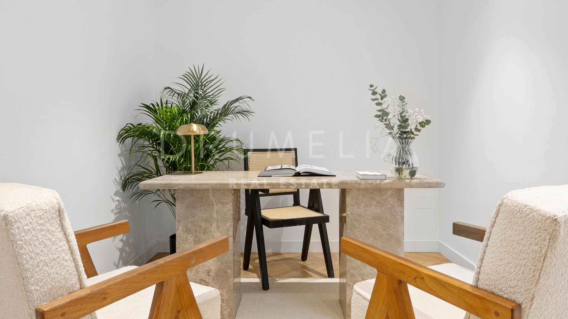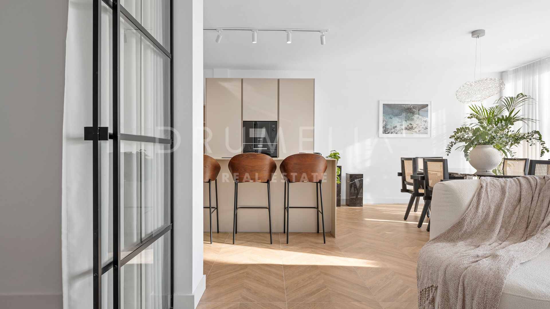 Located within the gated Los Belvederes urbanization, the property is surrounded by prestigious golf courses, including Los Naranjos Golf, Aloha Golf, and Las Brisas Golf. It also includes a private garage, a storage room, and is fully furnished in a bespoke Parisian style, reflecting a refined and distinctive aesthetic.