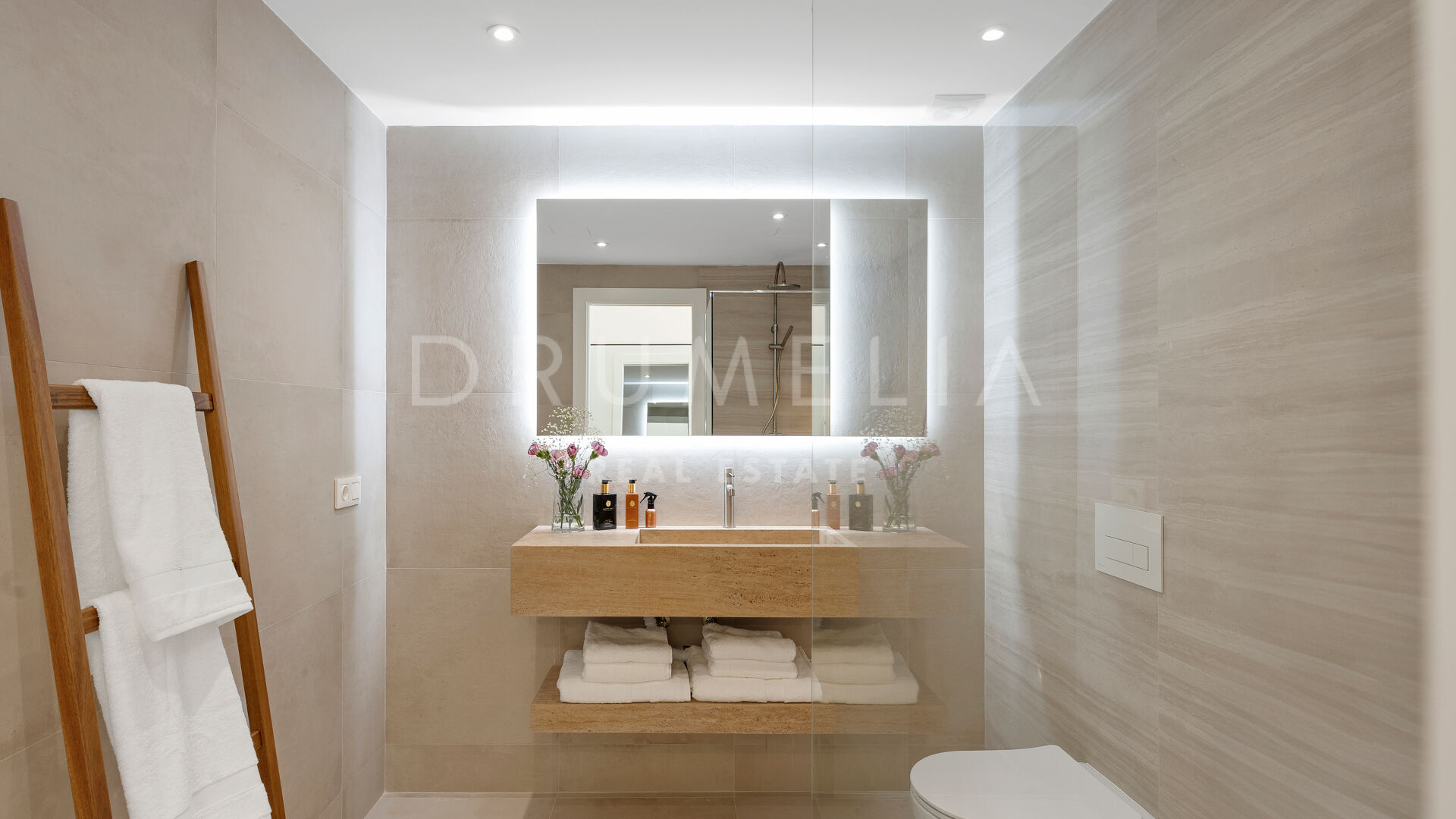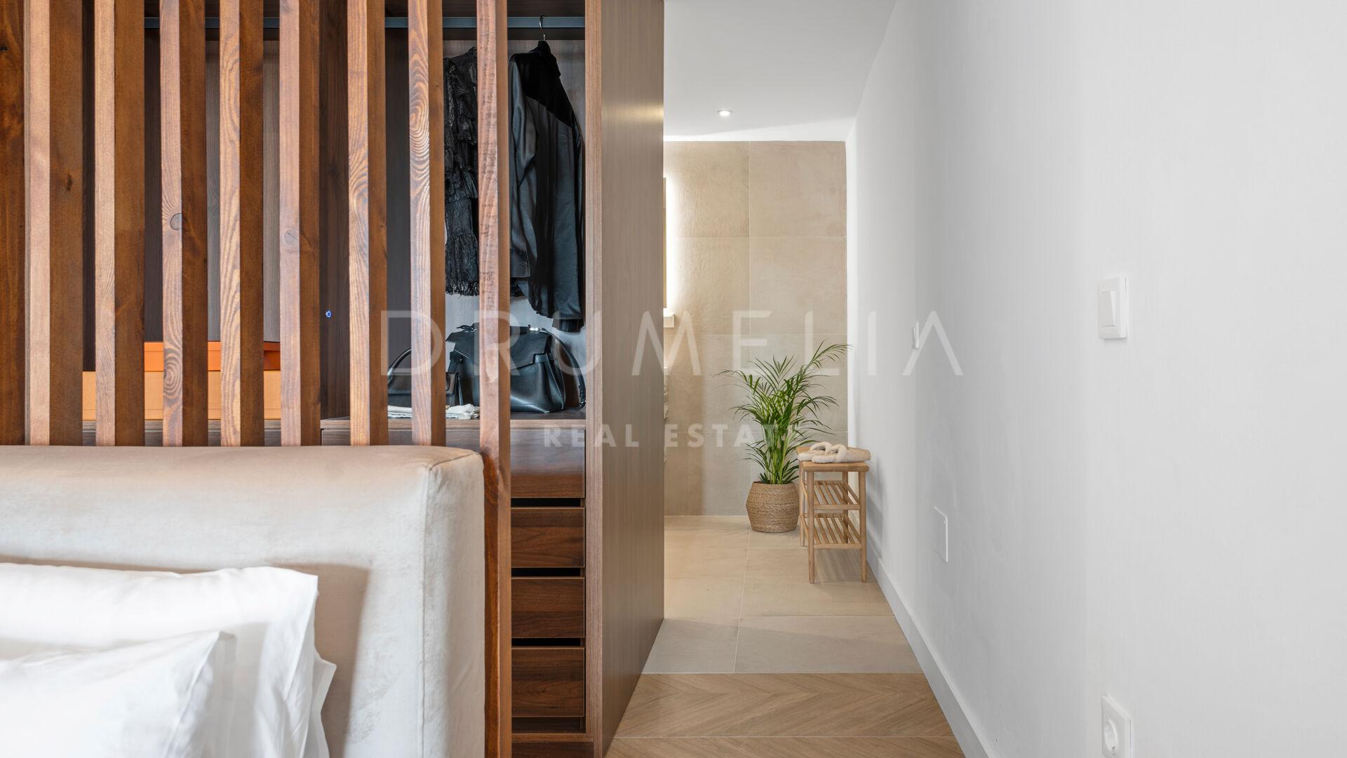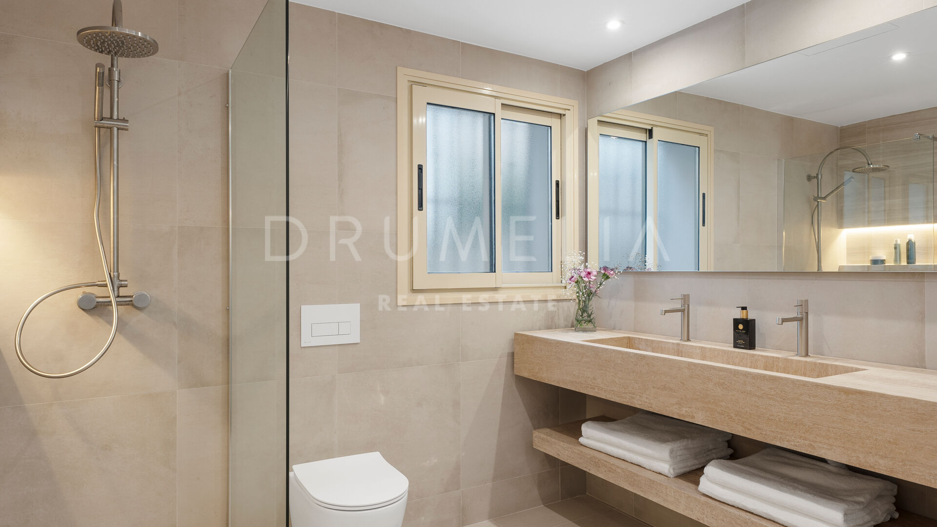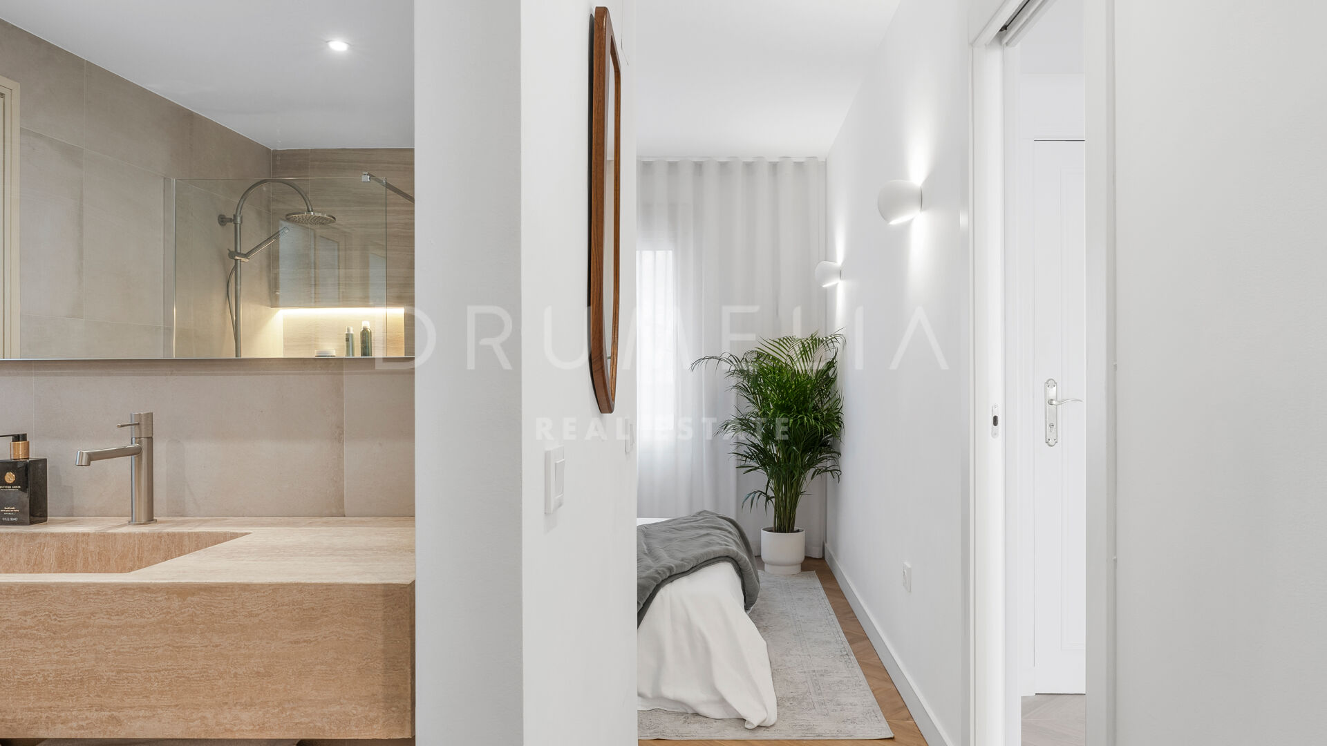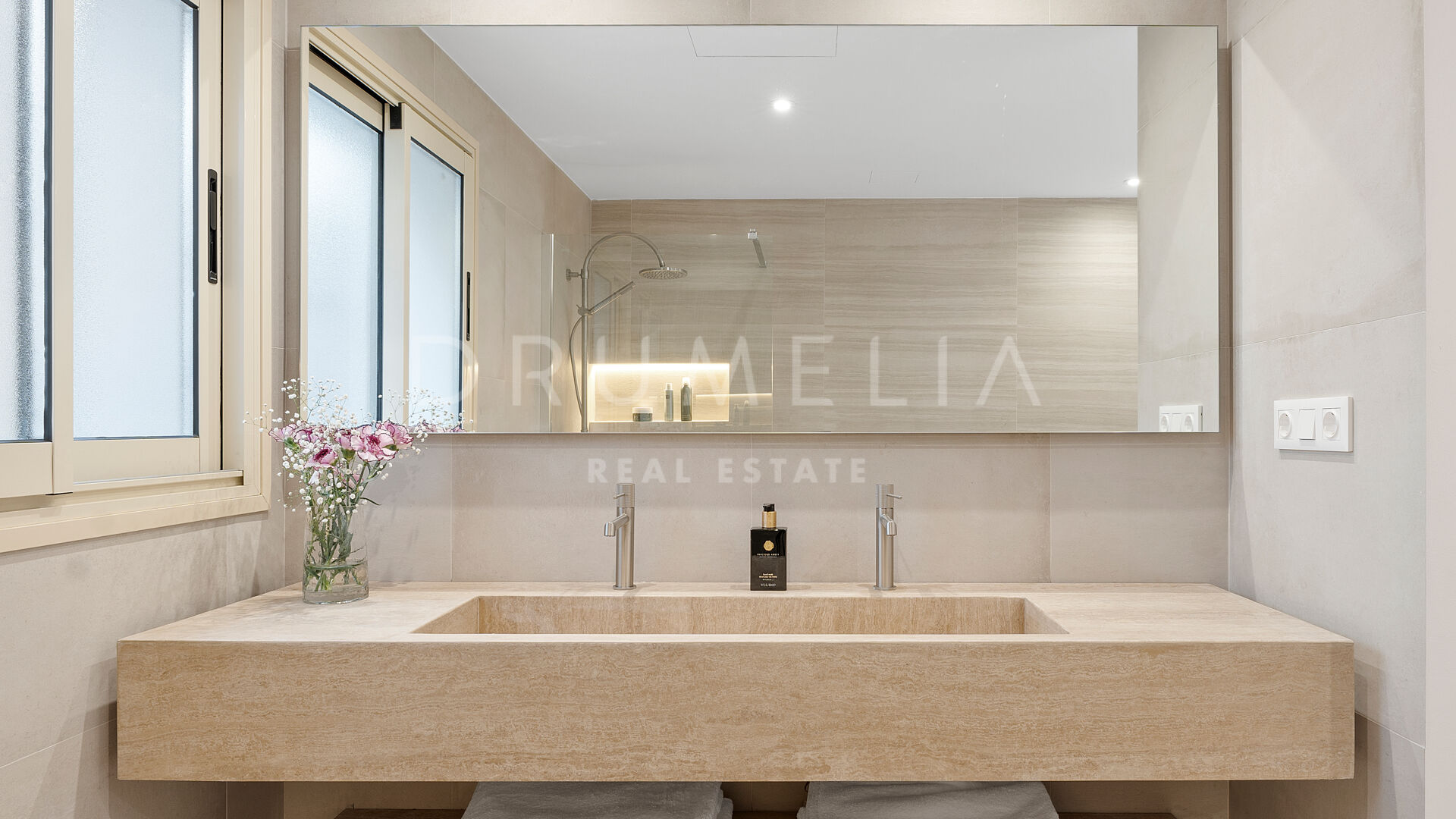 Welcome to this exquisite four-bedroom residence featuring a private pool and garden, with breathtaking views of both the sea and mountains. This newly renovated, ground-floor apartment is a perfect blend of Parisian elegance and contemporary design, nestled in the heart of La Cerquilla, Nueva Andalucía.