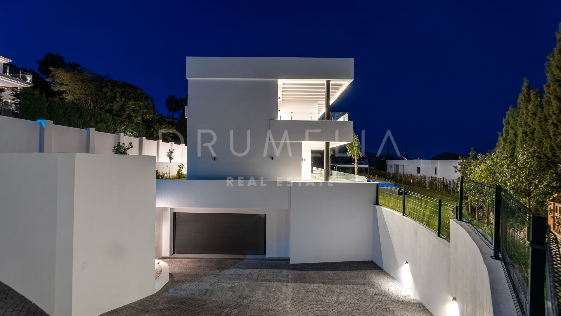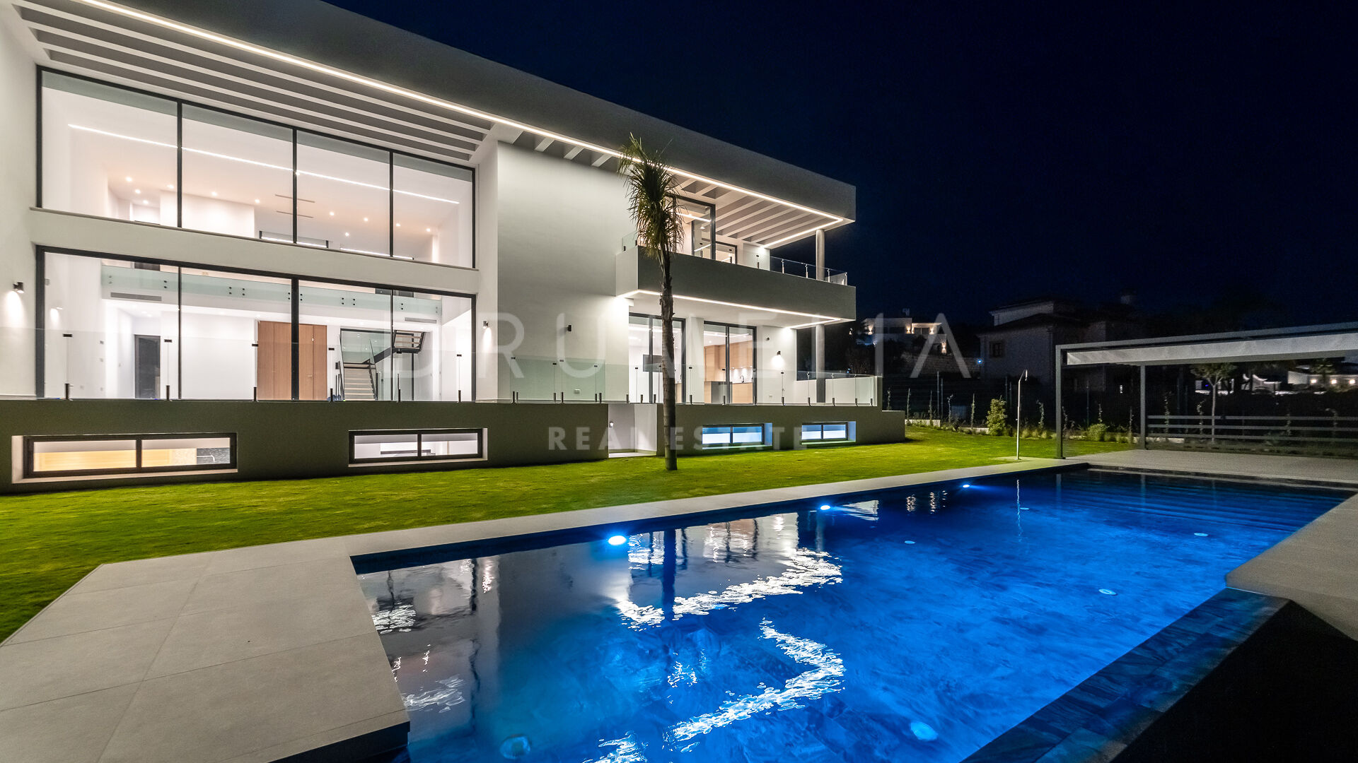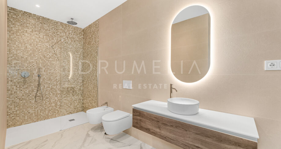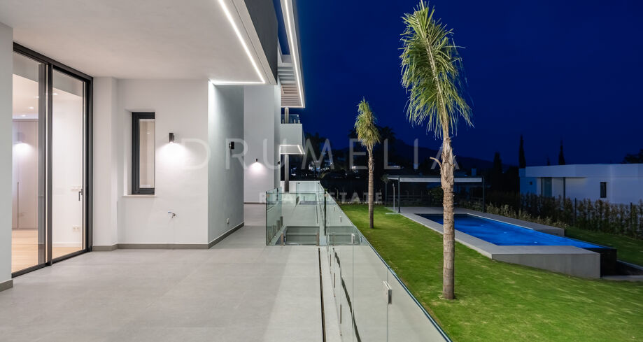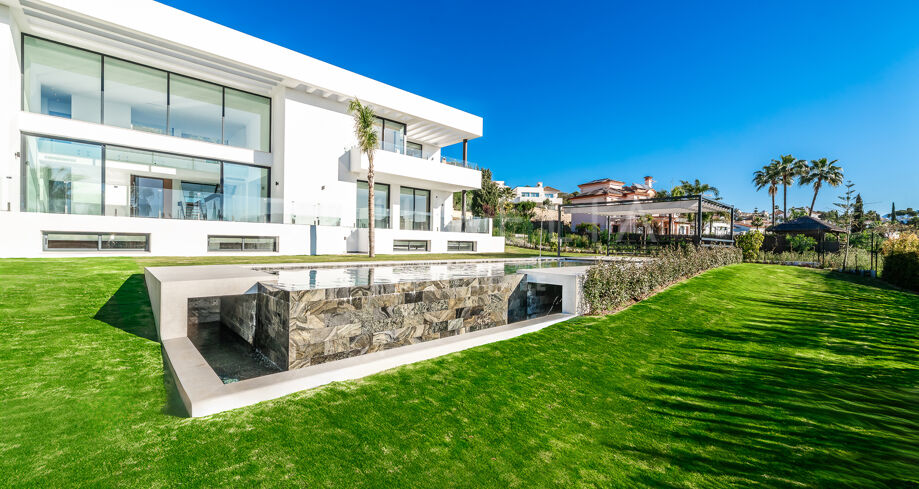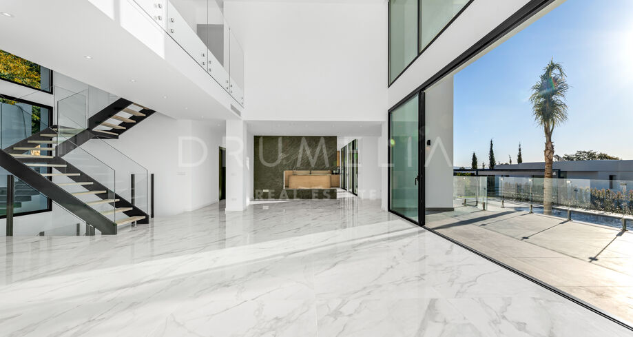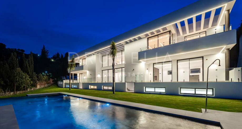 Outdoor areas include an infinity pool with waterfall, generous covered and open terraces, and dedicated spaces for relaxation and outdoor dining, all surrounded by landscaped gardens that provide privacy. Equipped with advanced technology and high-quality materials, the property is prepared to incorporate additional areas such as a spa, gym, or leisure zone, making it an elegant and functional residence in one of Benahavís’ most desirable locations.
