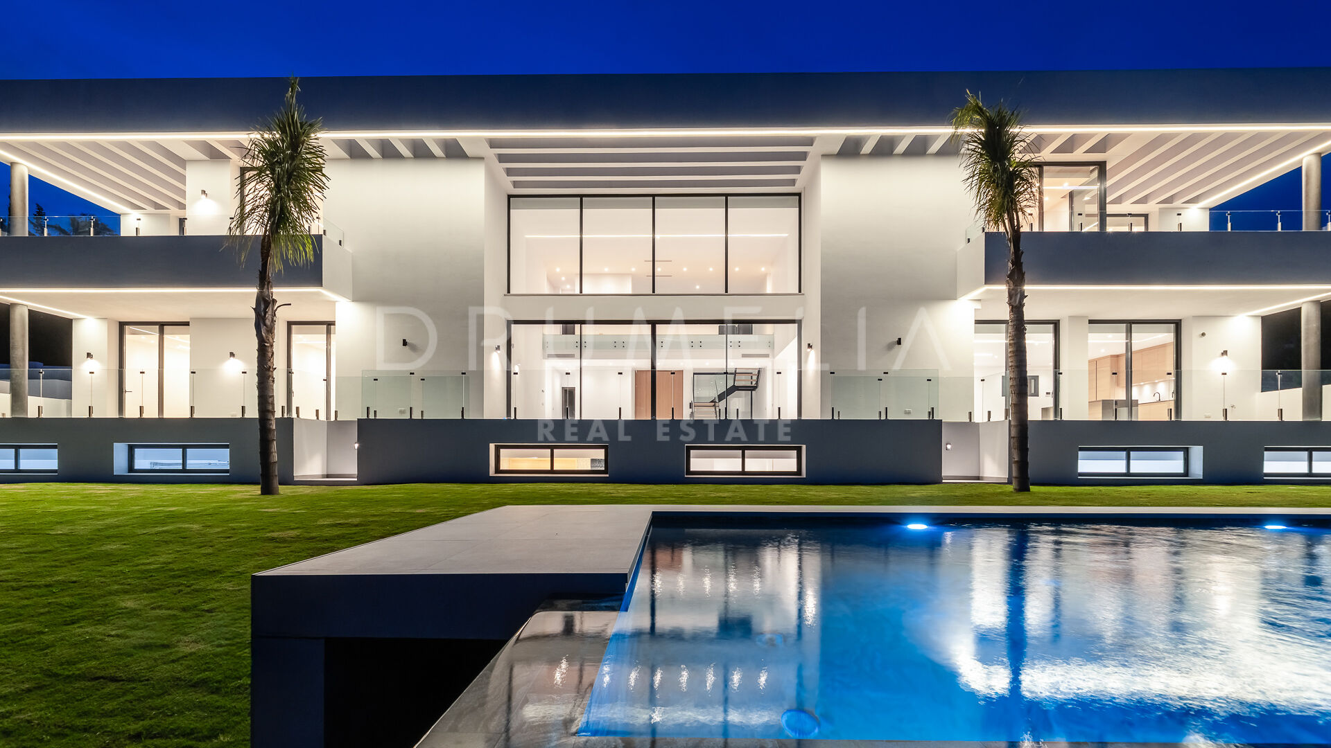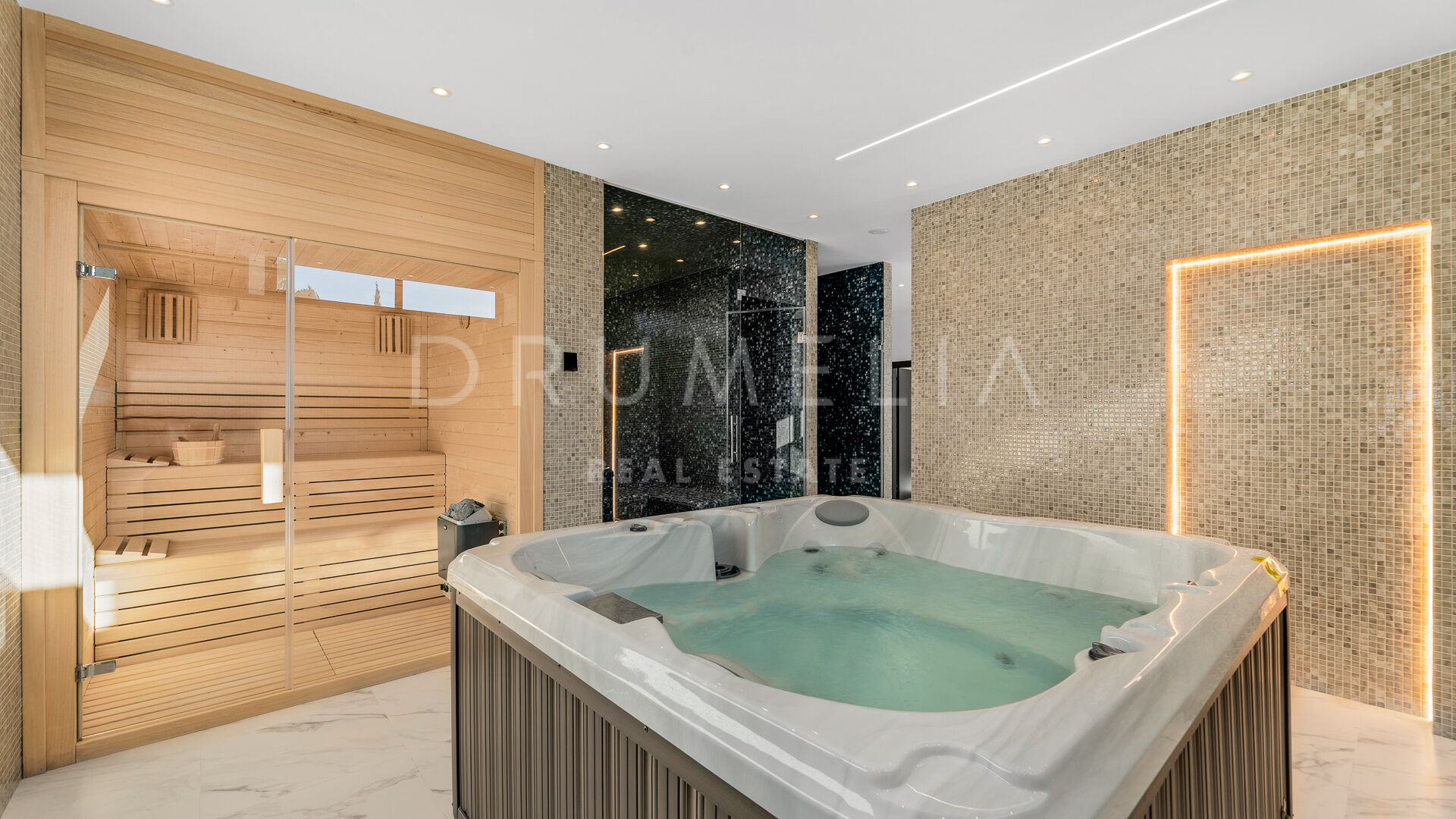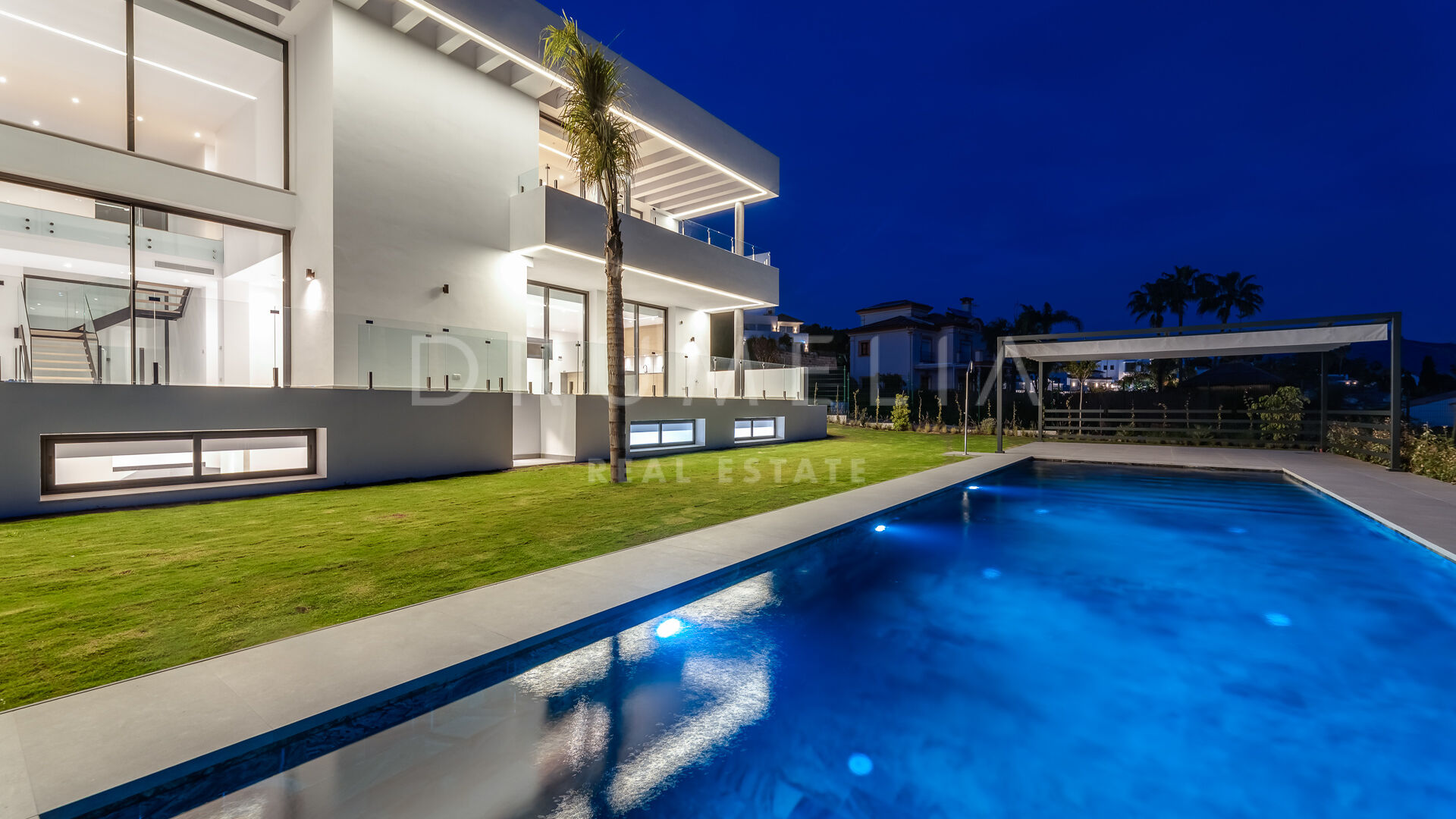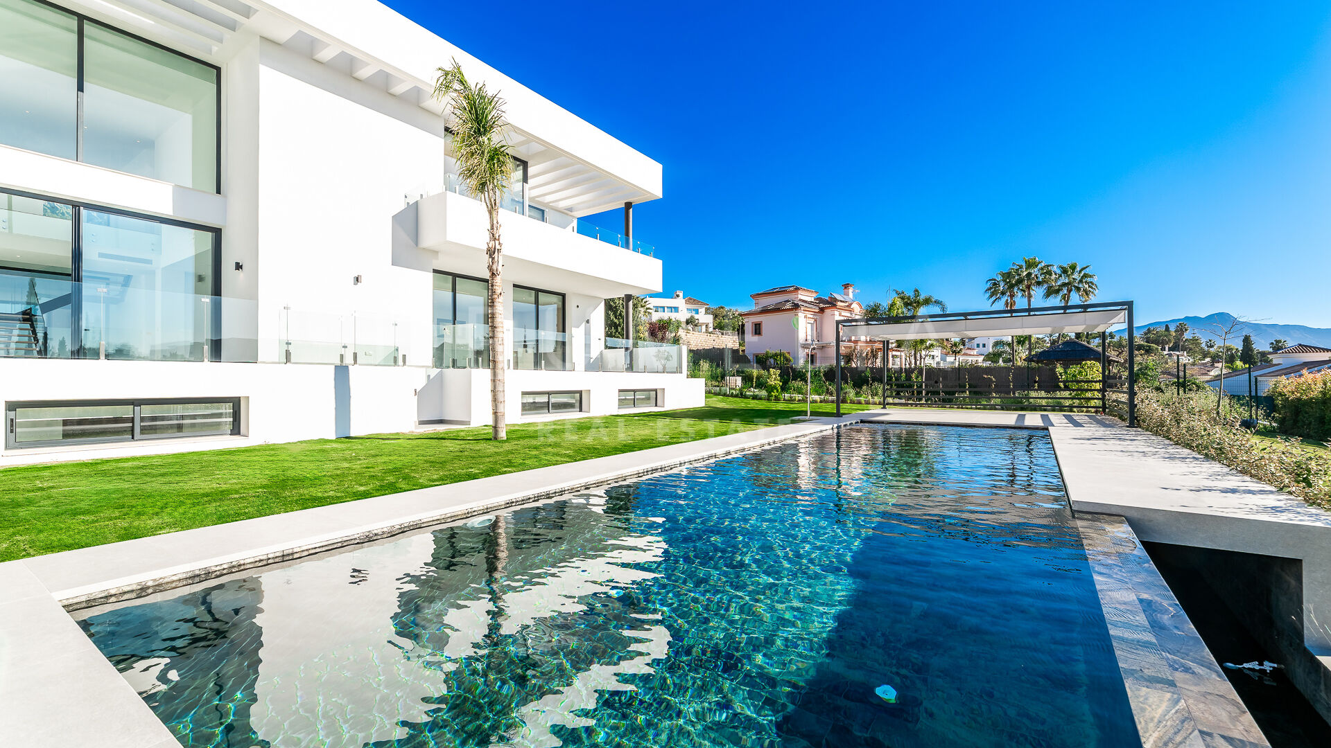 Outdoor areas include an infinity pool with waterfall, generous covered and open terraces, and dedicated spaces for relaxation and outdoor dining, all surrounded by landscaped gardens that provide privacy. Equipped with advanced technology and high-quality materials, the property is prepared to incorporate additional areas such as a spa, gym, or leisure zone, making it an elegant and functional residence in one of Benahavís’ most desirable locations.