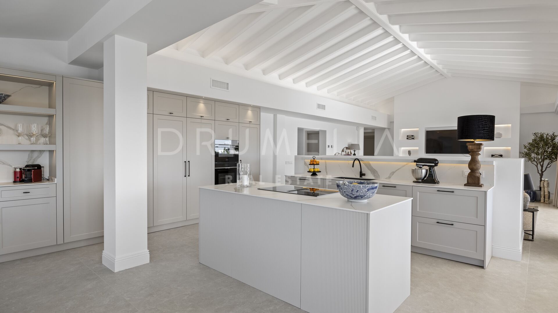 Open views extend across the golf course towards the Mediterranean Sea, Gibraltar, and the African coastline. These vistas are enjoyed from a spacious covered terrace that links the interior with the outdoor areas, supporting a fluid indoor-outdoor lifestyle.