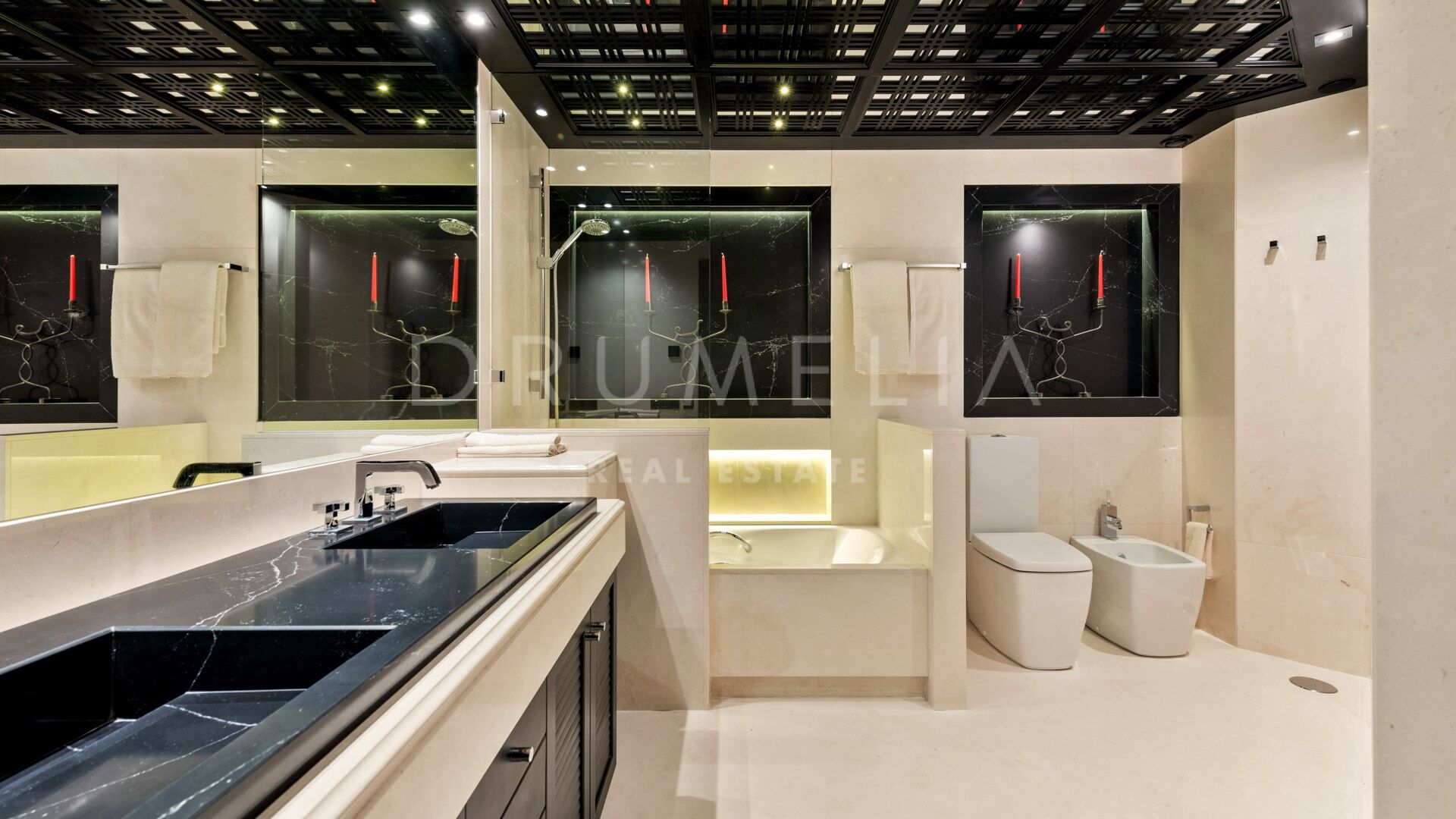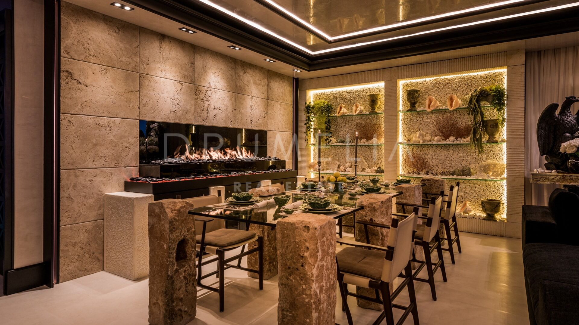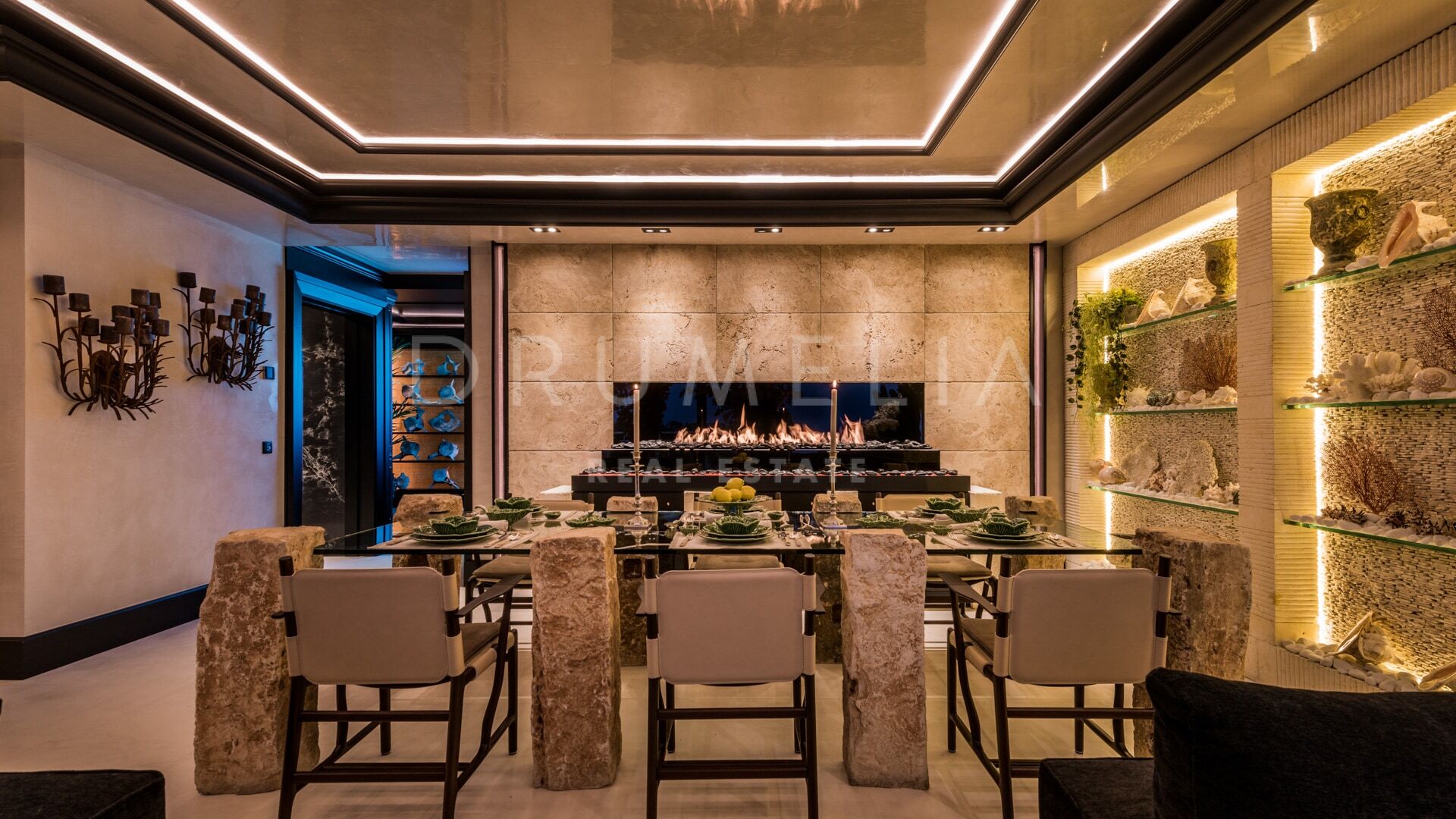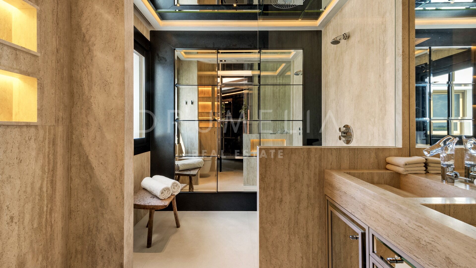 Meticulous attention to detail is evident throughout: custom carpentry, natural stone surfaces, hand-applied stucco walls, tailored lighting schemes, and advanced home automation all contribute to the home’s exceptional quality. The entire décor has been curated to reflect refined taste and timeless elegance.