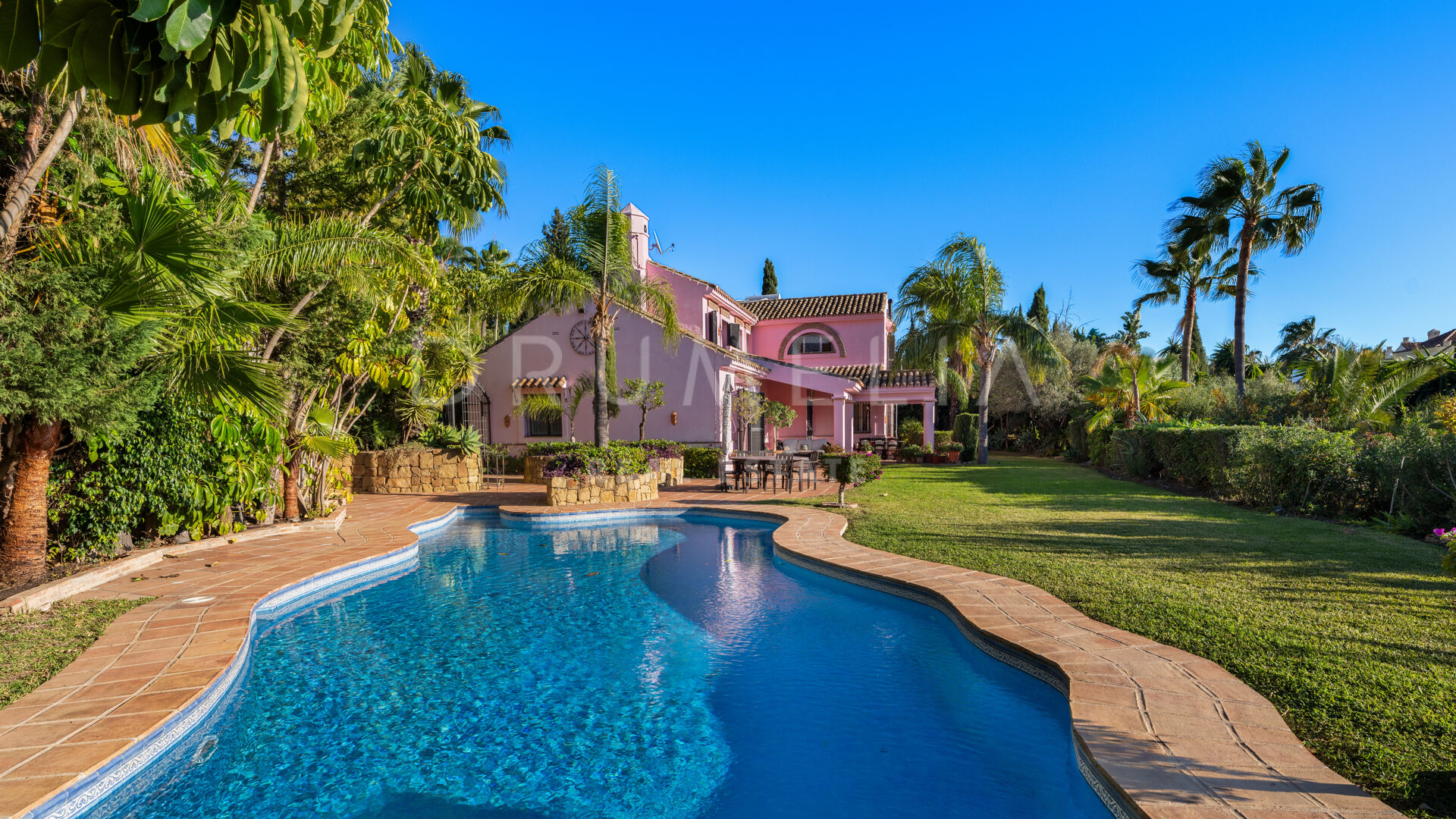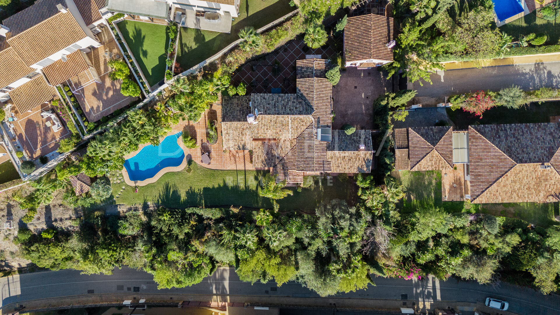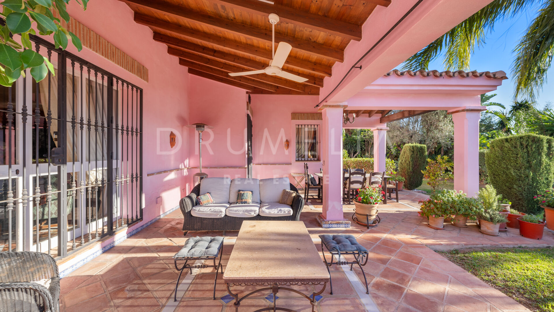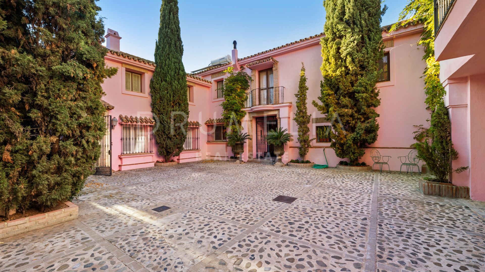 This high-end Andalusian villa is the epitome of luxury living, and can be your full-time residence or a holiday retreat. It is equipped with air-conditioning, gas central heating, security window bars, fitted wardrobes, etc. Hot water is provided by solar panels to ensure comfort throughout the year. The fabulous property comes for sale unfurnished and needs some renovation to become your Dream Home with a layout and style that cater for your needs and wishes. It is possible to extend this stunning house by a further 799 m² creating an even more magnificent living space. Another option is to purchase a plot of 513 m² adjoining the garden. There is already a project to build a villa, which could easily be adapted to be a second guest apartment or a large fitness and SPA area, whatever would suit you. The sky is the limit!
