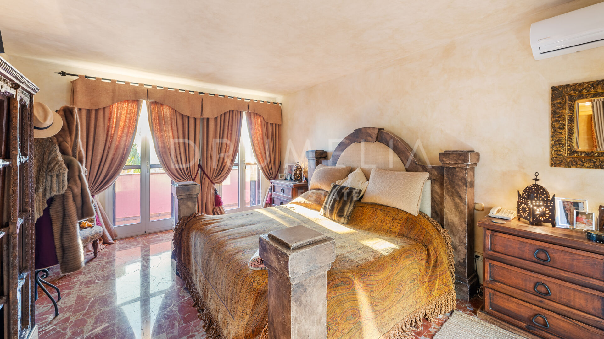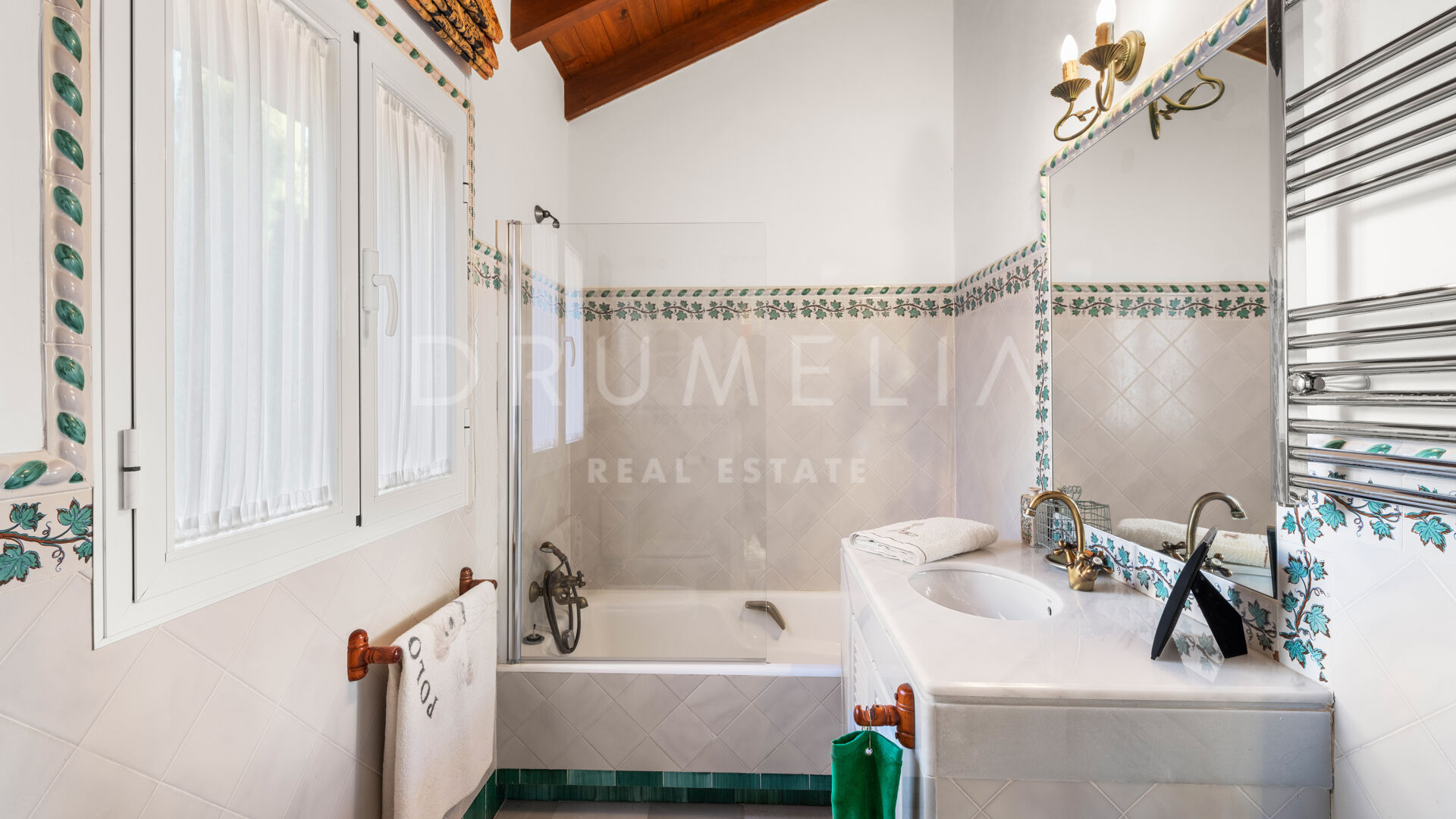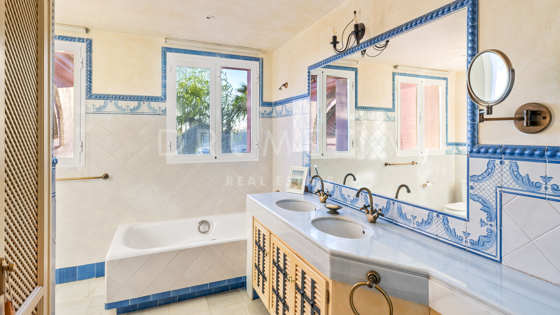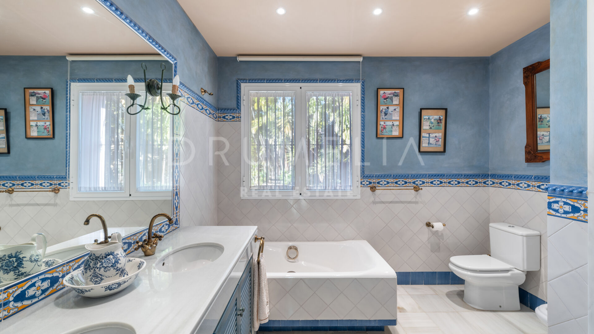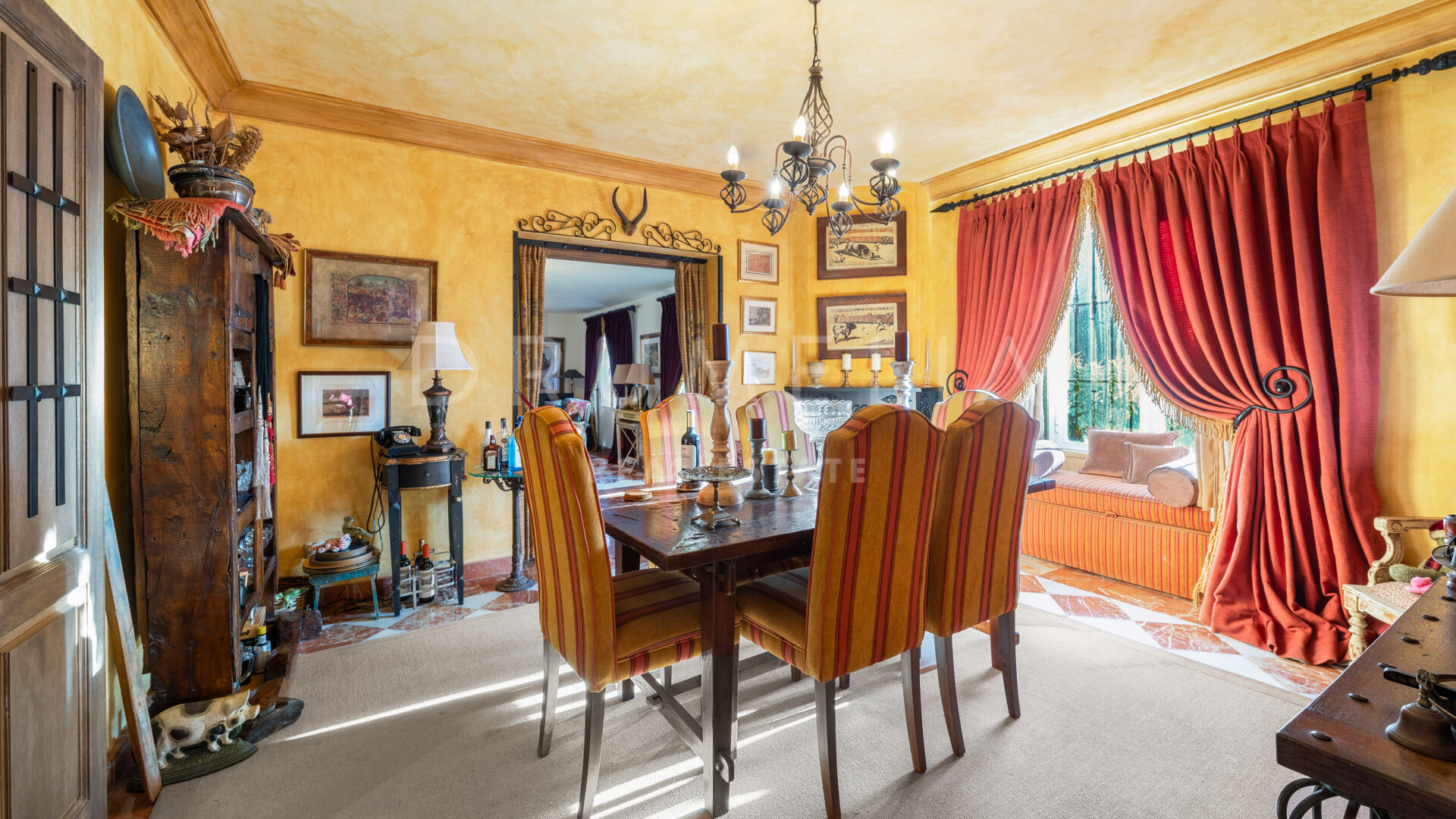 A charming, Andalusian-style 5-bedroom house is offered for sale in a well-established and much sought-after gated community situated in the heart of the municipal area Benahavís. It is located in a cul-de-sac within the Puerto del Almendro, a very private but also central Benahavis urbanisation made up of both apartments and villas. This is a truly enviable location for living, close to the coast but in the heart of the countryside, surrounded by wonderful nature and overlooking beautiful scenery and the sea. The lack of passing traffic ensures peace and tranquillity. Bordered by Los Arqueros Golf and Country Club, the development lies east of the picturesque Ronda road that has inspired poets and artists. 70% of the municipality has been declared ‘Environmentally Significant’. Another advantage of the area is its microclimate provided by the Serrania de Ronda and Sierra de las Nieves, a UNESCO Biosphere Reserve.