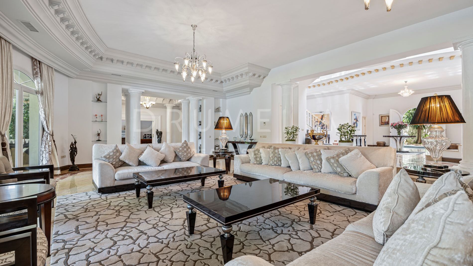 Nestled in one of Marbella’s most prestigious and serene neighborhoods, this remarkable estate blends the grace of European classicism with the tranquility of lush, landscaped gardens. Just minutes from the vibrant heart of Marbella and iconic landmarks such as Puente Romano and Marbella Club, it offers both exclusivity and effortless convenience.