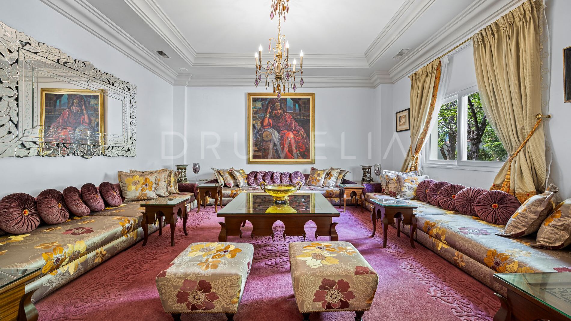 Spread across more than 4,000 m² of enchanting grounds and 1,500 m² of refined interiors, the residence is designed for sophisticated living and grand entertaining. Sunlit salons flow seamlessly to expansive terraces and verdant gardens, creating a natural harmony between indoors and outdoors.