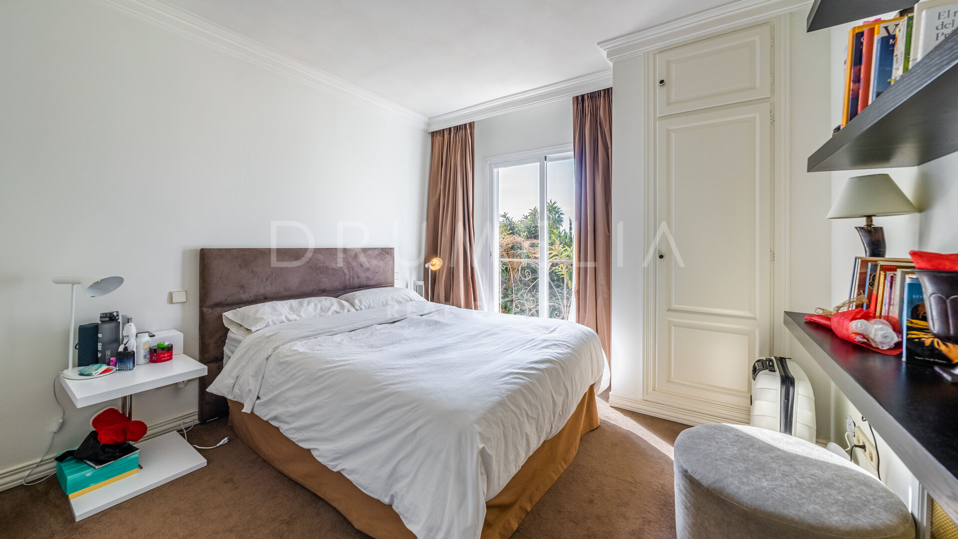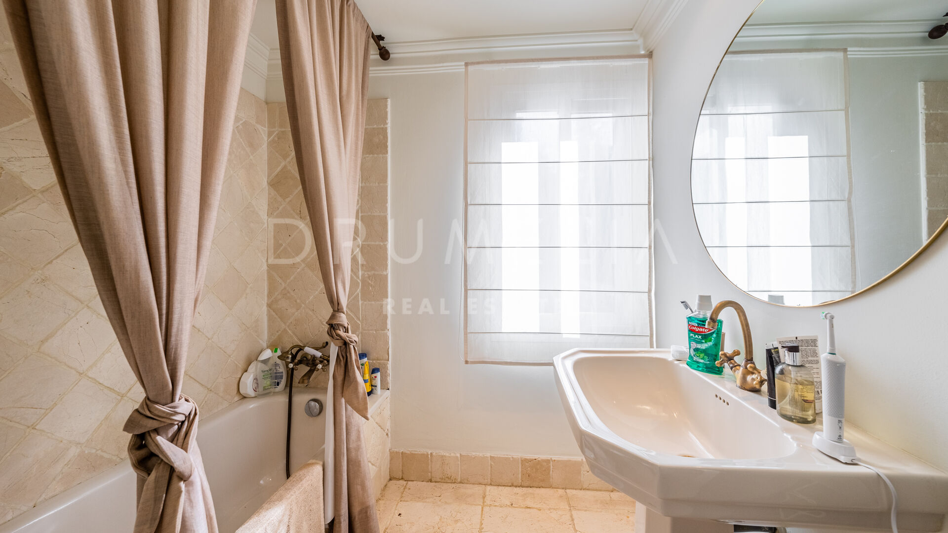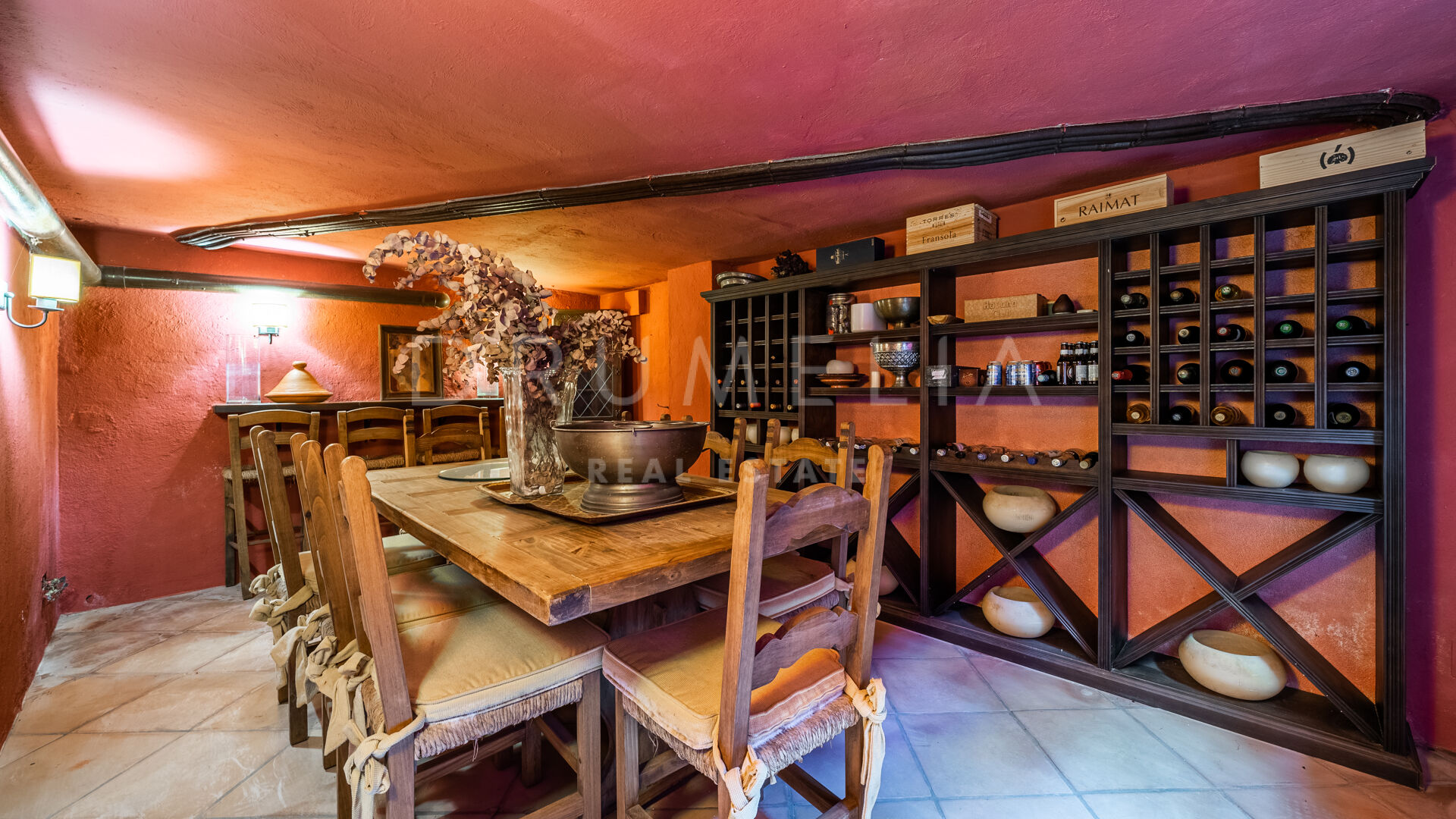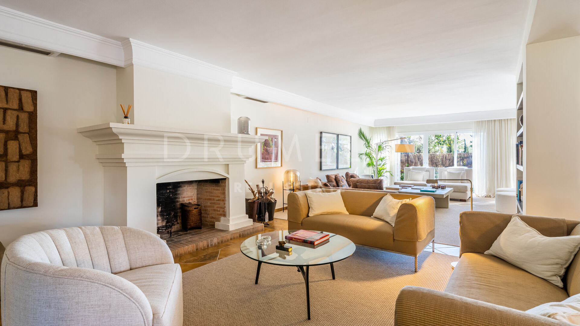 This beautiful and bright Mediterranean villa of 450m2 is set on the picturesque plot of 1900 m2 which is located in Nagüeles, one of the original luxury areas of Marbella, right in between two most prestigious parts of the town – the upper part called Sierra Blanca and the lower part of Golden Mile. Rocio de Nagueles is a very well- established residential area with stunning villas and lush subtropical vegetation. Its name is linked to Marbella’s glamorous past and remains a desirable place to live due to its prime location, the variety of great high- end properties, good infrastructure and proximity to the sea, mountains, world-famous Puerto Banus, all amenities of the 24-carat Golden Mile and the charming Old Center of the town.