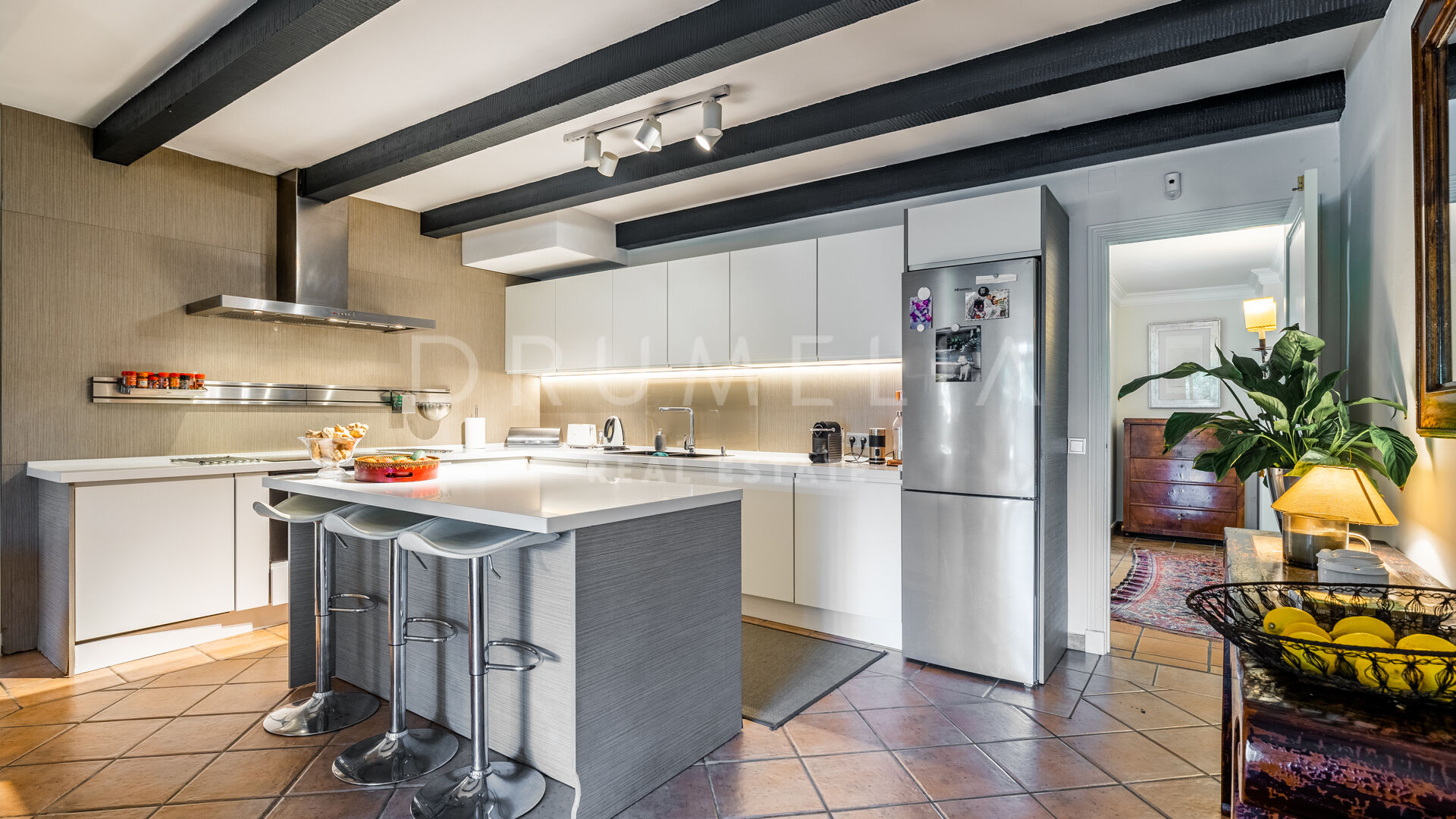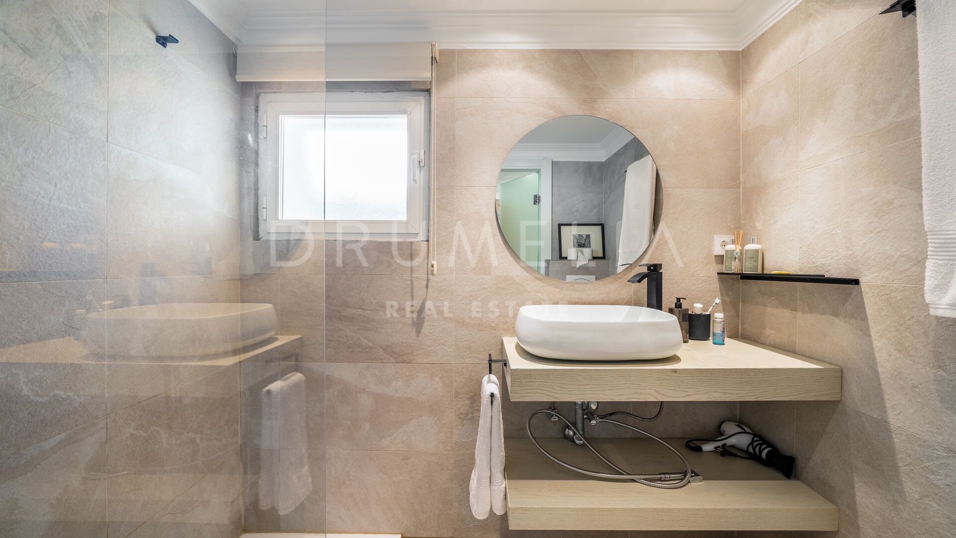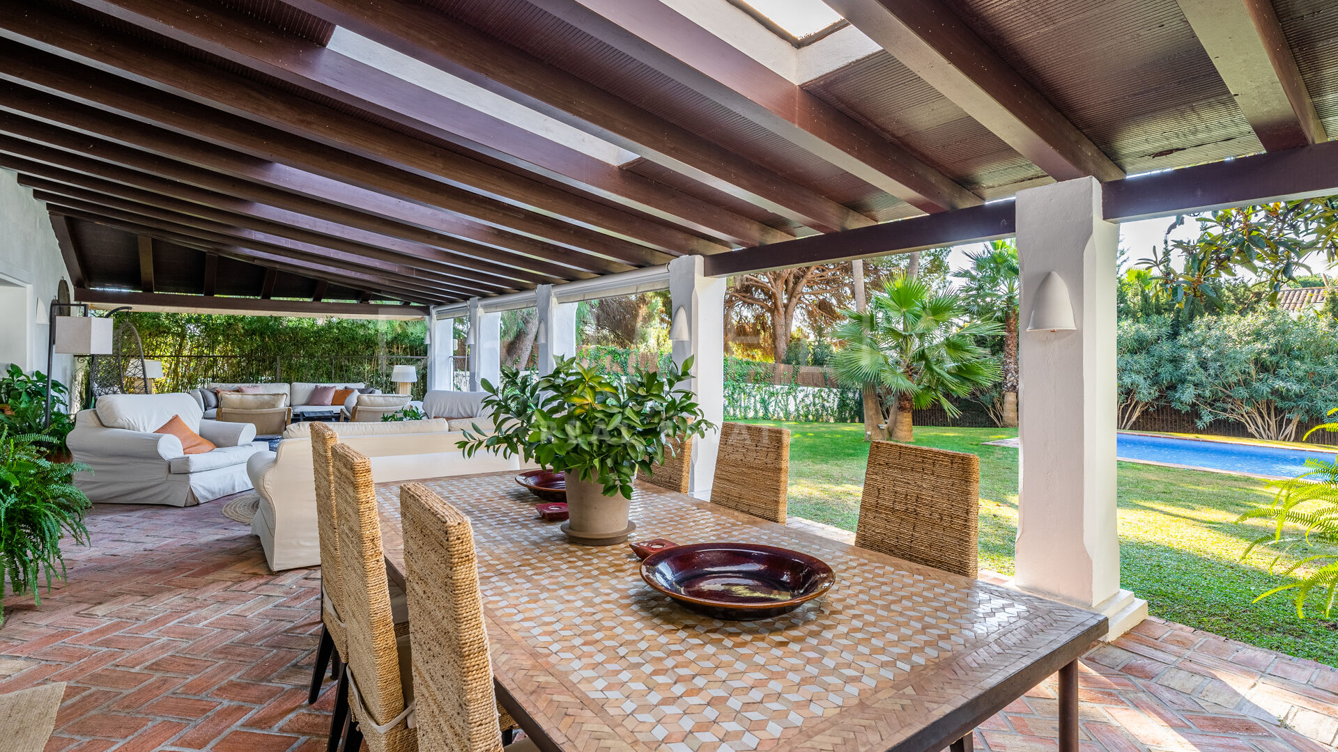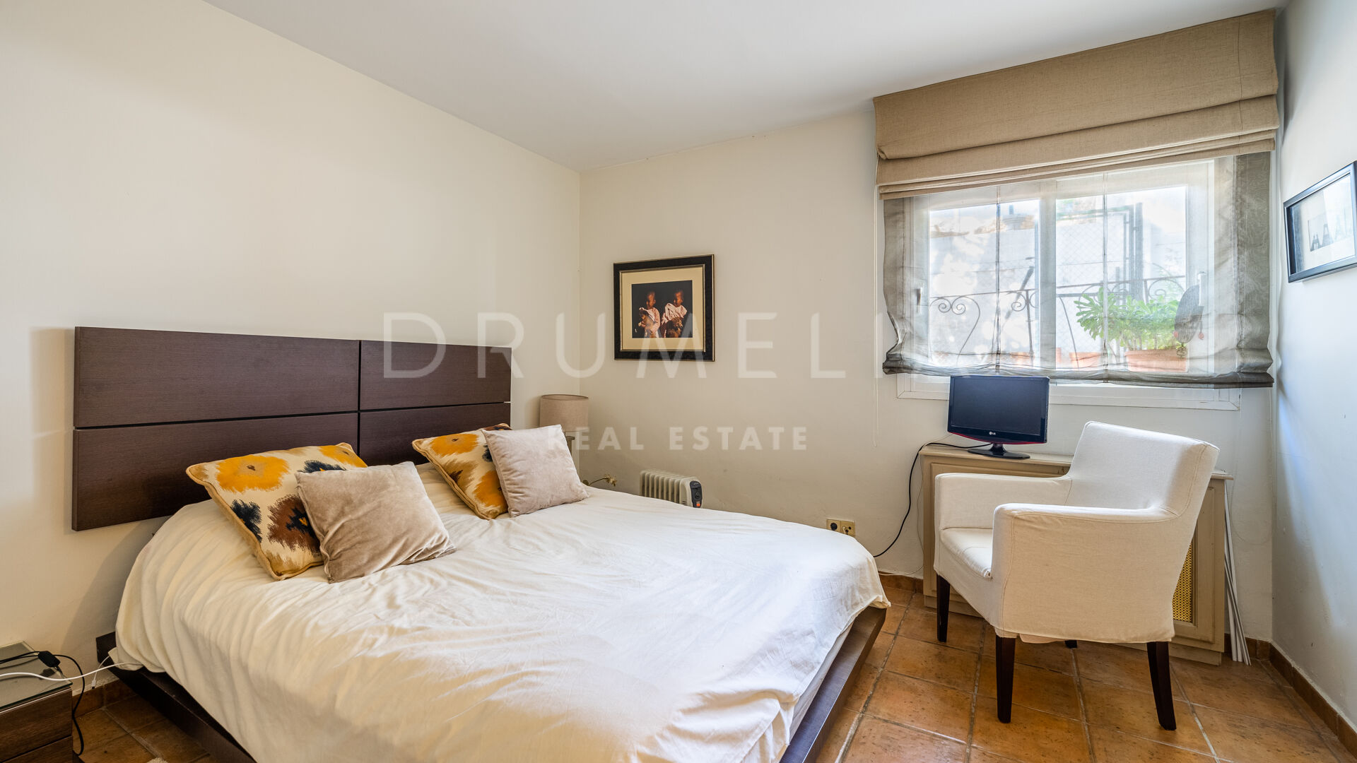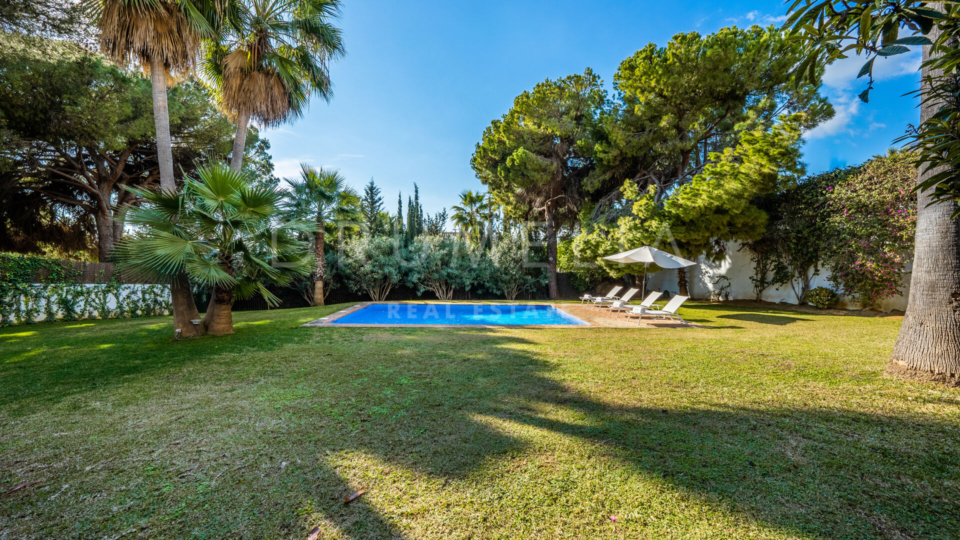 This beautiful and bright Mediterranean villa of 450m2 is set on the picturesque plot of 1900 m2 which is located in Nagüeles, one of the original luxury areas of Marbella, right in between two most prestigious parts of the town – the upper part called Sierra Blanca and the lower part of Golden Mile. Rocio de Nagueles is a very well- established residential area with stunning villas and lush subtropical vegetation. Its name is linked to Marbella’s glamorous past and remains a desirable place to live due to its prime location, the variety of great high- end properties, good infrastructure and proximity to the sea, mountains, world-famous Puerto Banus, all amenities of the 24-carat Golden Mile and the charming Old Center of the town.