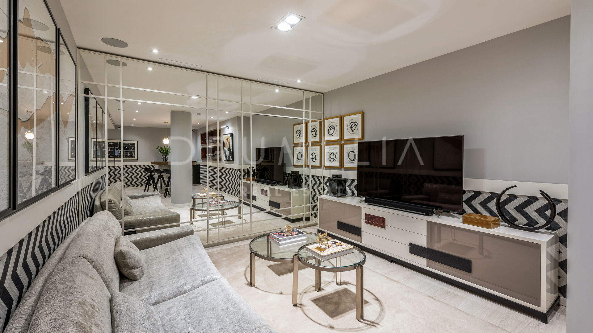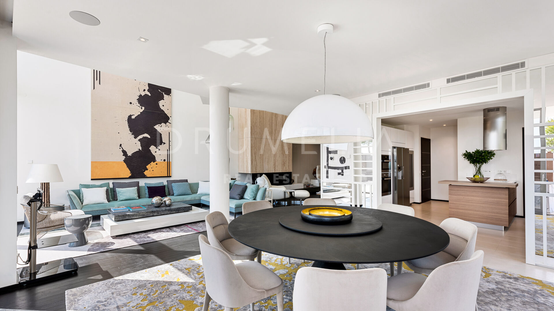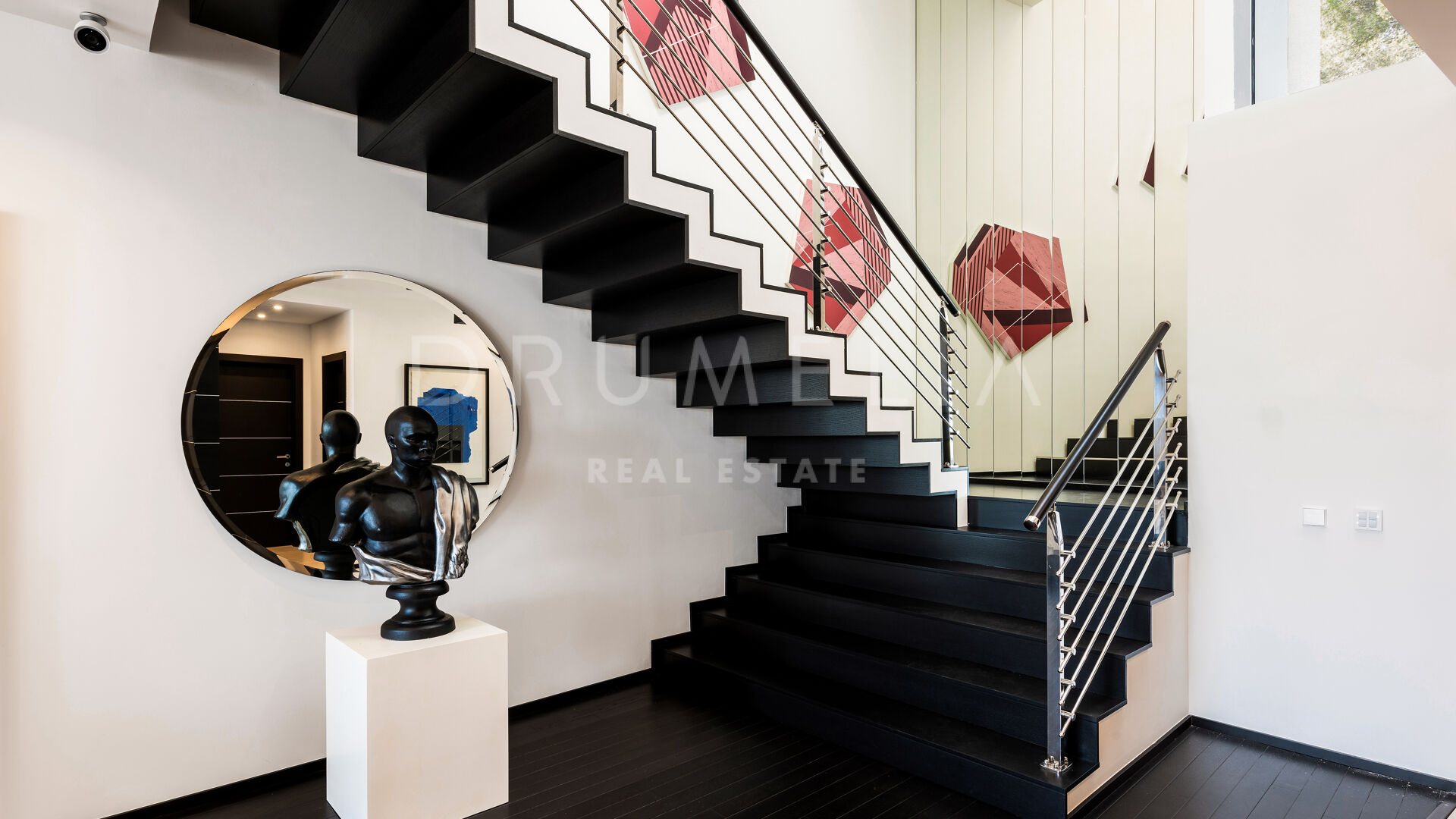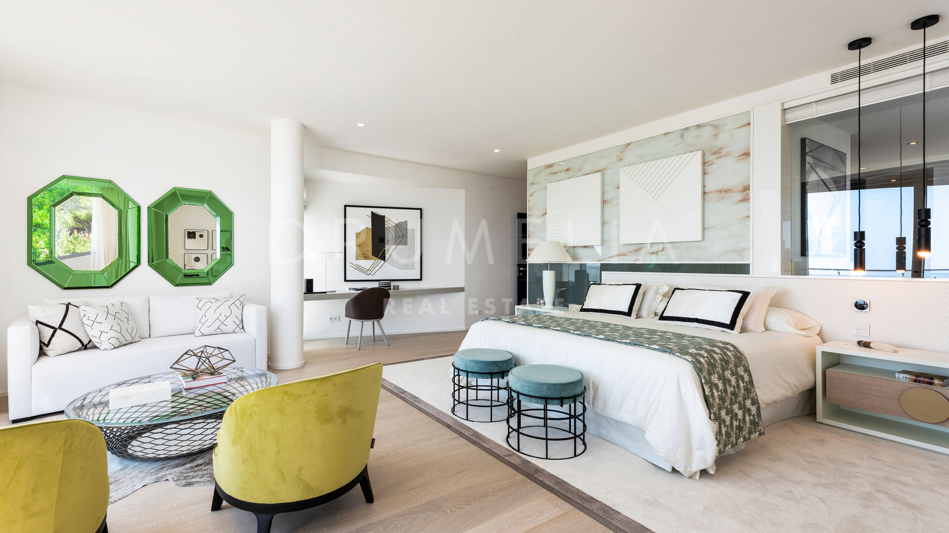 As soon as you step into this 735 m2 house, you will notice the elegance and refined materials, fully furnished with designer furniture from world-renowned Pedro Peña. It delivers generous living and dining areas, stunning 159 m2 terraces, an open plan kitchen with state-of-the-art appliances, 3 luxuriously appointed bedrooms, 3 elegant modern bathrooms, and a guest toilet. This house offers all the necessary modern comforts including a superb private swimming pool and remarkable rooftop solarium-terrace with Jacuzzi, BBQ, and seating areas where you will be delighted to enjoy the fantastic panoramic sea views. On the basement, there’s a signature TV room with high-end qualities-