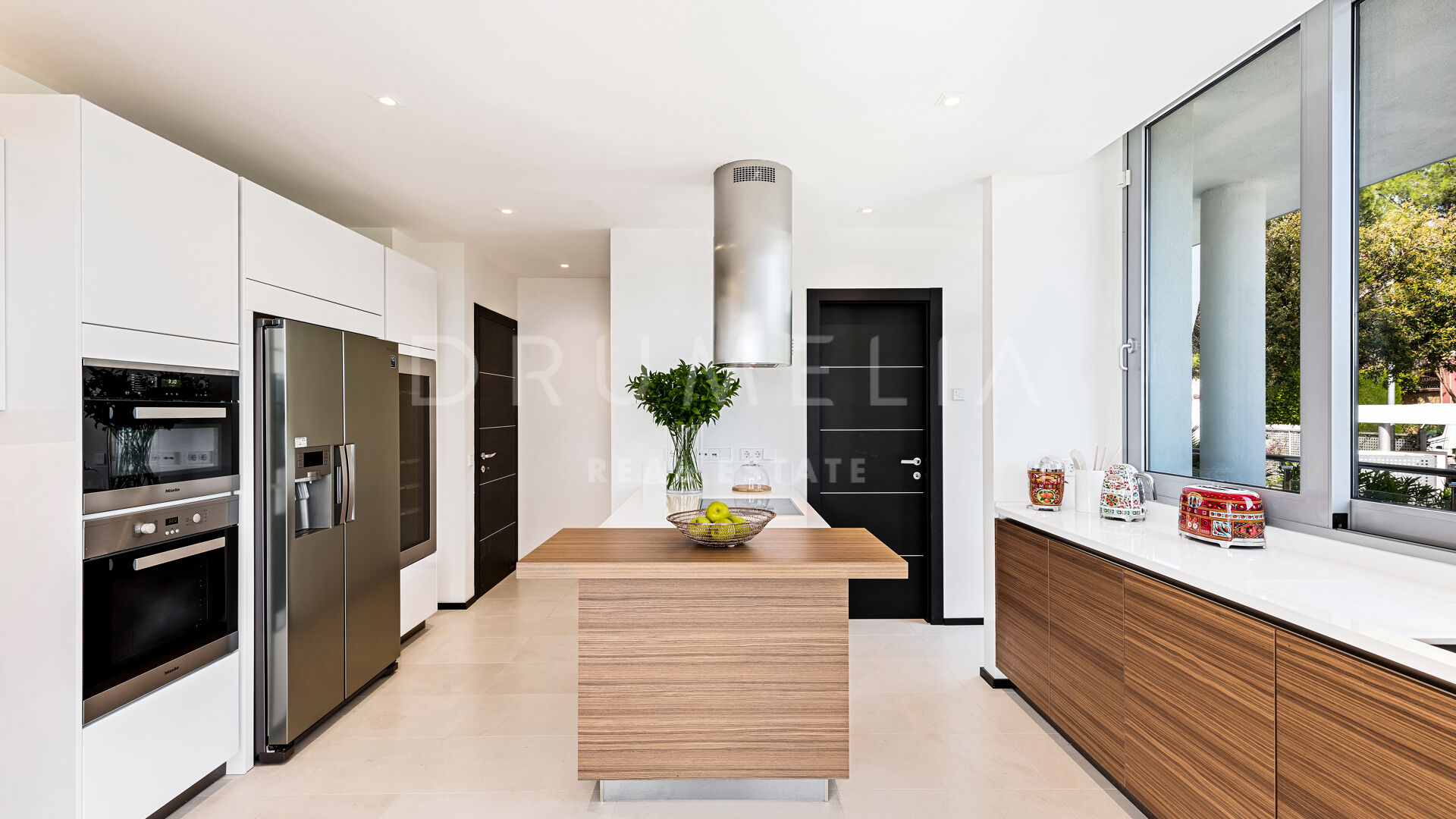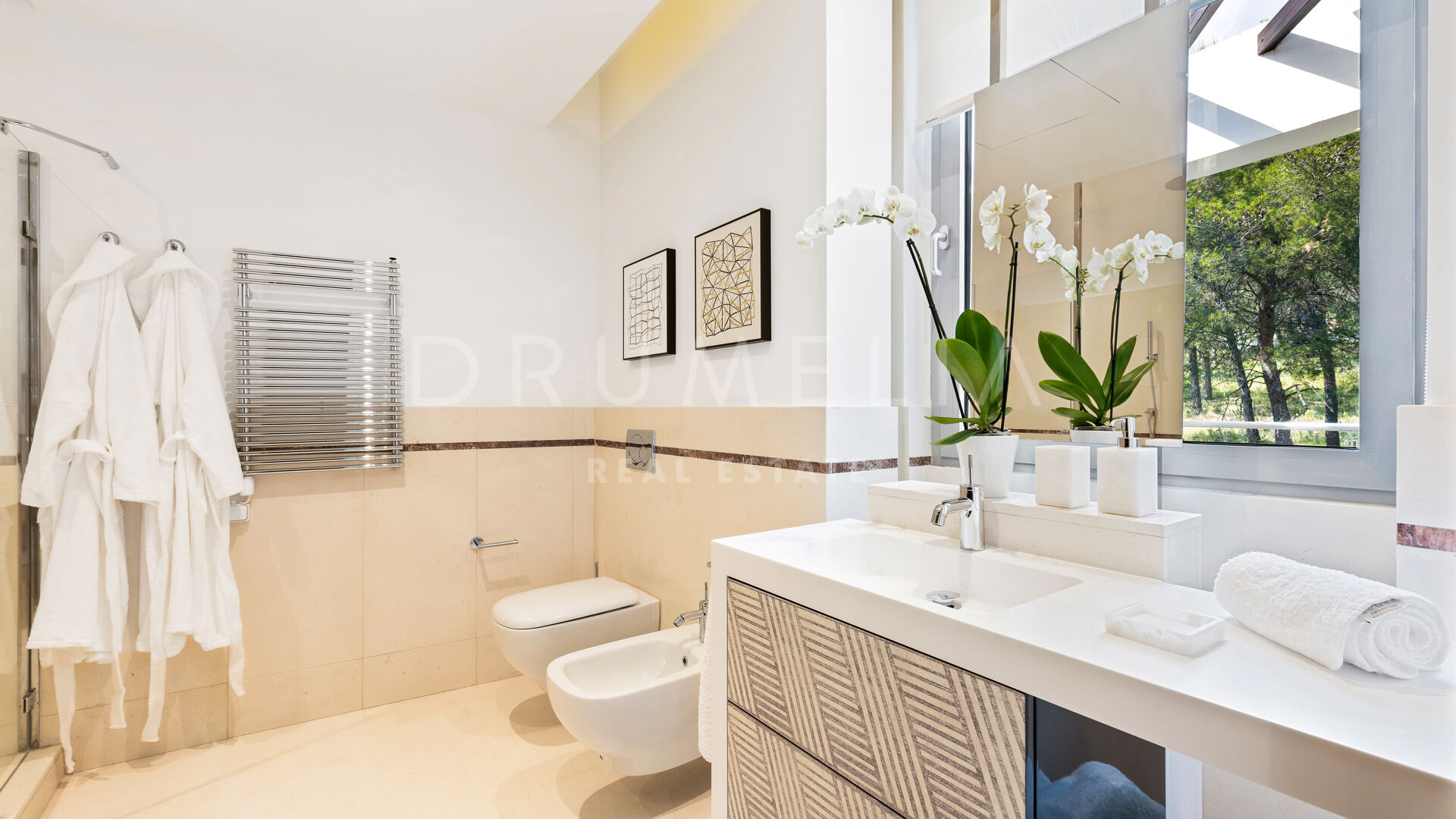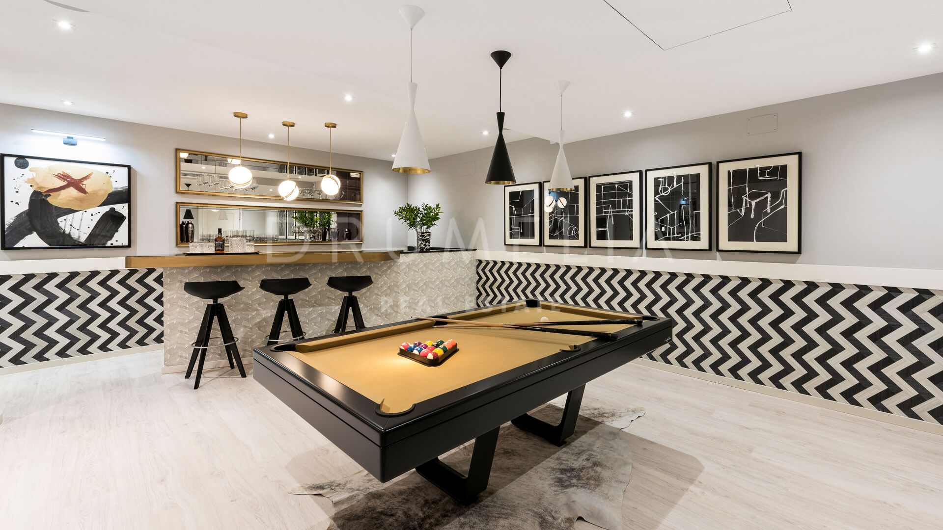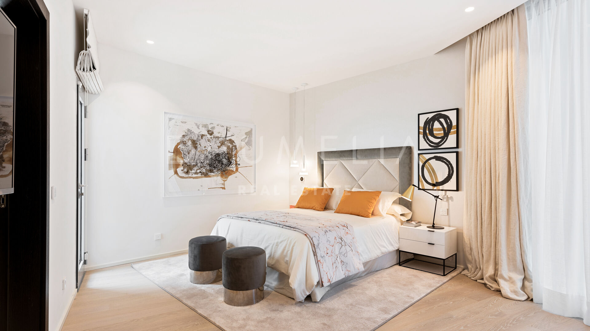 As soon as you step into this 735 m2 house, you will notice the elegance and refined materials, fully furnished with designer furniture from world-renowned Pedro Peña. It delivers generous living and dining areas, stunning 159 m2 terraces, an open plan kitchen with state-of-the-art appliances, 3 luxuriously appointed bedrooms, 3 elegant modern bathrooms, and a guest toilet. This house offers all the necessary modern comforts including a superb private swimming pool and remarkable rooftop solarium-terrace with Jacuzzi, BBQ, and seating areas where you will be delighted to enjoy the fantastic panoramic sea views. On the basement, there’s a signature TV room with high-end qualities-