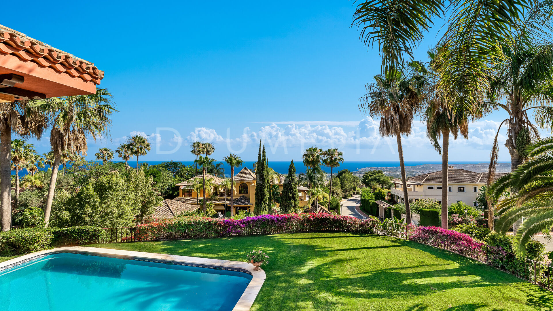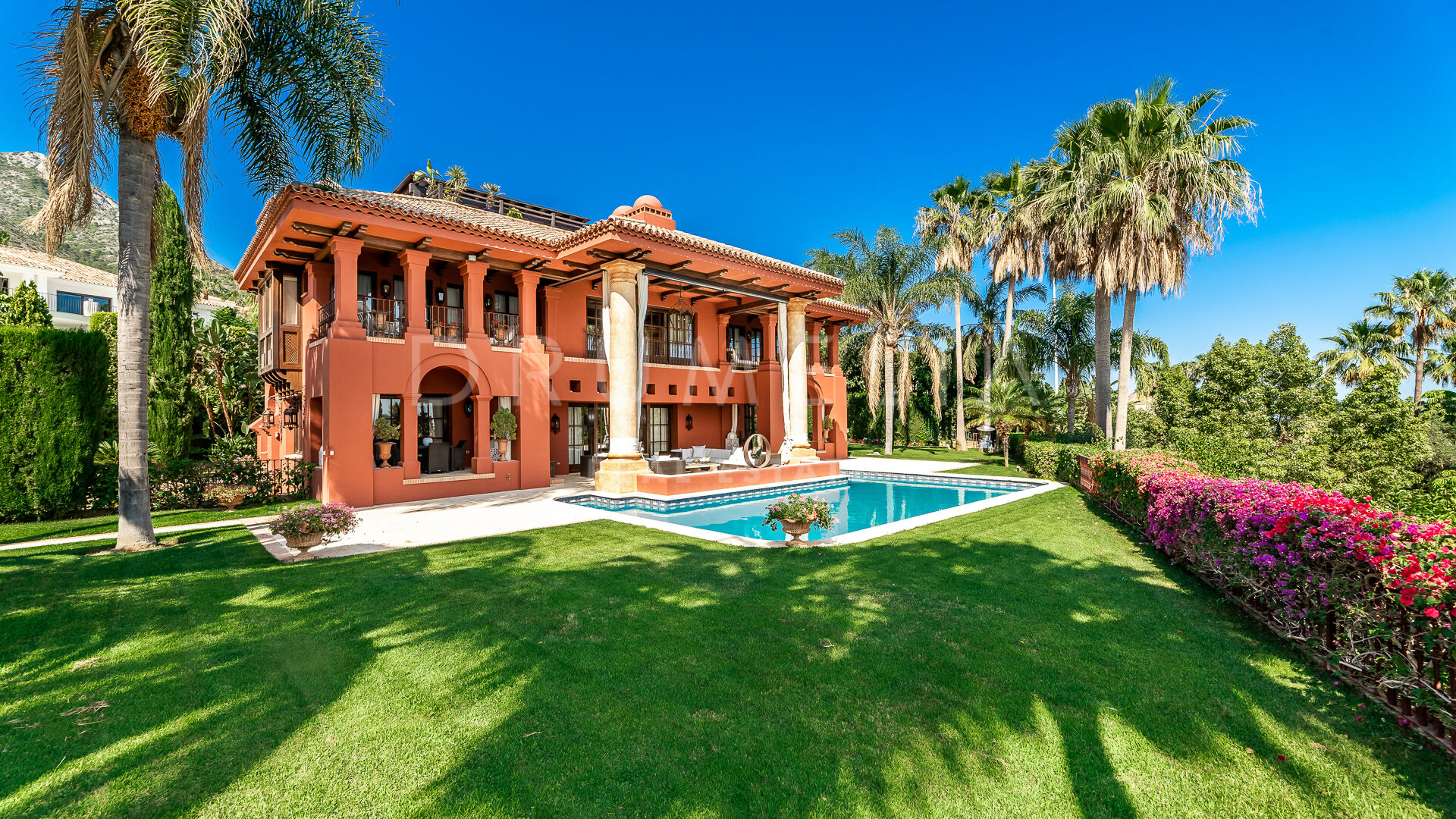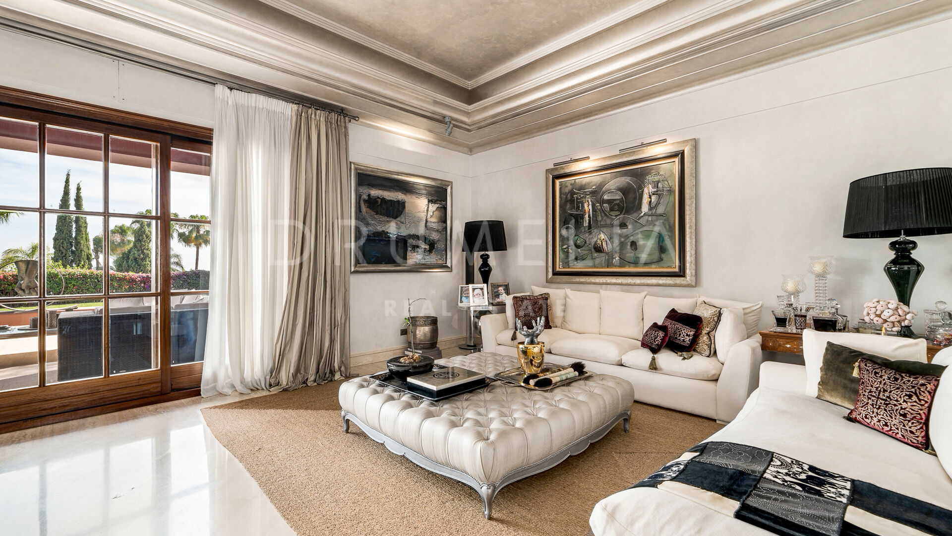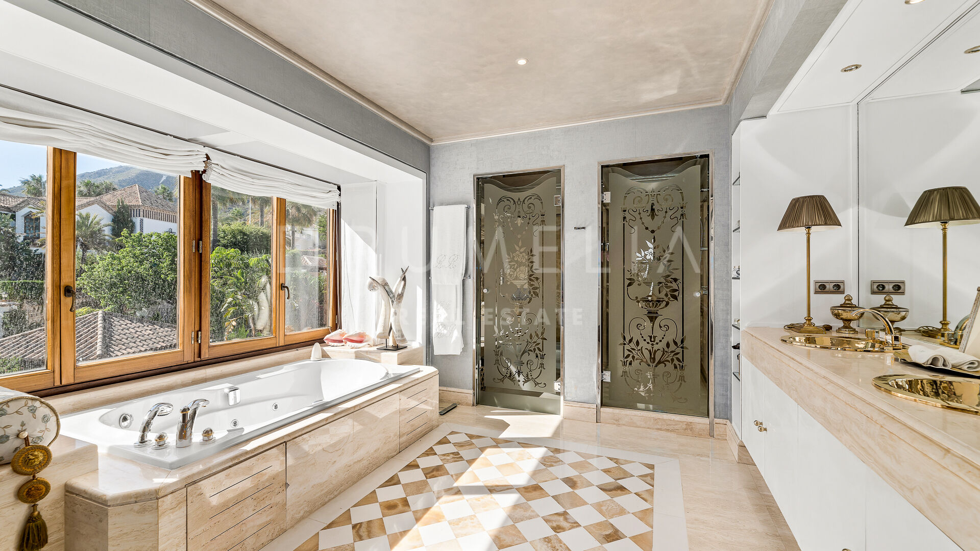 This grand villa for sale in Sierra Blanca fulfills the dreams of anyone seeking an impressive estate in one of the most privileged urbanisation in Marbella. The exclusive area of Sierra Blanca is located at the foot of legendary La Concha in the upper part of the famous Golden Mile. It is well known for its high level of security, beautiful nature, panoramic views and luxury properties. All amenities and services of the Golden Mile, Marbella Centre, Puerto Banus and Nueva Andalucia are within a very short distance. Sandy beaches are at approximately 3 km. It will take you a few minute to reach Michelin star restaurants, trendy nightclubs, bars, beach clubs, designer boutiques, banks, international schools, tennis clubs and golf courses. Malaga and Gibraltar airports are less than an hour away by the highway.