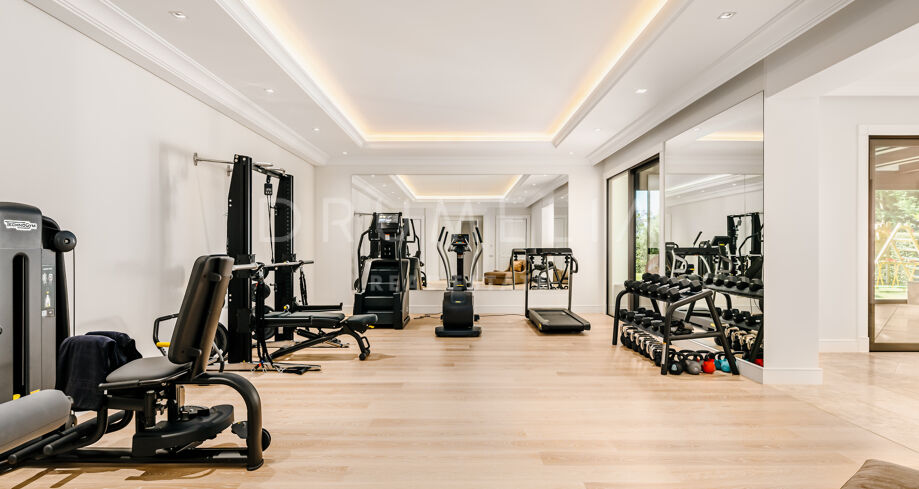 Downstairs there are staff quarters with independent access, a machine room and professional laundry. The lower level is not a basement, but a ground floor that makes use of the natural slope of the land. It’s a great advantage because the private quarters, entertainment rooms, SPA and fitness area (with gym, sauna, steam room, Jacuzzi and accompanying facilities) benefit from natural light, sun and fantastic views. Another large room on the ground floor can be used a separate guest apartment.