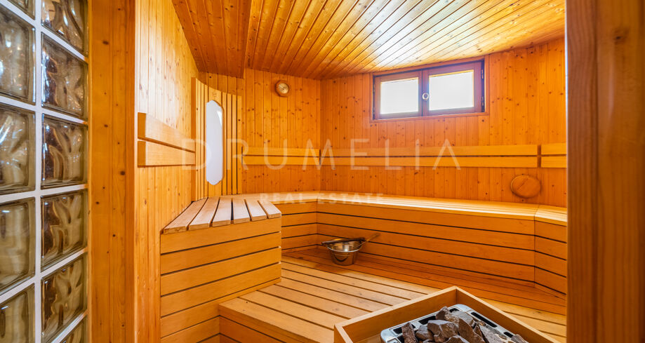 This is a true Dream Home for any ‘aficionado’ of the classic Mediterranean style and its timeless beauty. The significant traditional elements beautify the architecture and interior, and the property has a lot of character. Attention to detail makes this home a masterpiece. A double-height entrance hall with a stunning wooden door, marble floors, beautiful window design and exquisite staircase, give visitors an epic first impression. The ground floor features a living room with a fireplace and French doors leading to the terraces; a formal dining room; a separate gourmet-kitchen with informal dining area and premium equipment and appliances; 3 serene bedrooms en-suite; an office and a guest toilet. The first floor offers 2 bedroom suits with access to a private terrace: a Master bedroom and another bedroom with bathroom en-suite. The basement has a storage area, additional bedroom, gym and SPA-area with sauna.