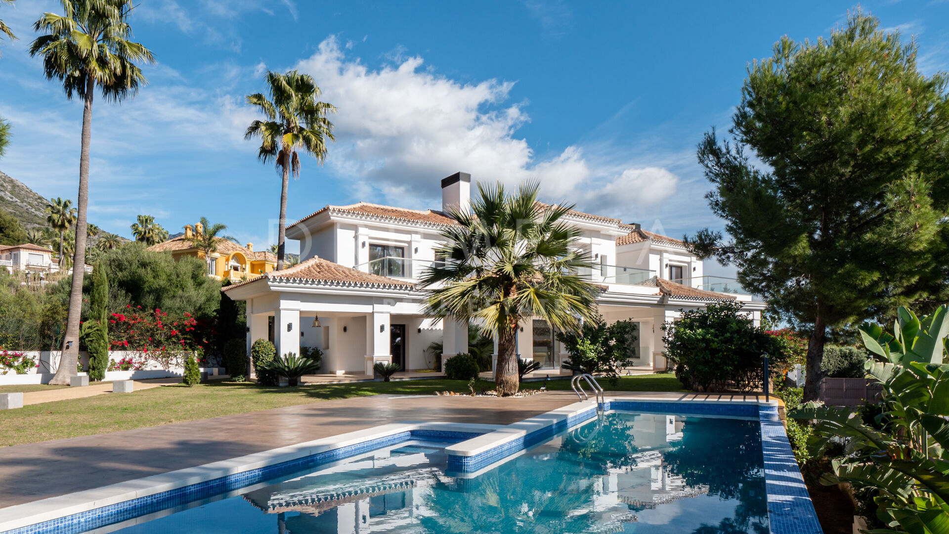 This brand -new (constructed in 2017) elegant villa in Sierra Blanca is perfect for those who search for the highest level of comfort, security and privacy while being close to the beaches, Marbella’s Old Centre, fashionable Puerto Banus, international schools, golf courses and all the amenities of Southern Spain.