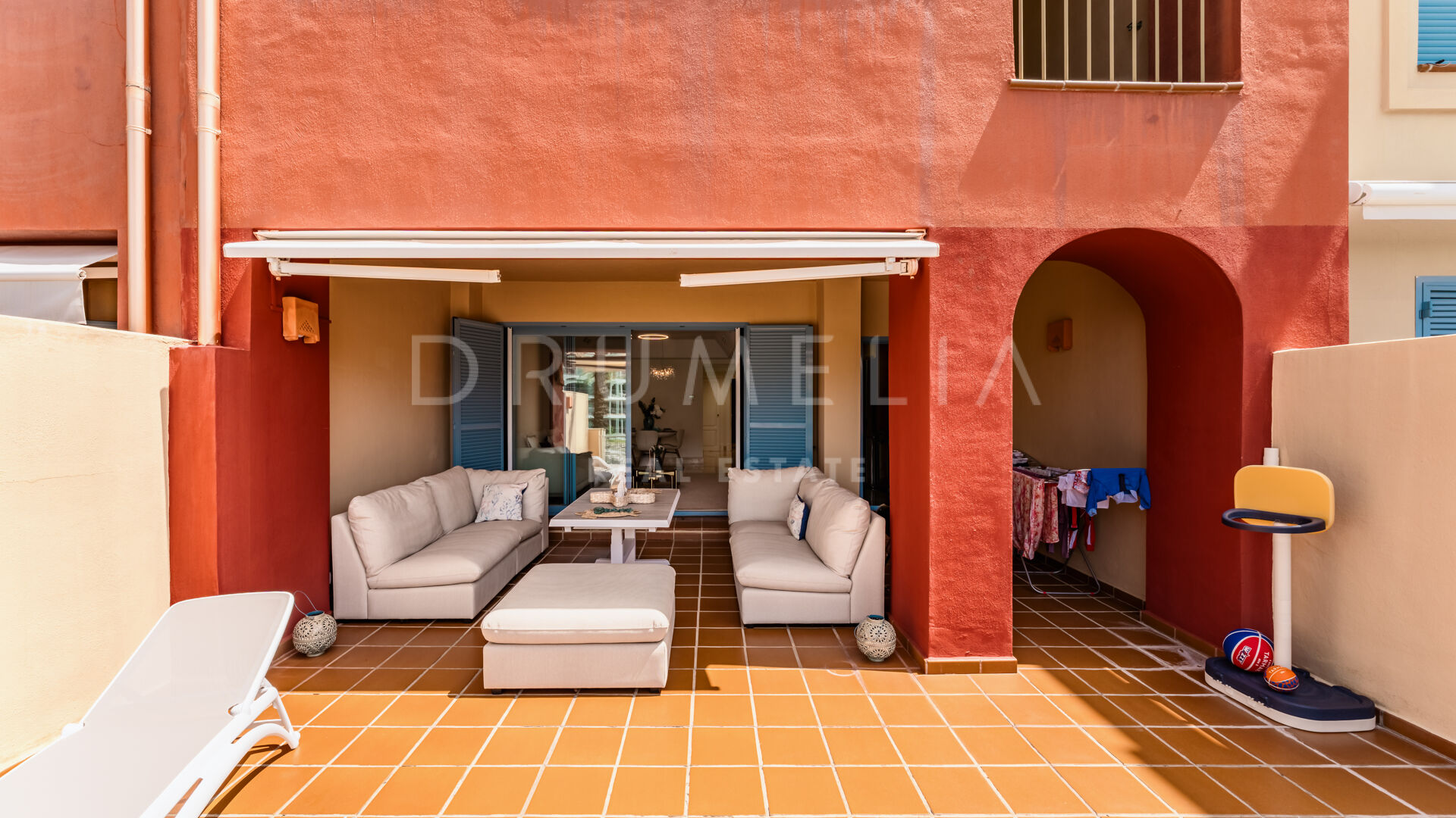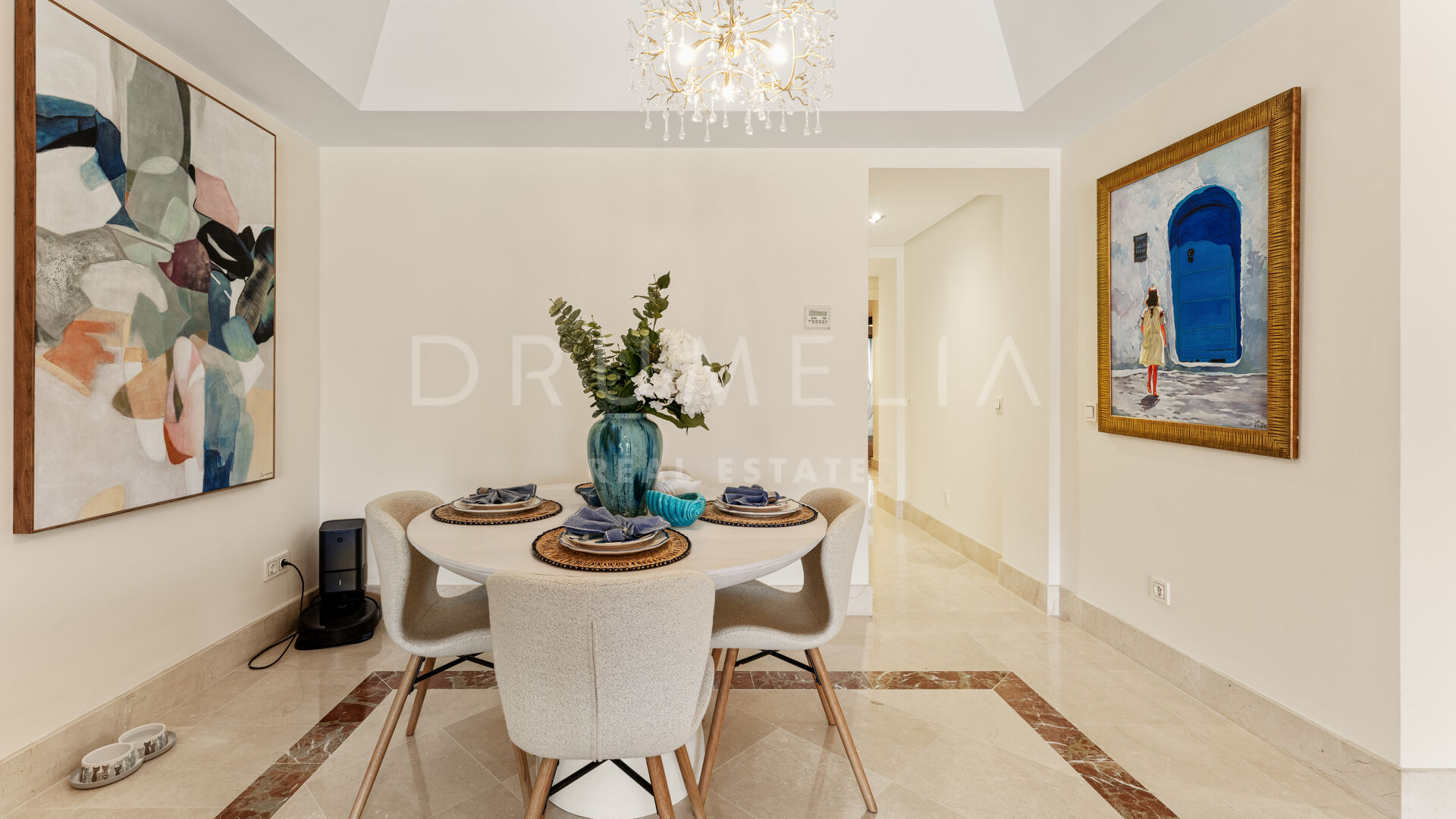 This elegant two-bedroom, two-bathroom apartment is a rare opportunity to enjoy a serene marina-front lifestyle in the heart of Sotogrande Puerto Deportivo. Fully furnished and in excellent condition, the property combines timeless design with modern comfort, offering both functionality and a warm, inviting atmosphere. The spacious living and dining area opens directly onto a generous private terrace with panoramic views of the marina, perfect for dining al fresco or simply relaxing while watching the boats. The apartment includes both a covered and uncovered terrace, ideal for enjoying the outdoors all year round.