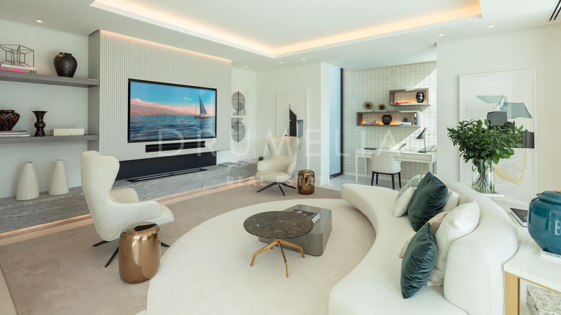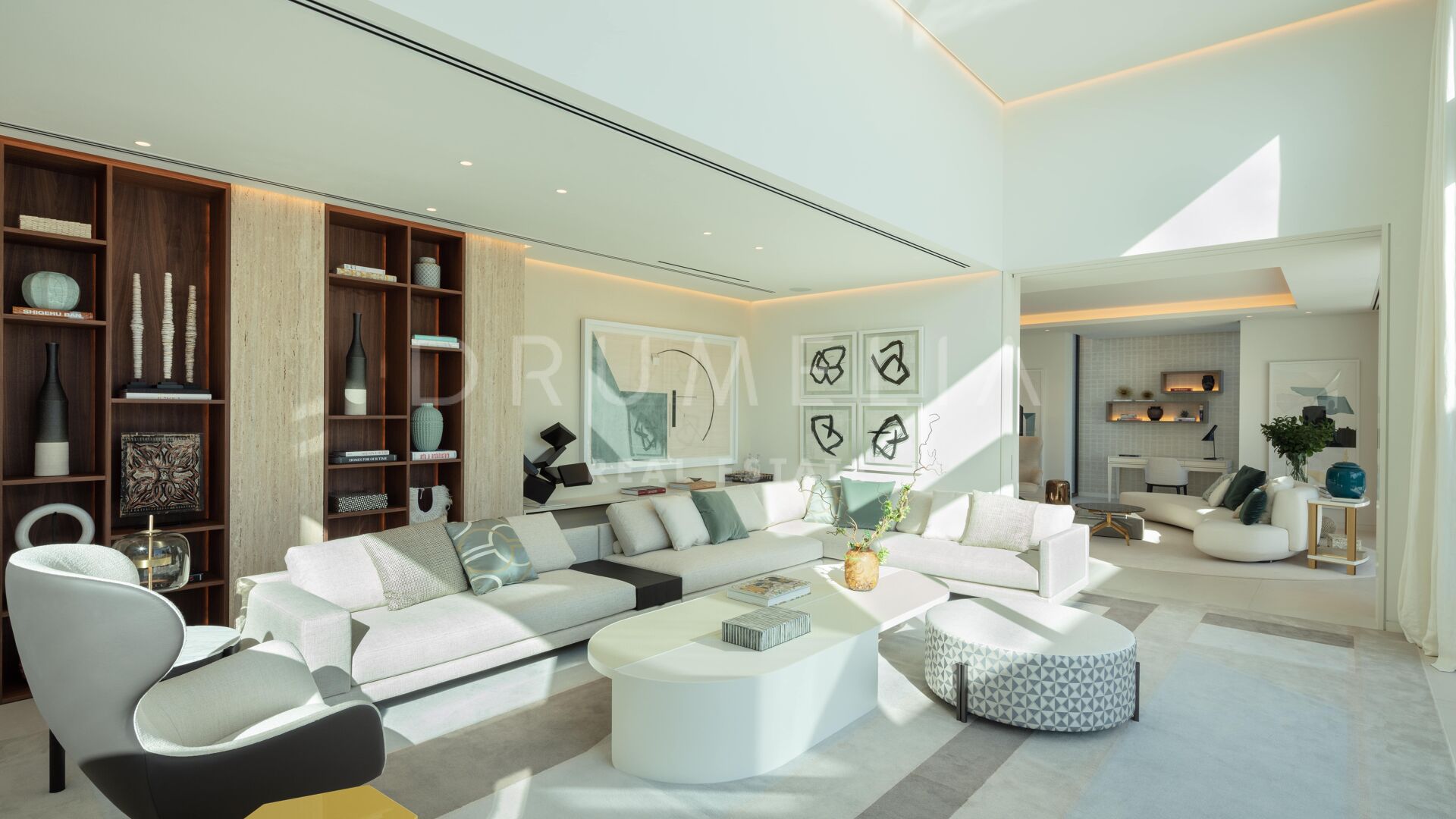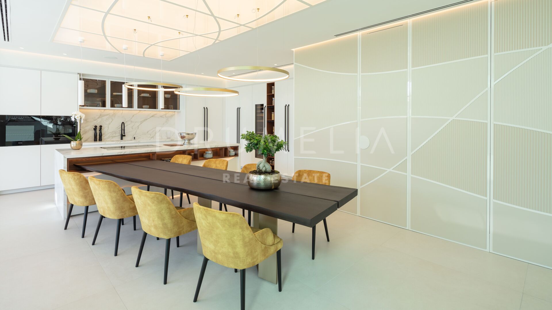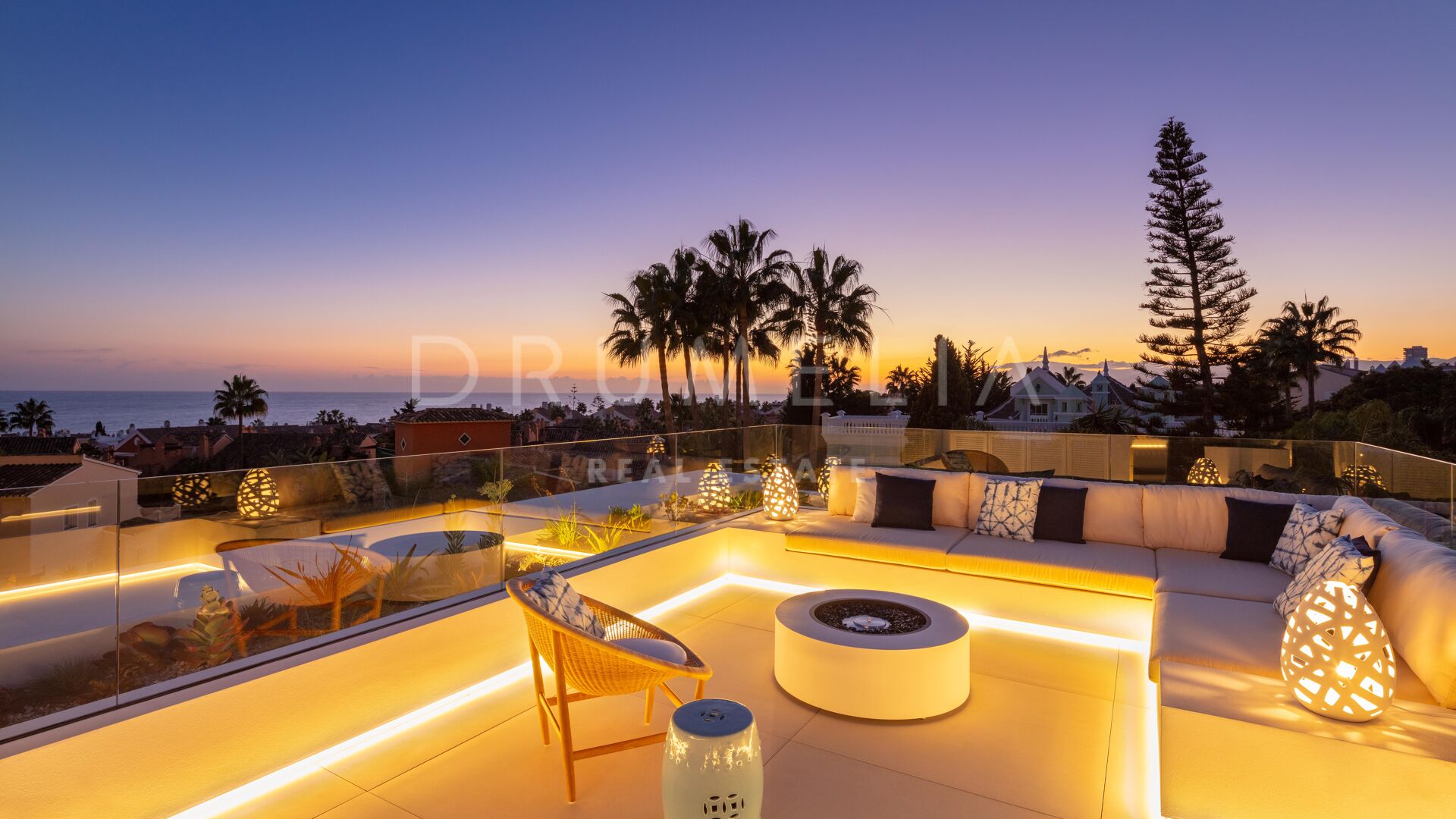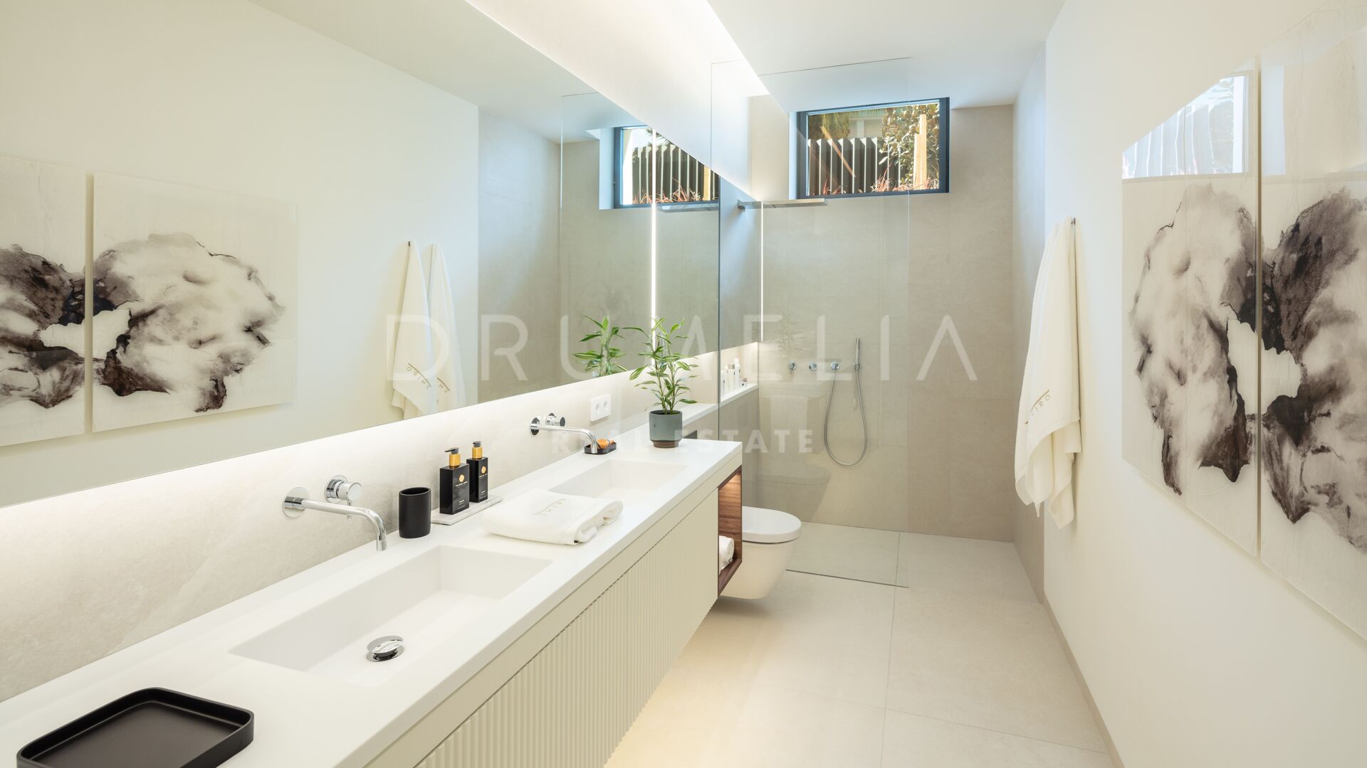 Enclavado en una pintoresca parcela de 1.322 m², el refugio ecológico de alta gama de 665 m² ha sido recientemente completado y terminado a la perfección para ofrecer la mejor vida de resort de estilo playero. Esta verdadera obra maestra de la arquitectura ofrece un diseño contemporáneo de vanguardia, calidades de lujo e interiores impresionantes del famoso diseñador Pedro Peña. También impresiona por sus espacios abiertos y elegantes, sus avances tecnológicos y sus deliciosas vistas a la exuberante vegetación, a un entorno perfecto y al mar Mediterráneo hasta la costa africana. Los espacios habitables son luminosos y gozan de mucha luz natural gracias a los amplios ventanales que van del suelo al techo, las puertas de cristal y la perfecta orientación al sur.