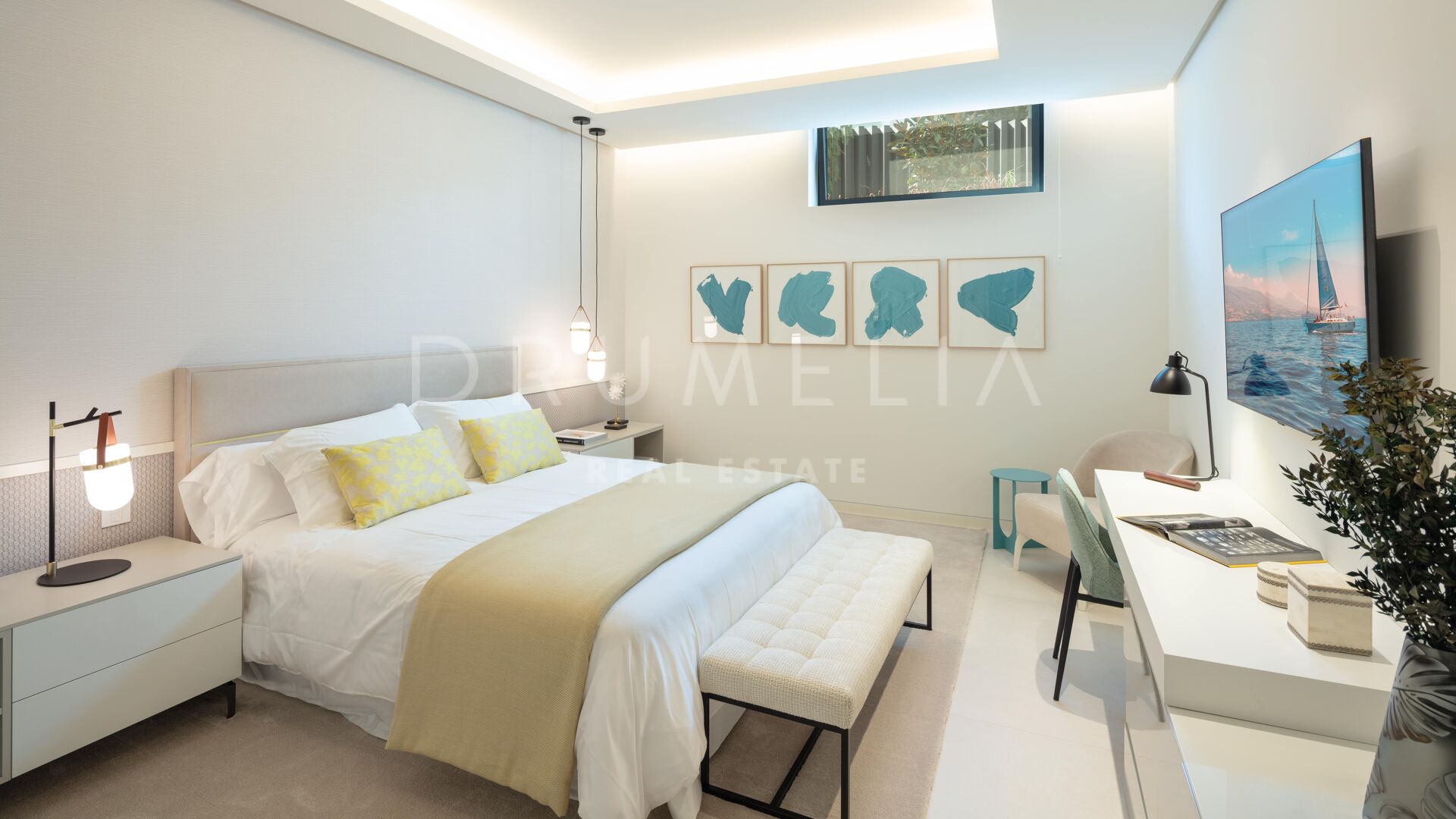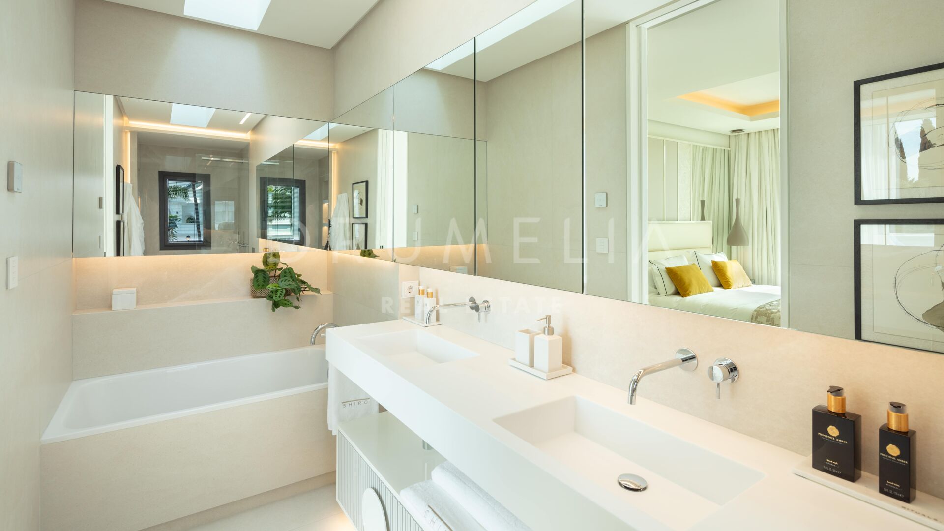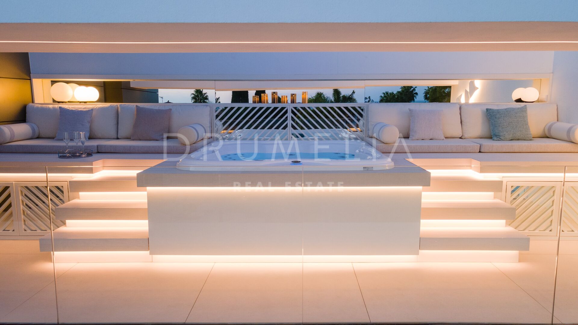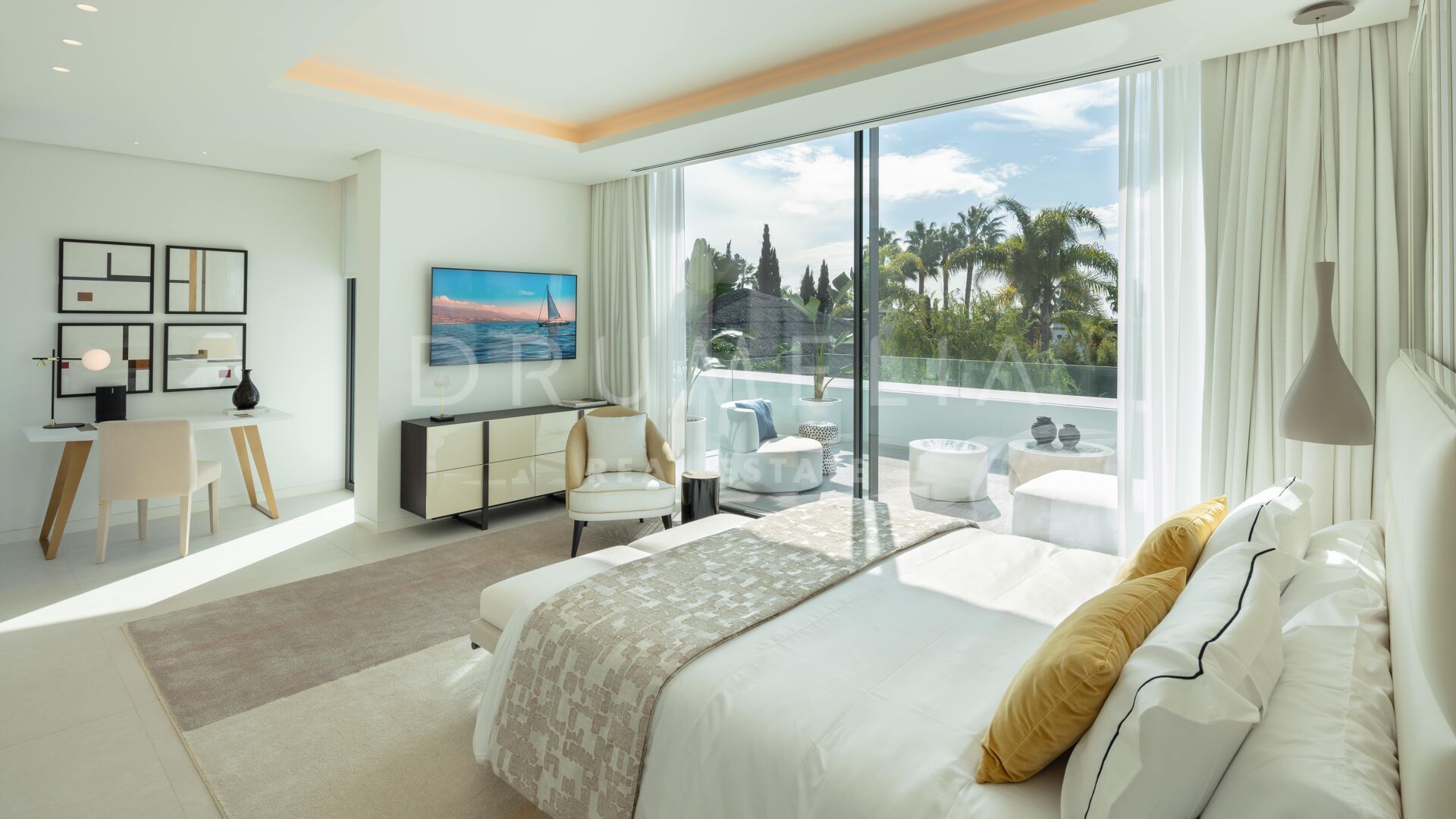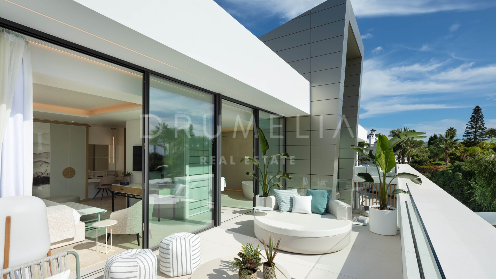 Enclavado en una pintoresca parcela de 1.322 m², el refugio ecológico de alta gama de 665 m² ha sido recientemente completado y terminado a la perfección para ofrecer la mejor vida de resort de estilo playero. Esta verdadera obra maestra de la arquitectura ofrece un diseño contemporáneo de vanguardia, calidades de lujo e interiores impresionantes del famoso diseñador Pedro Peña. También impresiona por sus espacios abiertos y elegantes, sus avances tecnológicos y sus deliciosas vistas a la exuberante vegetación, a un entorno perfecto y al mar Mediterráneo hasta la costa africana. Los espacios habitables son luminosos y gozan de mucha luz natural gracias a los amplios ventanales que van del suelo al techo, las puertas de cristal y la perfecta orientación al sur.