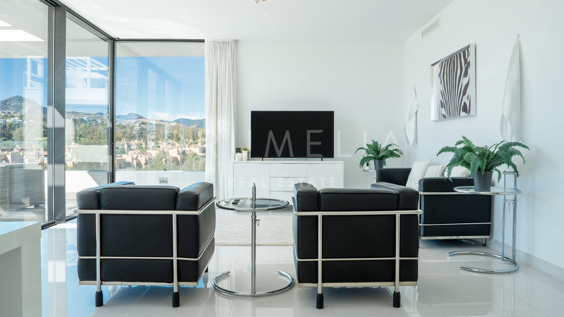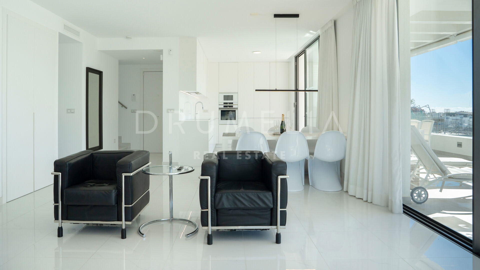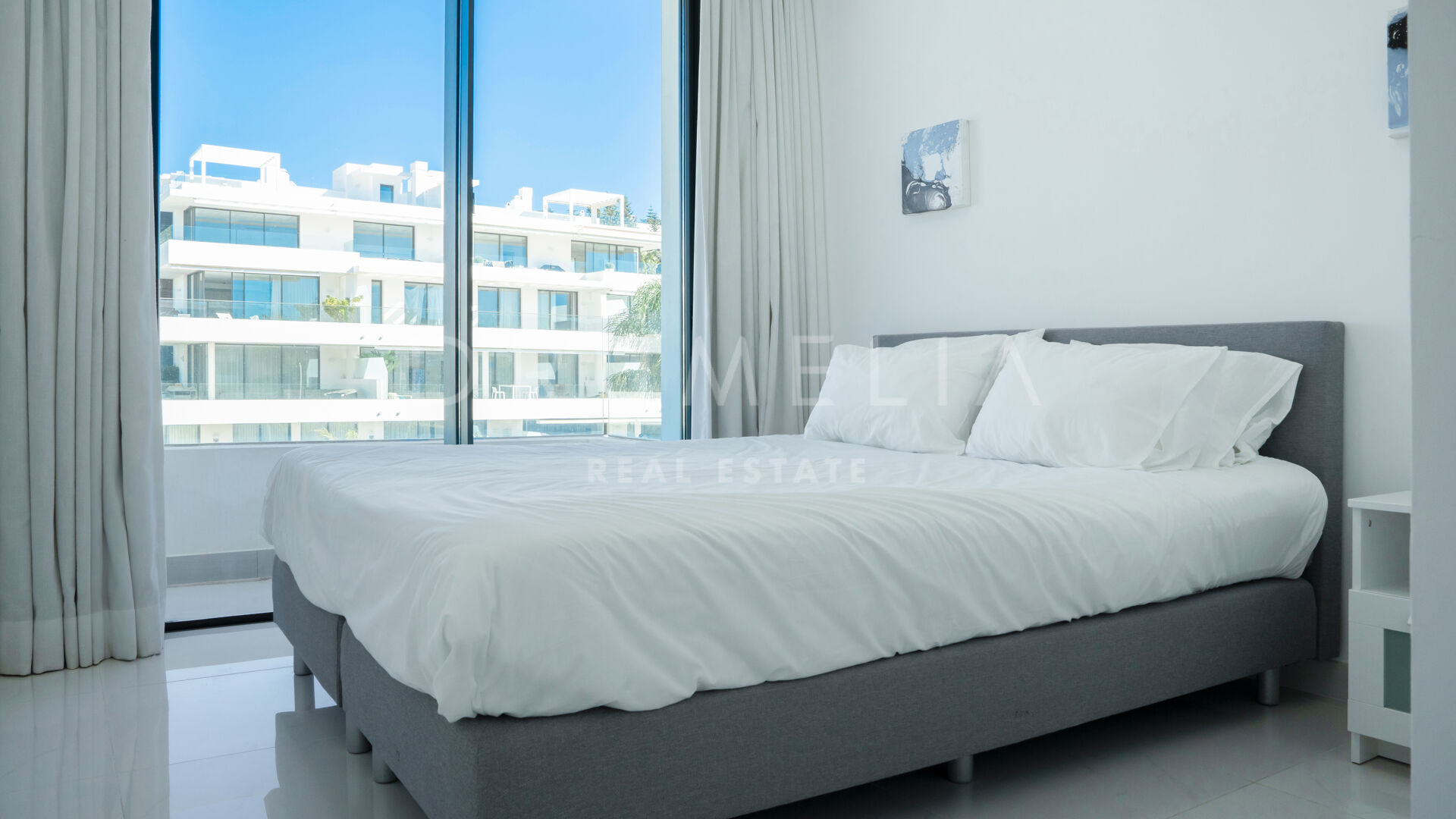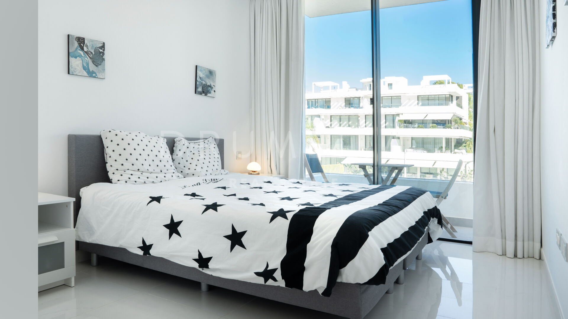 Rodeada de propiedades similares de la zona de Estepona, esta espectacular propiedad de 134 m² con una terraza de 146 m² desprende elegancia y sofisticación. El gran salón está adornado con ventanales que van del suelo al techo, permitiendo que la luz natural inunde el espacio y acentúe la cuidada decoración. El esquema de diseño interior monocromático o en blanco y negro es un clásico atemporal, que tiene su origen en el movimiento art-deco. El amplio balcón y el solarium ofrecen un lugar sereno para relajarse, tomar el sol, relajarse y cenar al aire libre. Disfrutará de las hipnotizantes vistas del bello entorno y de las gloriosas puestas de sol que proyectan un cálido resplandor sobre los alrededores. La cocina de última generación está totalmente equipada con electrodomésticos de gama alta, lo que la convierte en un paraíso para los amantes de la cocina.