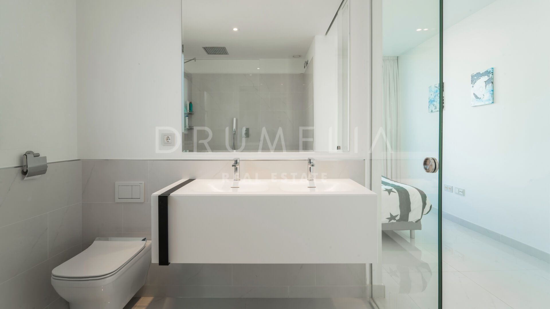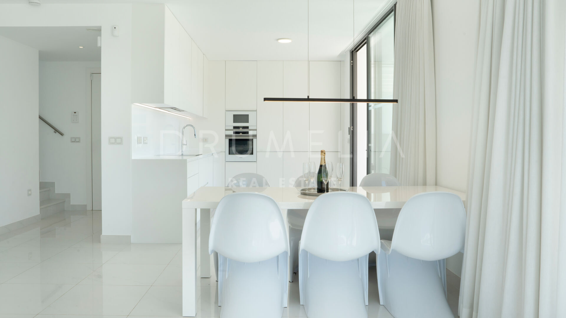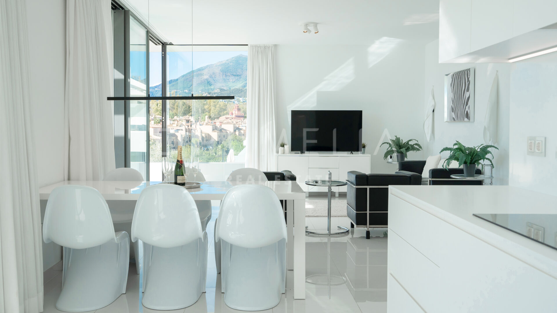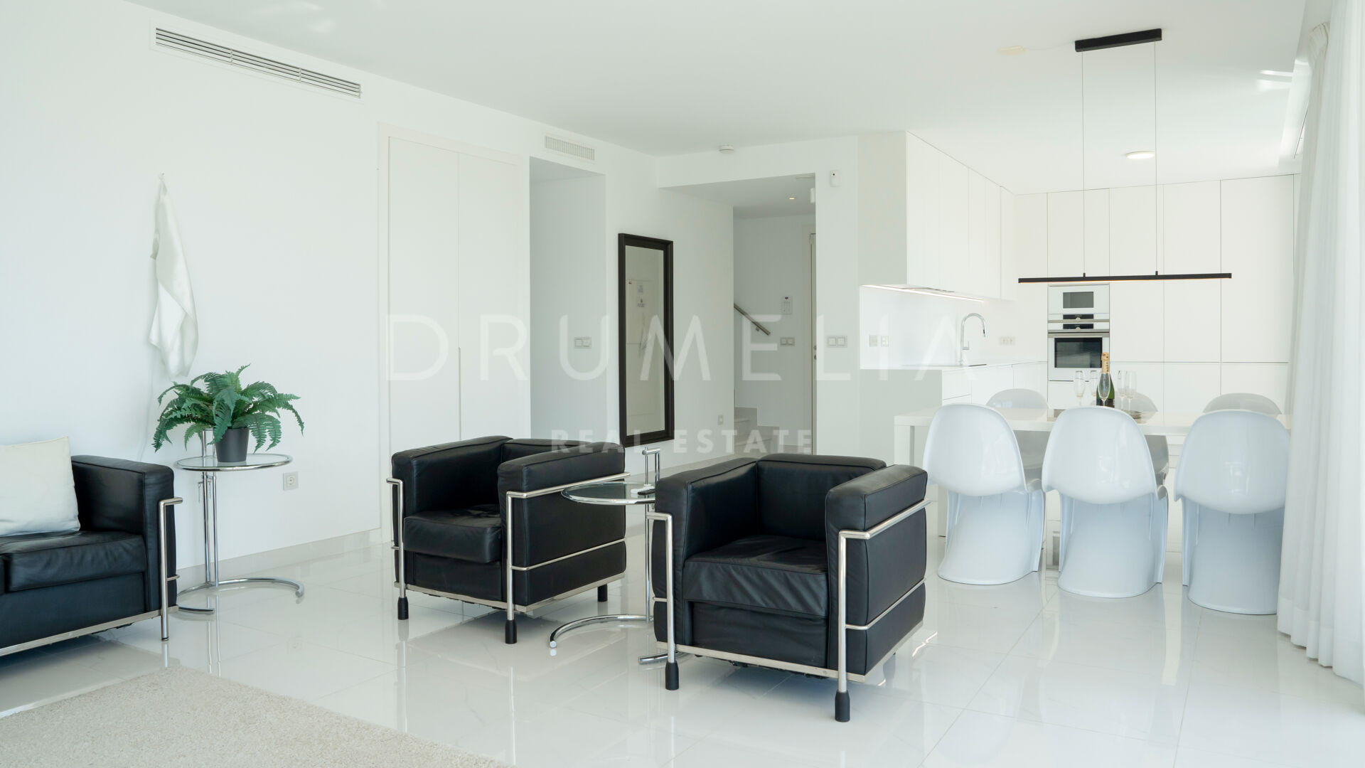 Rodeada de propiedades similares de la zona de Estepona, esta espectacular propiedad de 134 m² con una terraza de 146 m² desprende elegancia y sofisticación. El gran salón está adornado con ventanales que van del suelo al techo, permitiendo que la luz natural inunde el espacio y acentúe la cuidada decoración. El esquema de diseño interior monocromático o en blanco y negro es un clásico atemporal, que tiene su origen en el movimiento art-deco. El amplio balcón y el solarium ofrecen un lugar sereno para relajarse, tomar el sol, relajarse y cenar al aire libre. Disfrutará de las hipnotizantes vistas del bello entorno y de las gloriosas puestas de sol que proyectan un cálido resplandor sobre los alrededores. La cocina de última generación está totalmente equipada con electrodomésticos de gama alta, lo que la convierte en un paraíso para los amantes de la cocina.