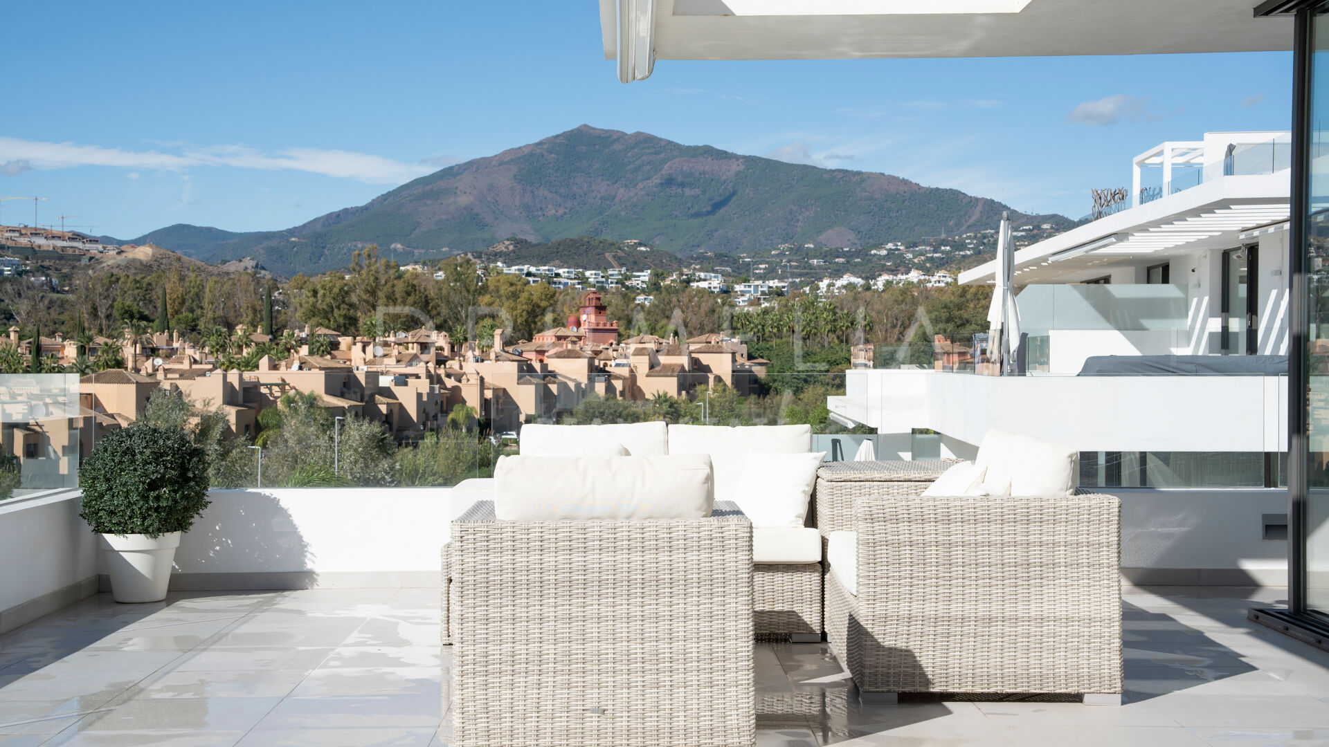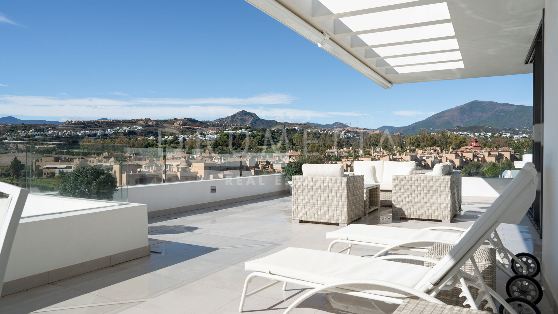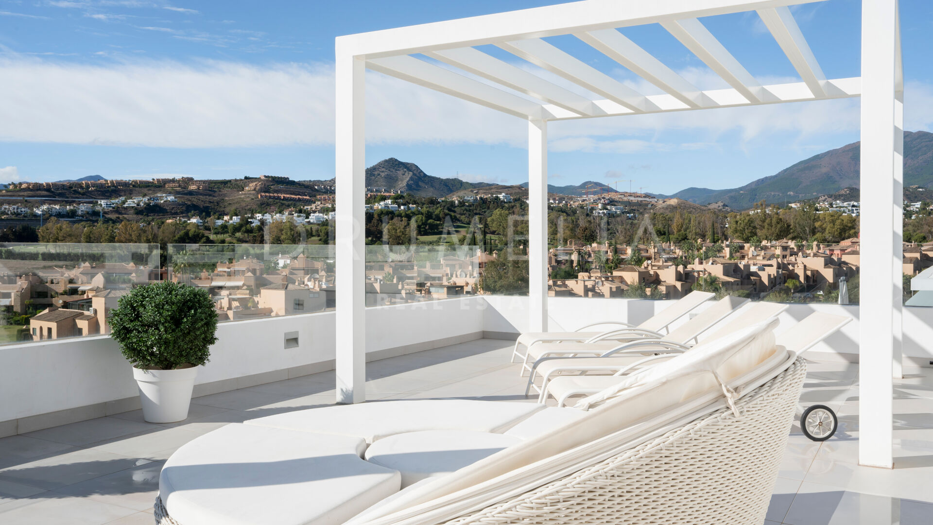 Elegante ático dúplex de lujo moderno con vistas pastorales en la contemporánea Cataleya, Estepona.