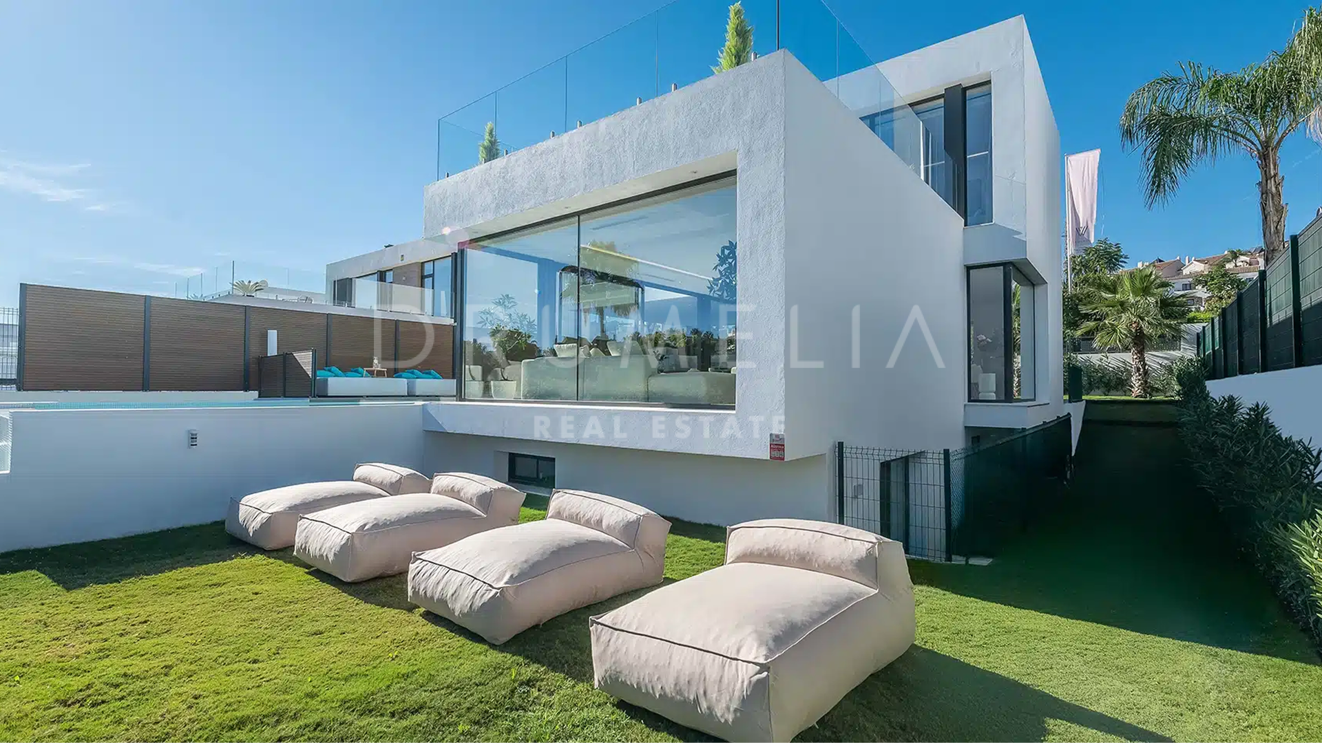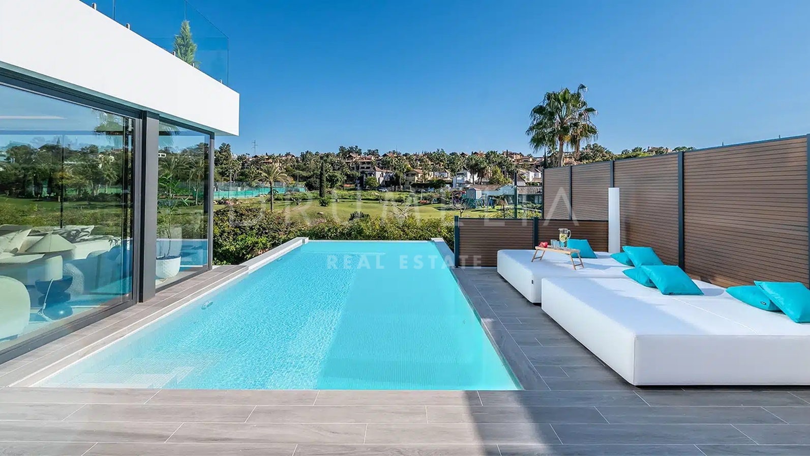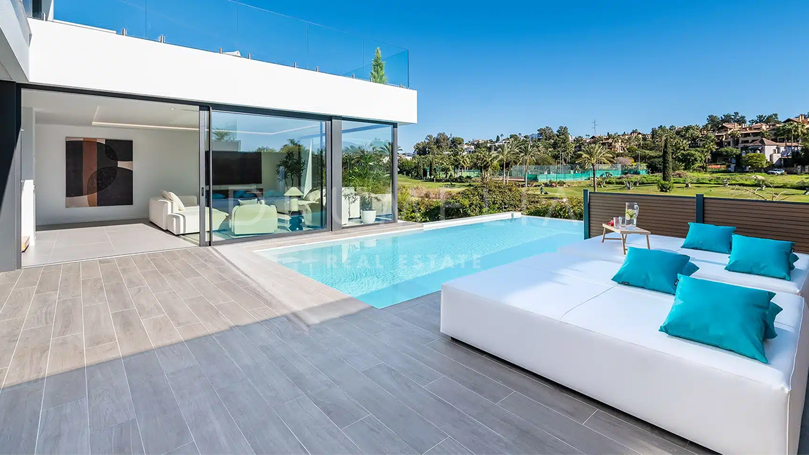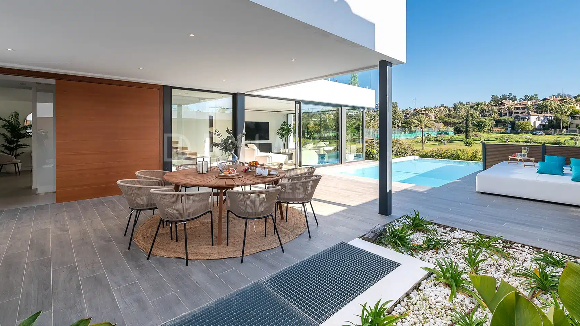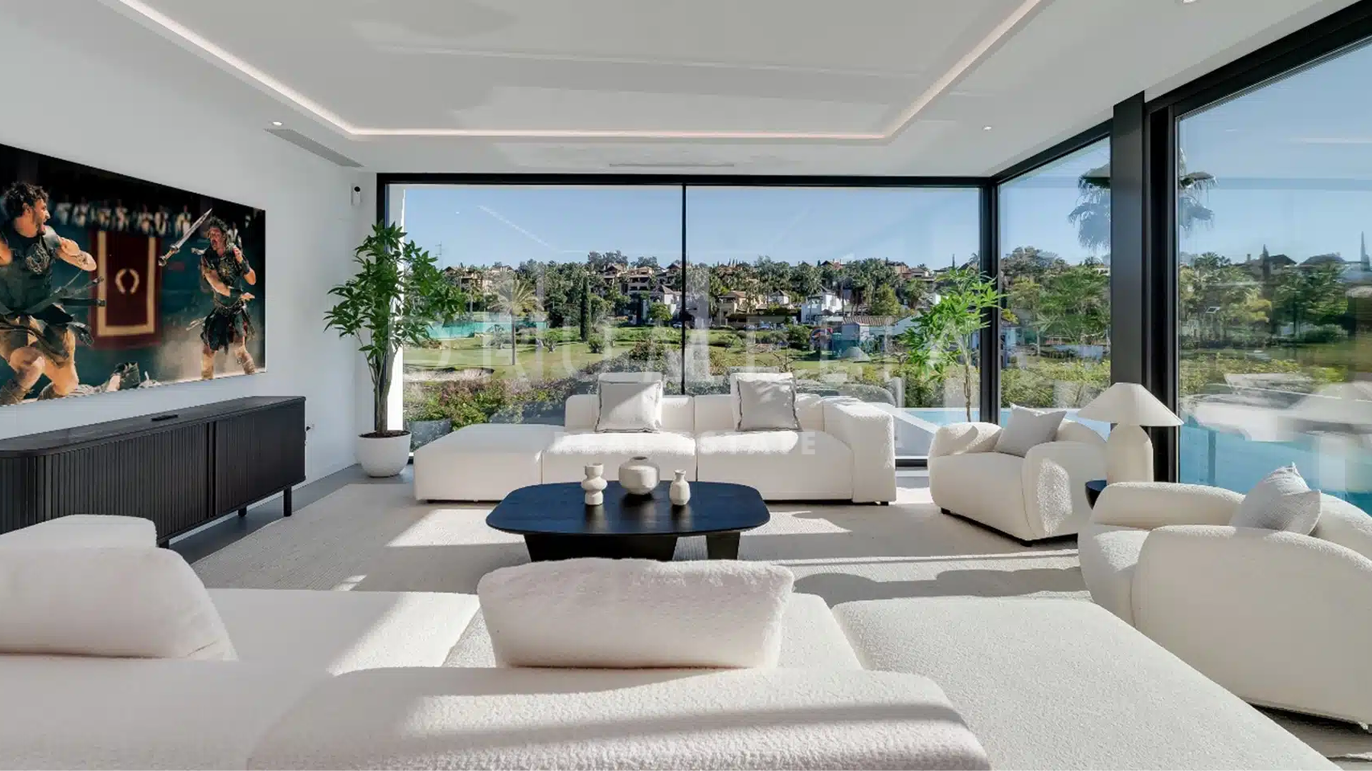 Situado en España, Andalucía, Málaga, Estepona (El Campanario), esta villa contemporánea goza de vistas abiertas al golf en una de las zonas residenciales más establecidas de la Nueva Milla de Oro. Situado cerca de campos de golf, escuelas internacionales, clubes de playa y comodidades, la propiedad ofrece un equilibrio ideal entre privacidad, estilo de vida y accesibilidad, con Marbella, Puerto Banús y Estepona a poca distancia en coche.