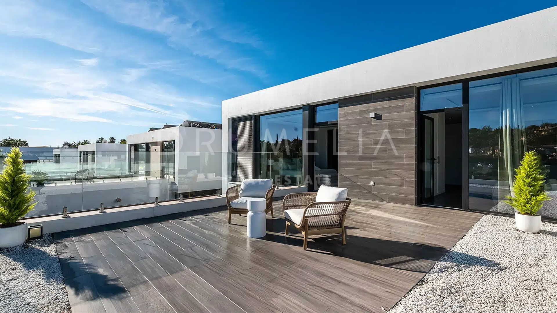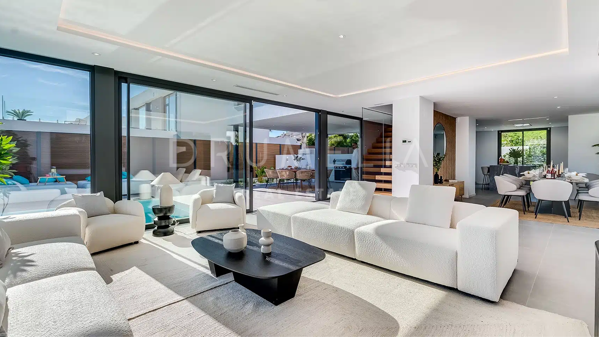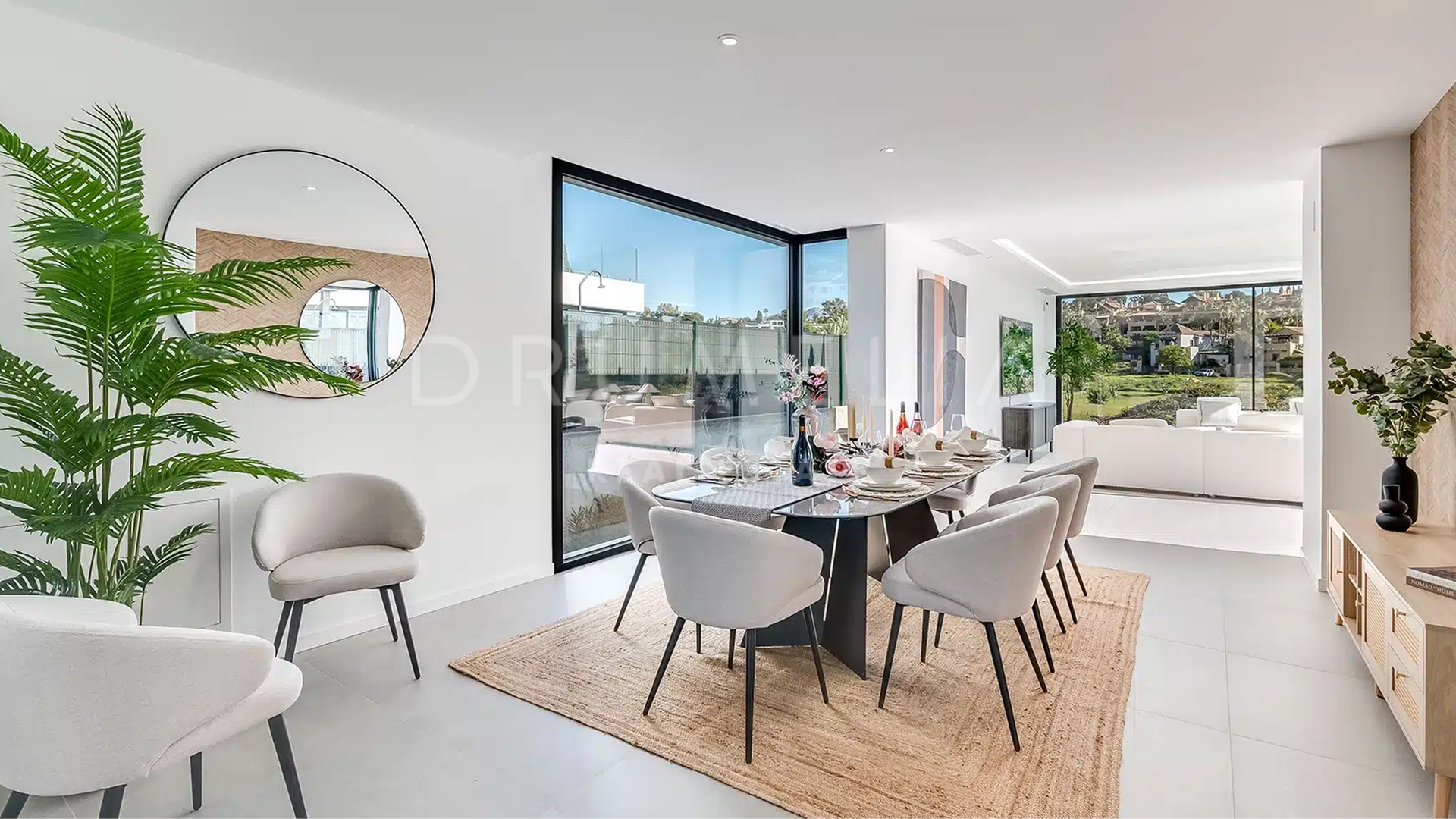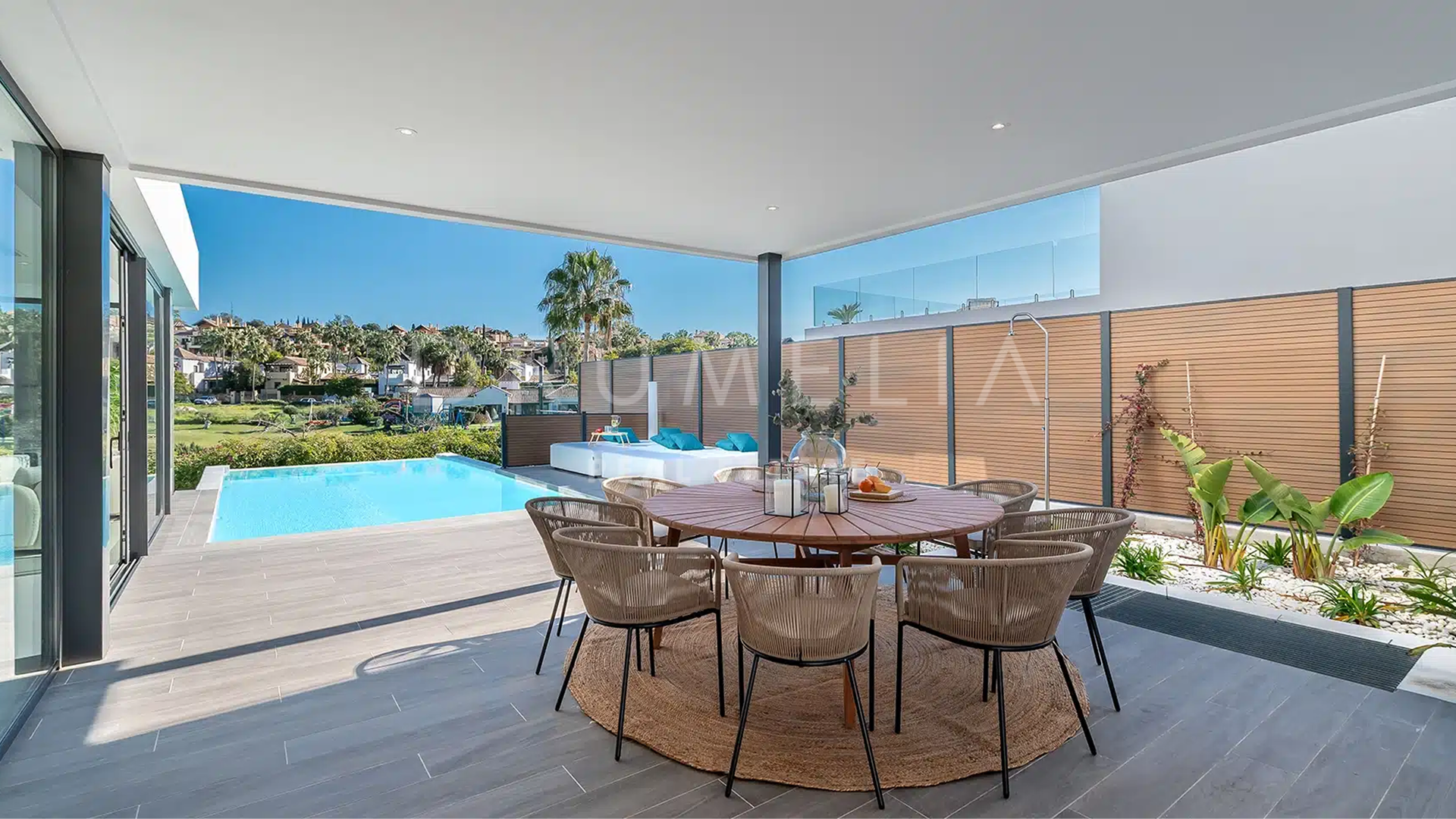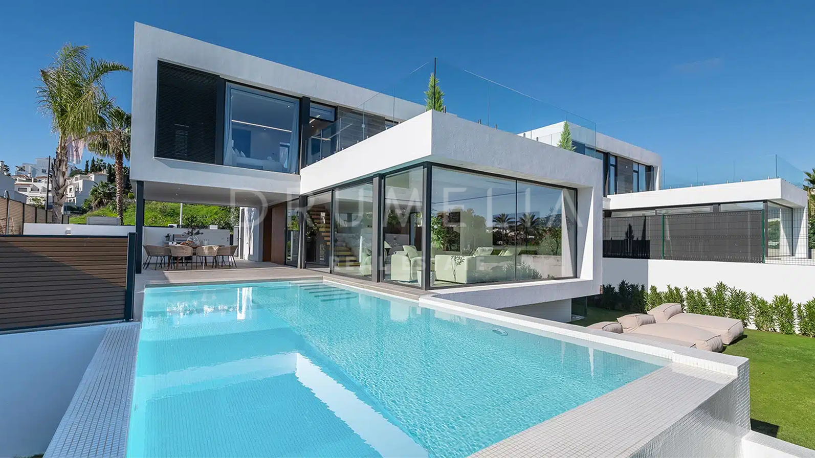 Situado en España, Andalucía, Málaga, Estepona (El Campanario), esta villa contemporánea goza de vistas abiertas al golf en una de las zonas residenciales más establecidas de la Nueva Milla de Oro. Situado cerca de campos de golf, escuelas internacionales, clubes de playa y comodidades, la propiedad ofrece un equilibrio ideal entre privacidad, estilo de vida y accesibilidad, con Marbella, Puerto Banús y Estepona a poca distancia en coche.