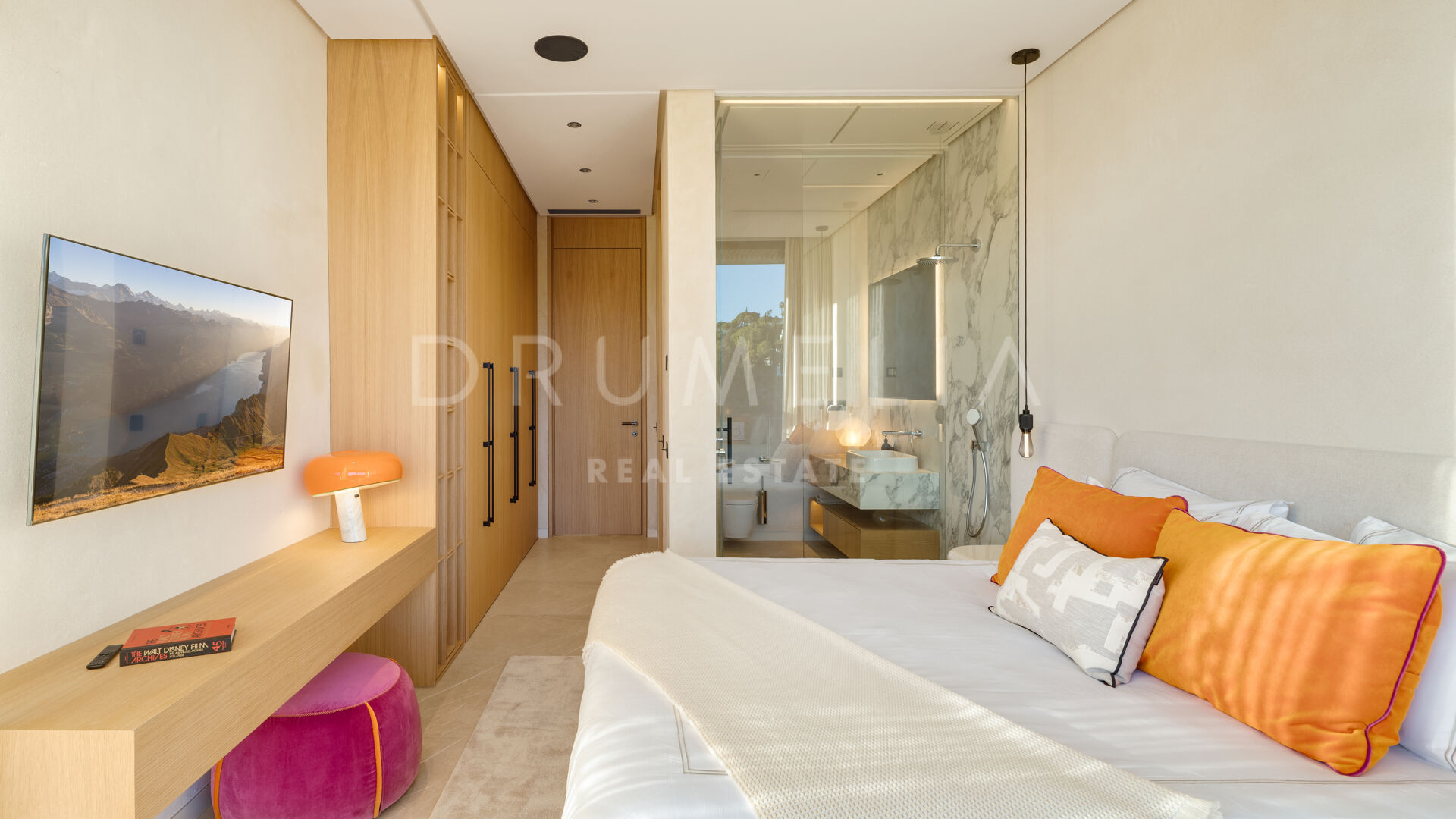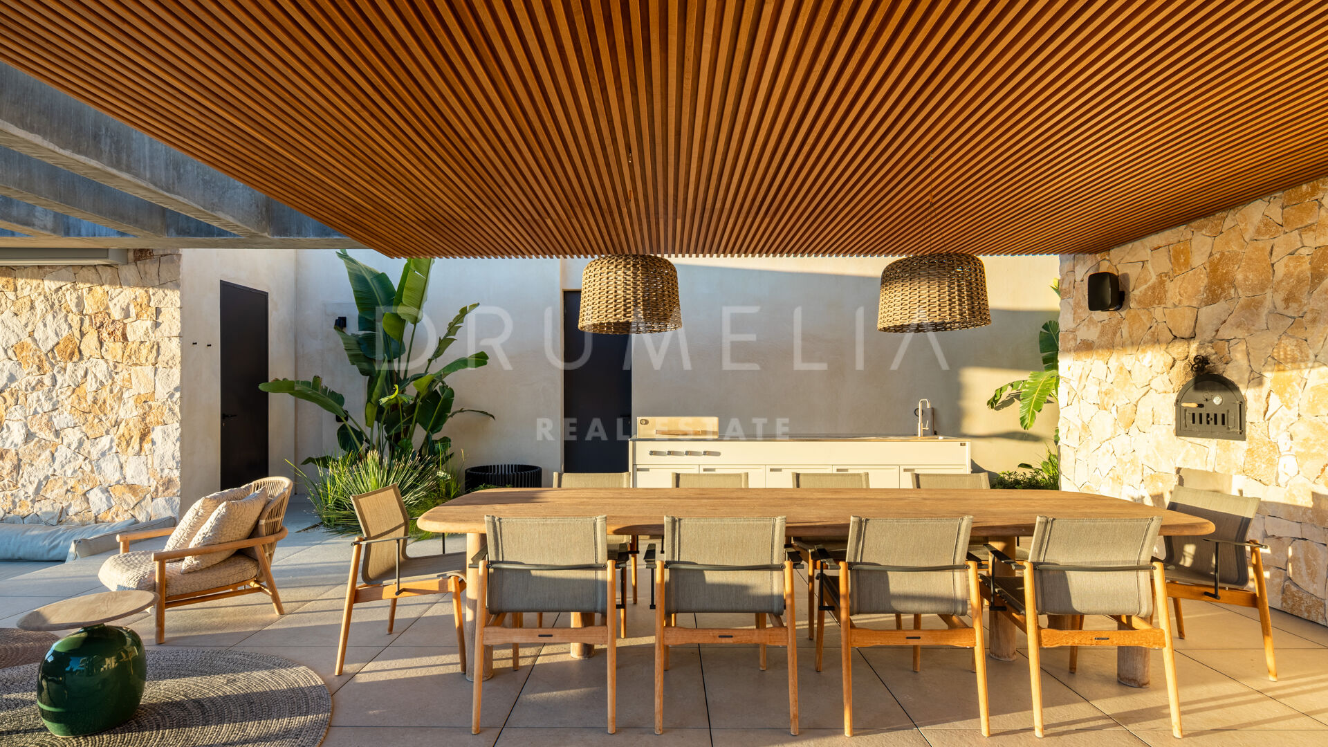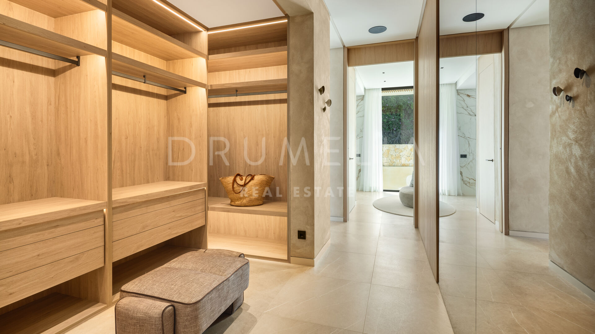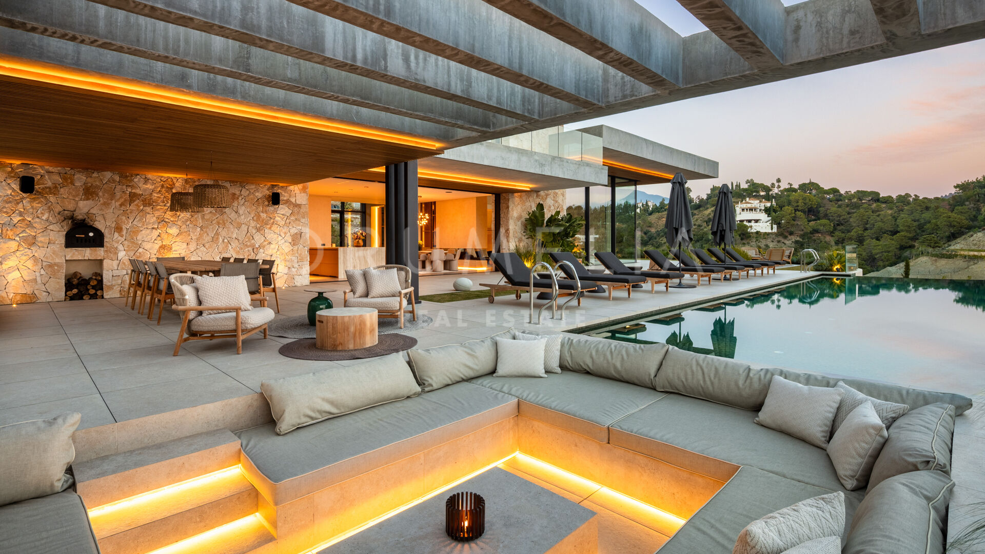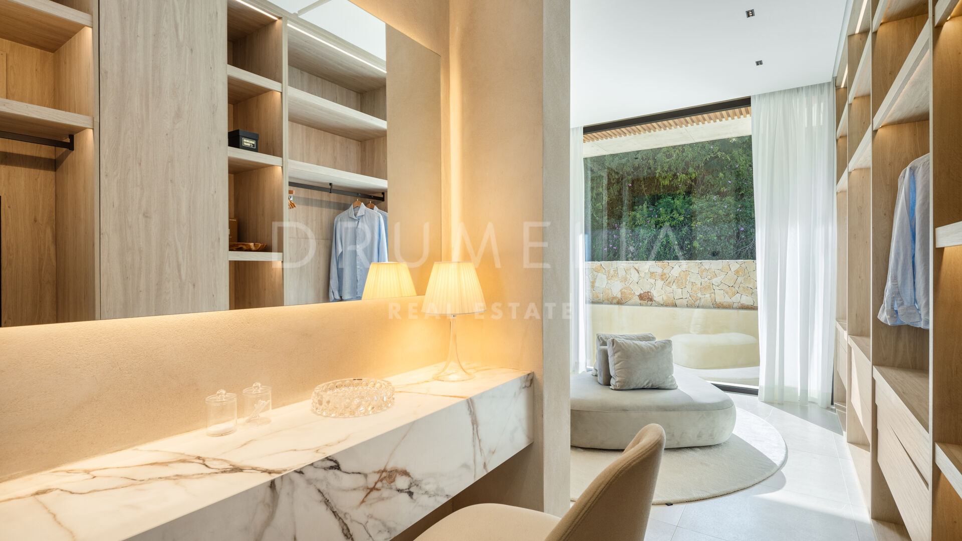La propiedad cuenta con ascensor que conecta todas las plantas y un sistema domótico que controla la iluminación, el clima y la seguridad. La sala técnica se encuentra fuera de la estructura principal para mayor discreción y facilitar el mantenimiento. Materiales naturales, detalles en madera y grandes superficies acristaladas aportan calidez a la arquitectura contemporánea. En el exterior, la piscina de agua salada está rodeada de jardines paisajísticos y amplias terrazas. Una cocina exterior y zonas de estar al aire libre ofrecen el entorno perfecto para el entretenimiento y las comidas al fresco. El aparcamiento privado está disponible con la posibilidad de crear un garaje cerrado.