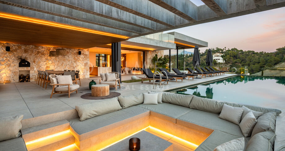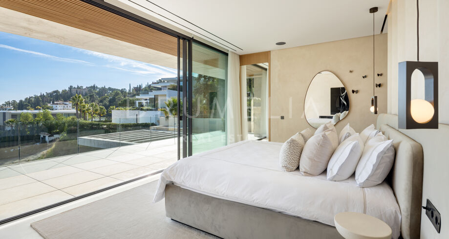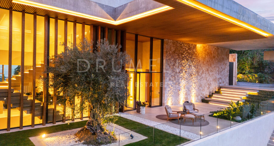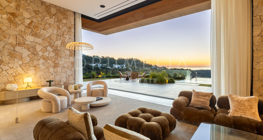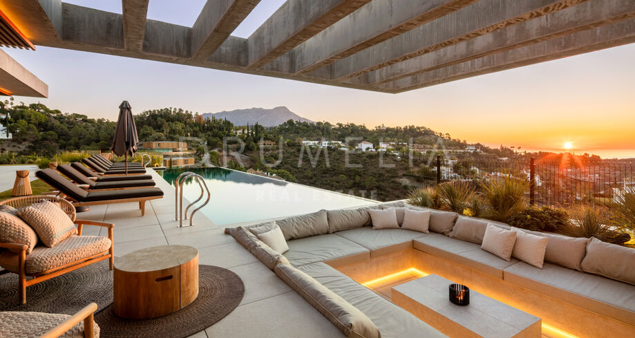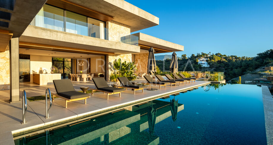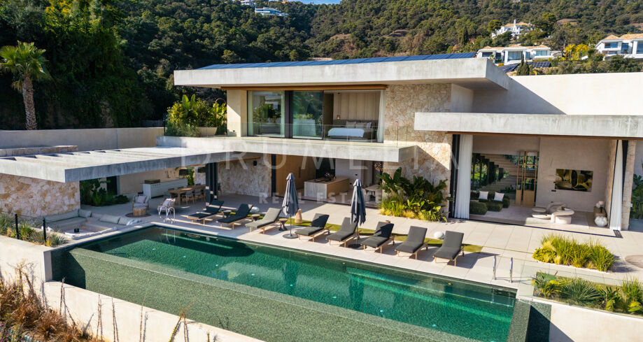Villa de nueva construcción en El Madroñal, Benahavís, con vistas panorámicas al mar, total privacidad y diseño contemporáneo en una exclusiva urbanización cerrada en la Costa del Sol.