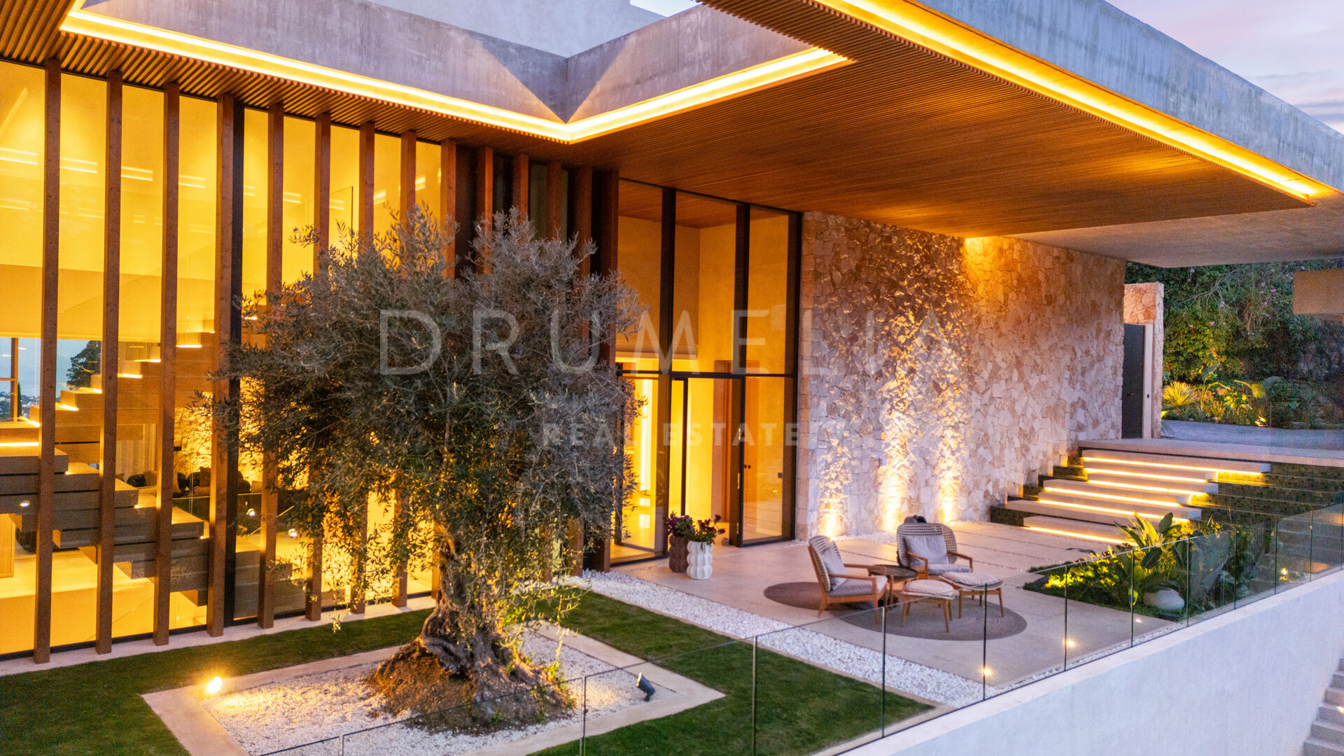 Esta lujosa villa se encuentra en una parcela privada de 4.149 m² y ofrece 1.028 m² construidos distribuidos en tres niveles, además de amplias terrazas diseñadas para disfrutar de la vida al aire libre. Situada a unos 400 metros sobre el nivel del mar y orientada al sur, la propiedad goza de vistas abiertas al mar Mediterráneo y a las montañas circundantes.