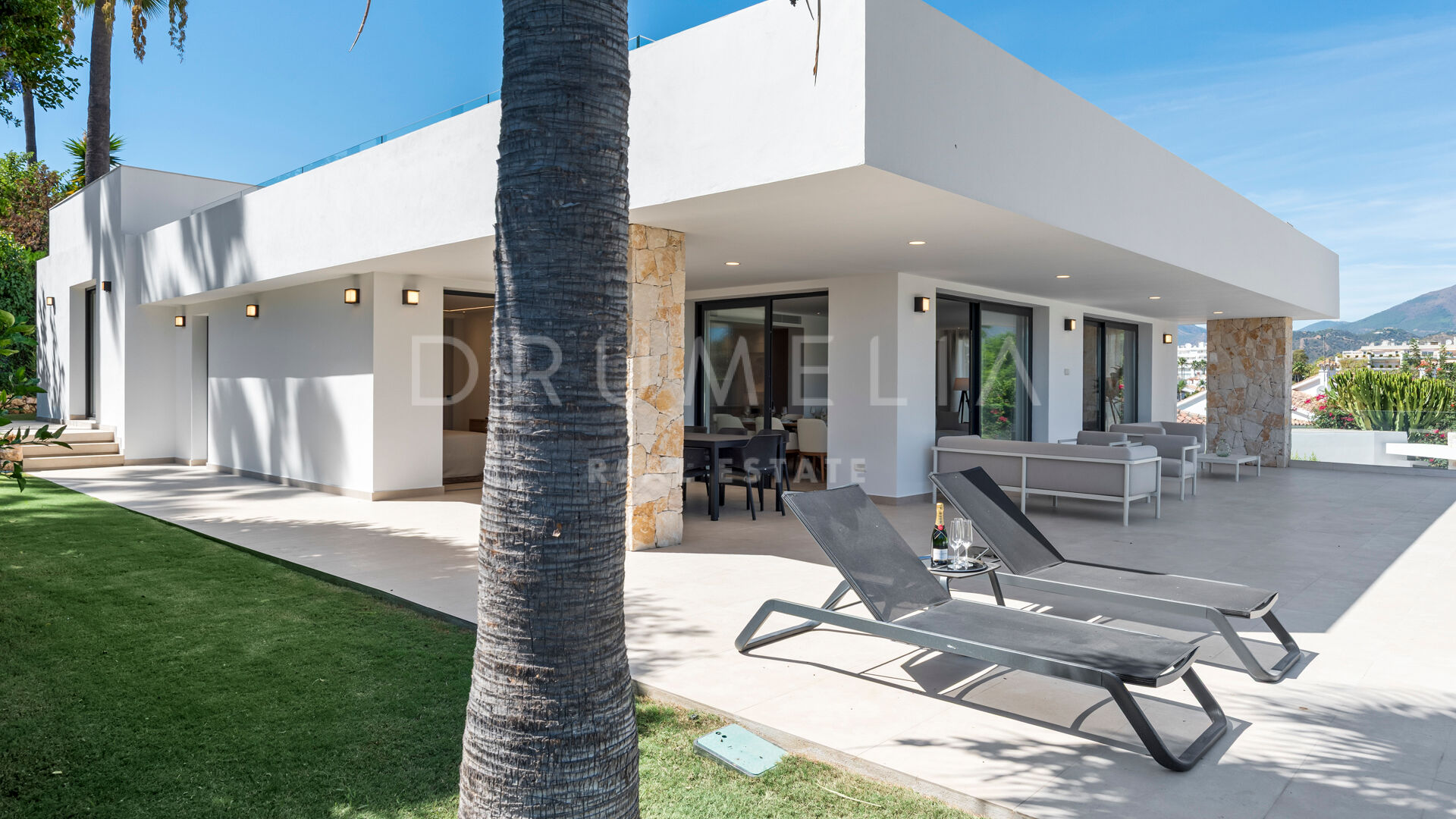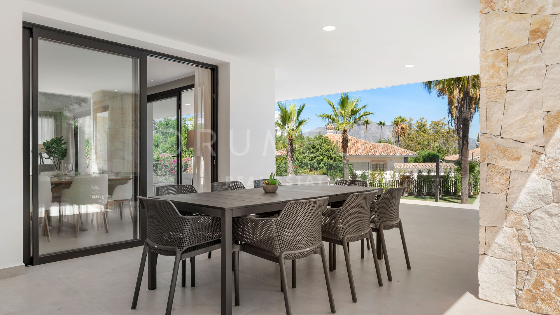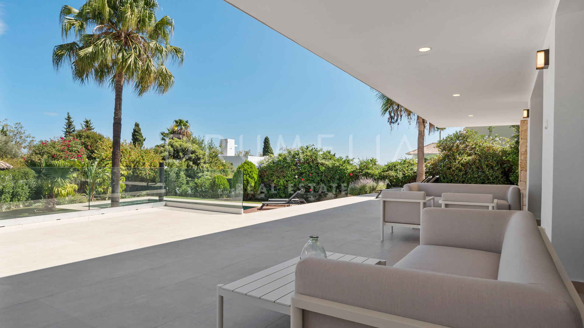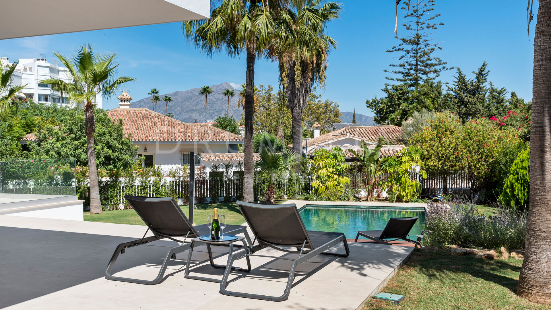 Esta elegante villa completamente amueblada en Guadalmina, San Pedro de Alcántara, combina a la perfección el estilo mediterráneo con un diseño contemporáneo. Situada a pocos pasos del prestigioso Club de Golf Guadalmina y a minutos de la playa, ofrece un entorno ideal tanto para residencia familiar como para segunda vivienda o inversión de lujo. Su localización garantiza tranquilidad, privacidad y acceso rápido a todos los servicios y atractivos de la Costa del Sol.