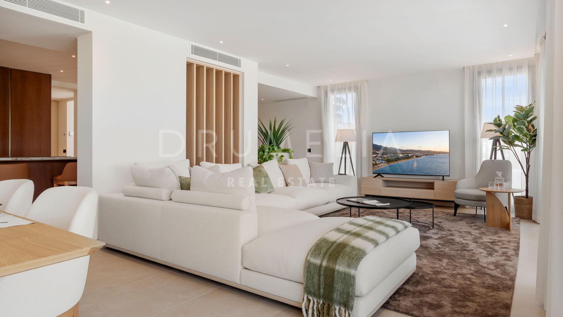 La propiedad cuenta con 4 amplios dormitorios llenos de luz natural y 4 modernos baños. El corazón de la vivienda es una cocina de concepto abierto con isla central y electrodomésticos de alta gama, conectada con un luminoso salón-comedor que se abre directamente a la terraza principal. Los espacios interiores se complementan con acabados de calidad, armarios empotrados con iluminación LED y un diseño funcional pensado para el máximo confort.