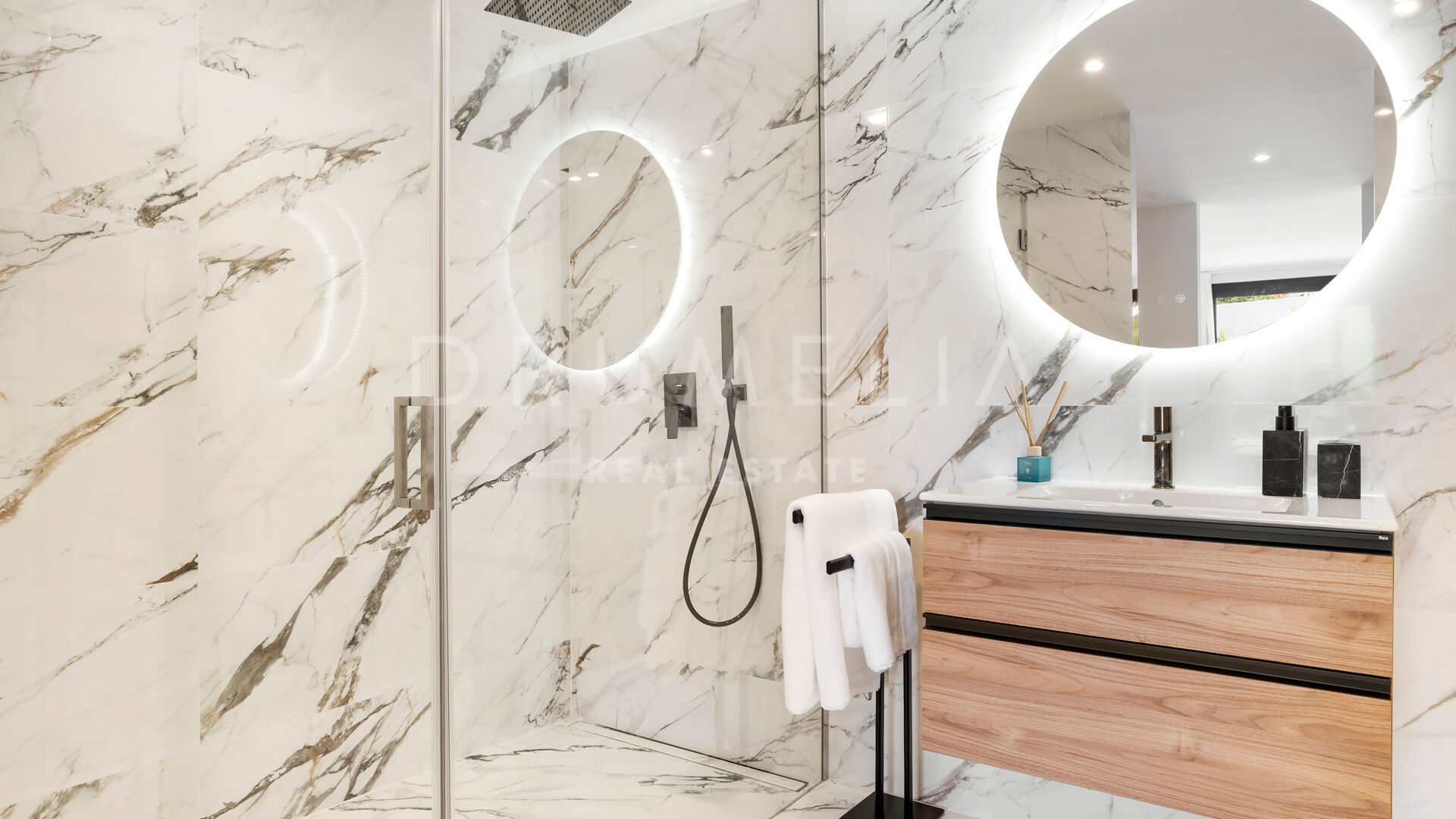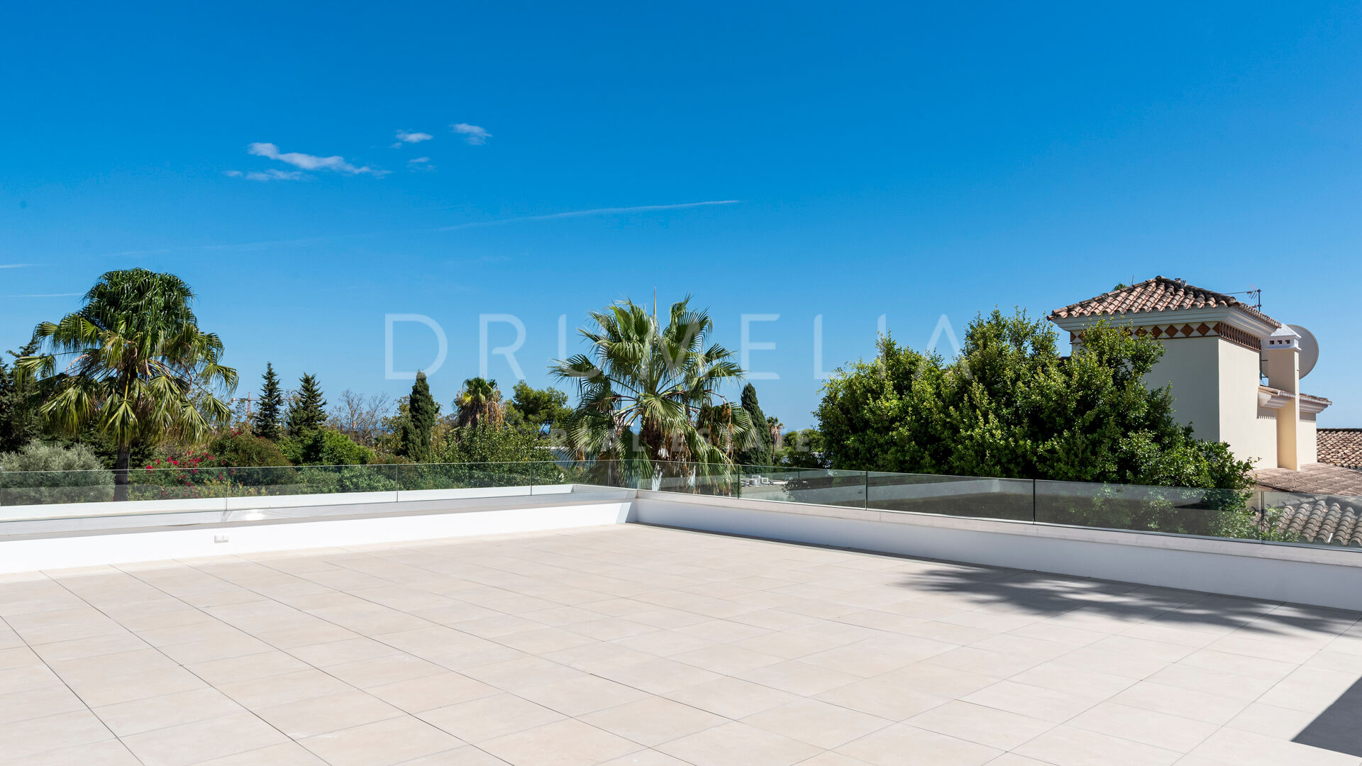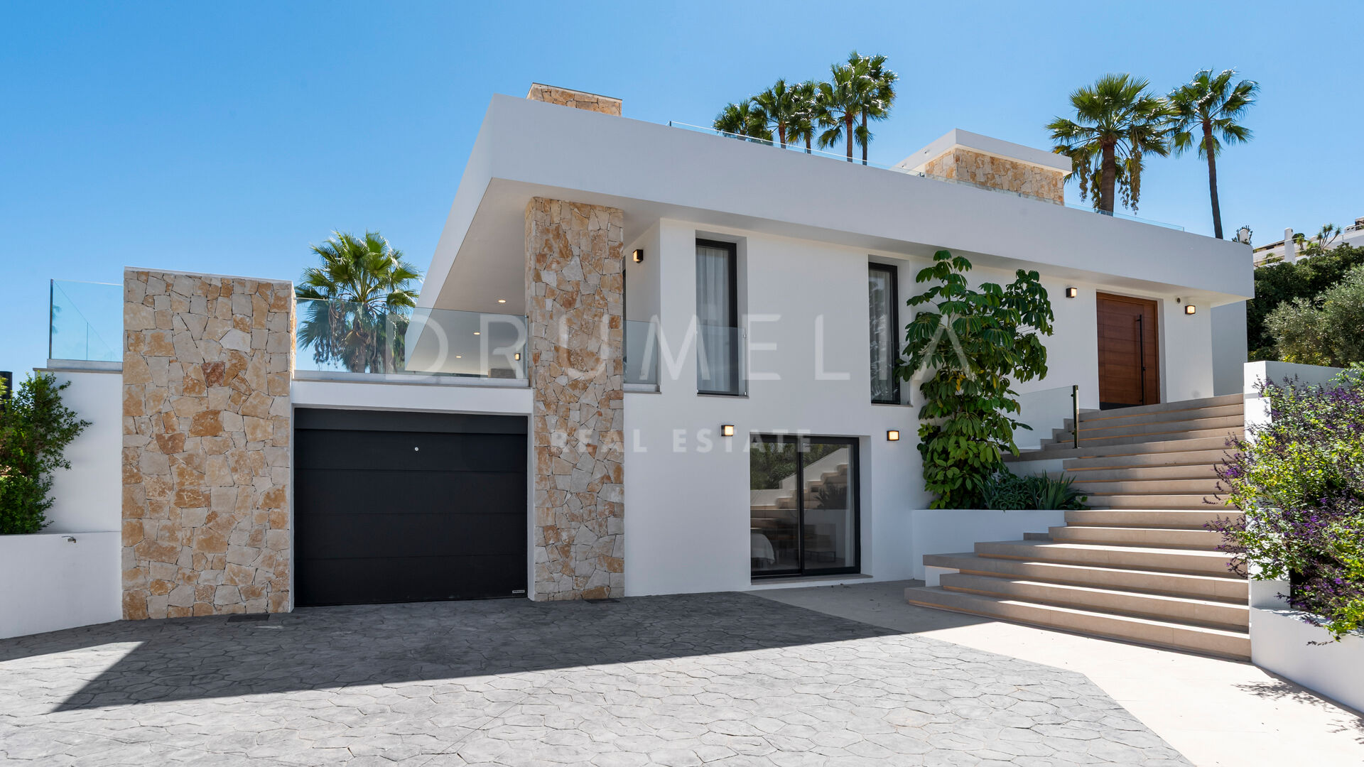 En el exterior, la villa ofrece un jardín paisajístico con piscina privada y una gran terraza en la azotea con vistas panorámicas al mar y la montaña. El garaje cubierto dispone de punto de carga para vehículos eléctricos, y la parcela ofrece espacio adicional para varios coches. Lista para entrar a vivir, esta residencia representa el equilibrio perfecto entre elegancia, comodidad y sostenibilidad en una de las zonas más codiciadas de Marbella.