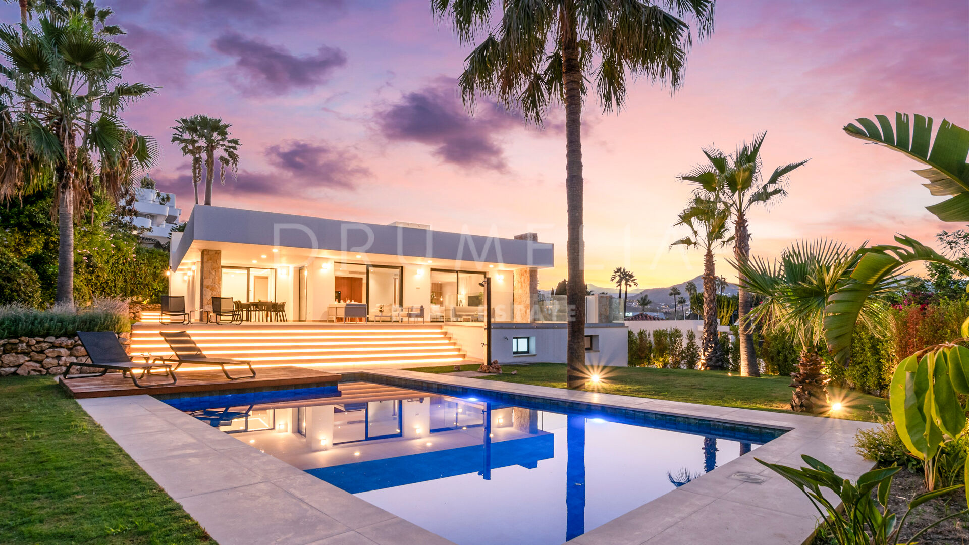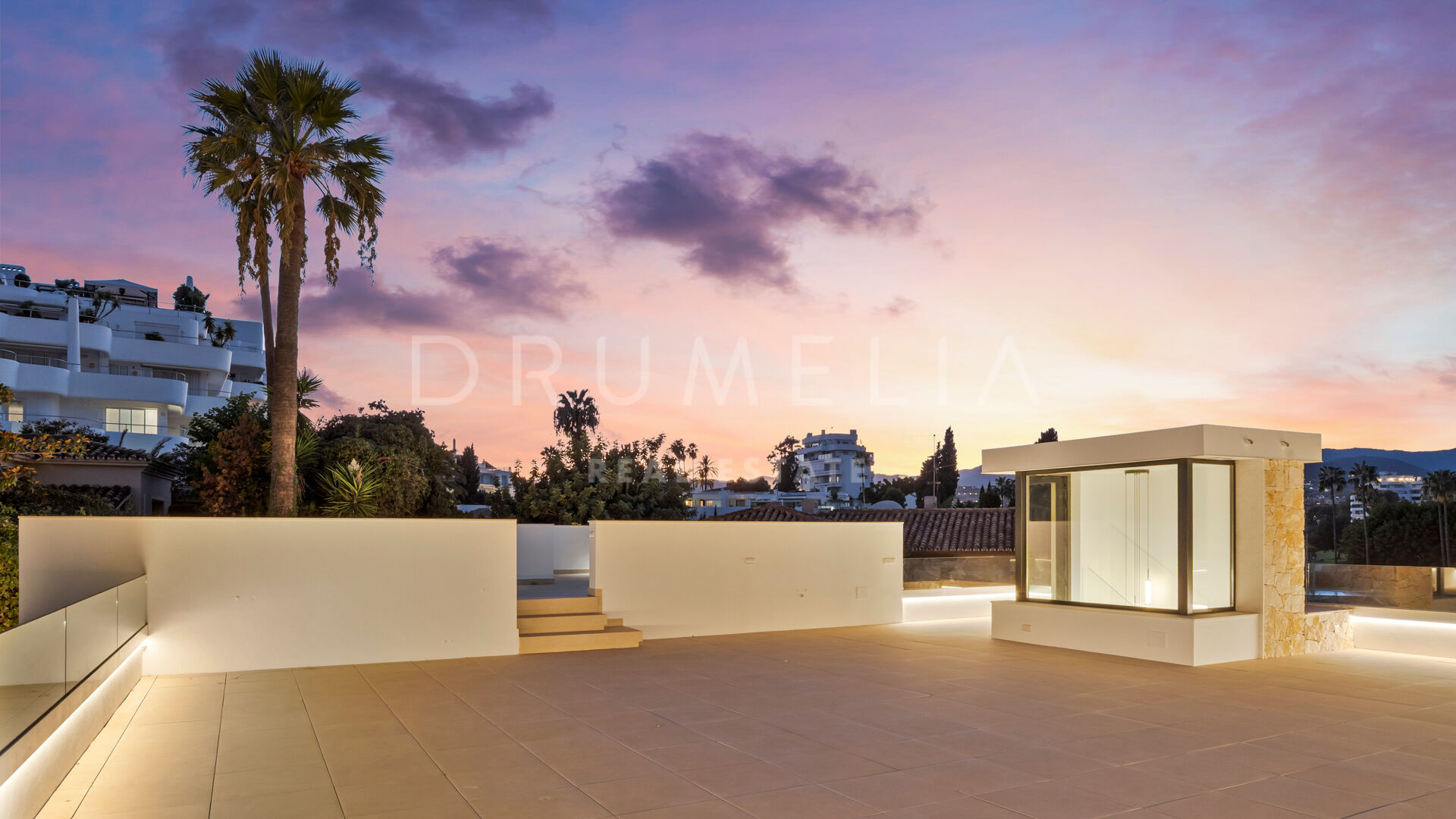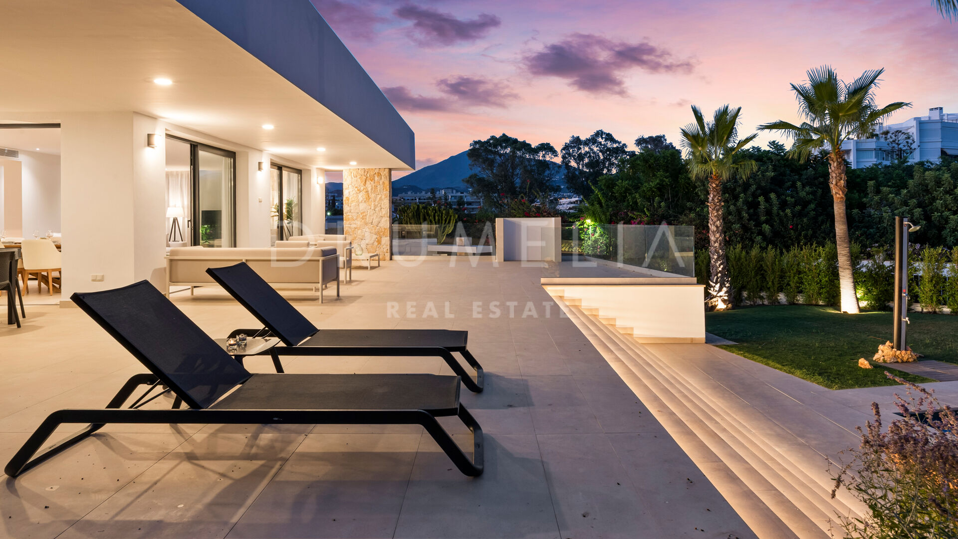 En el exterior, la villa ofrece un jardín paisajístico con piscina privada y una gran terraza en la azotea con vistas panorámicas al mar y la montaña. El garaje cubierto dispone de punto de carga para vehículos eléctricos, y la parcela ofrece espacio adicional para varios coches. Lista para entrar a vivir, esta residencia representa el equilibrio perfecto entre elegancia, comodidad y sostenibilidad en una de las zonas más codiciadas de Marbella.