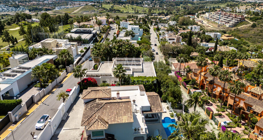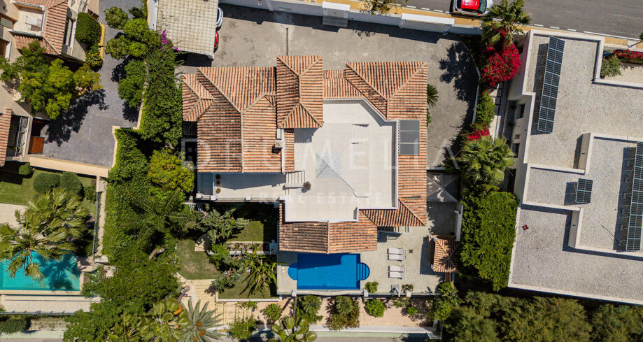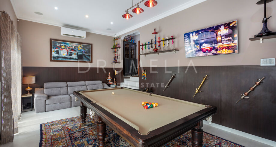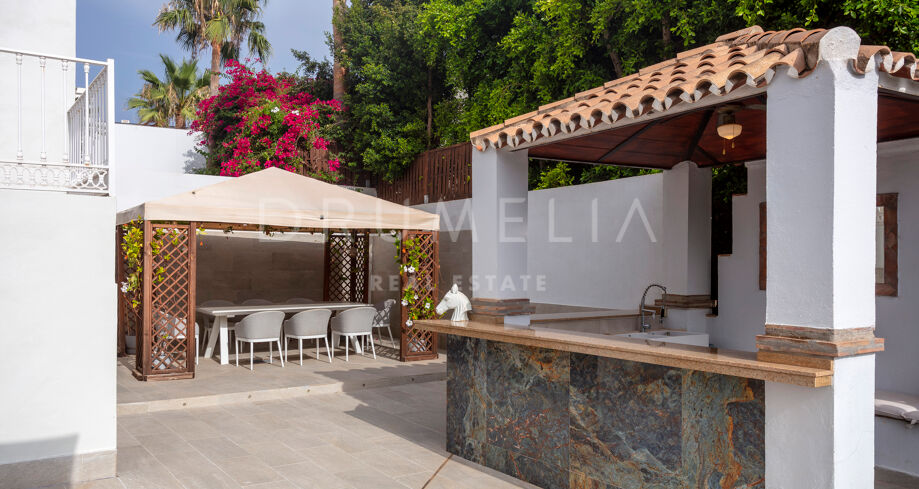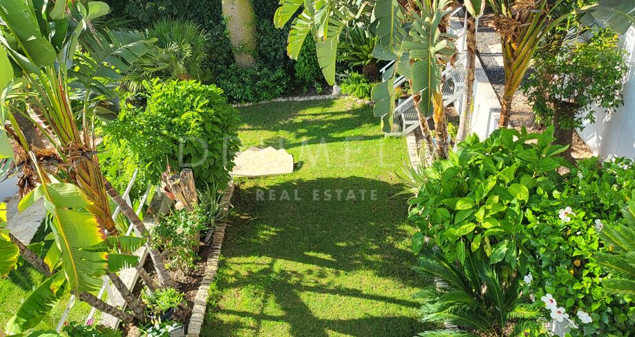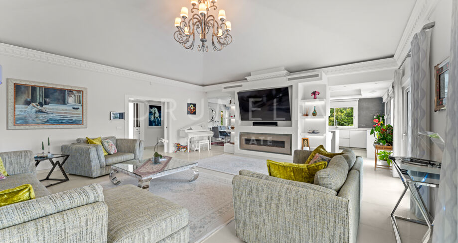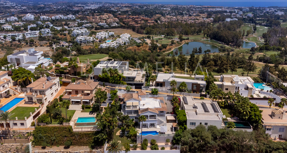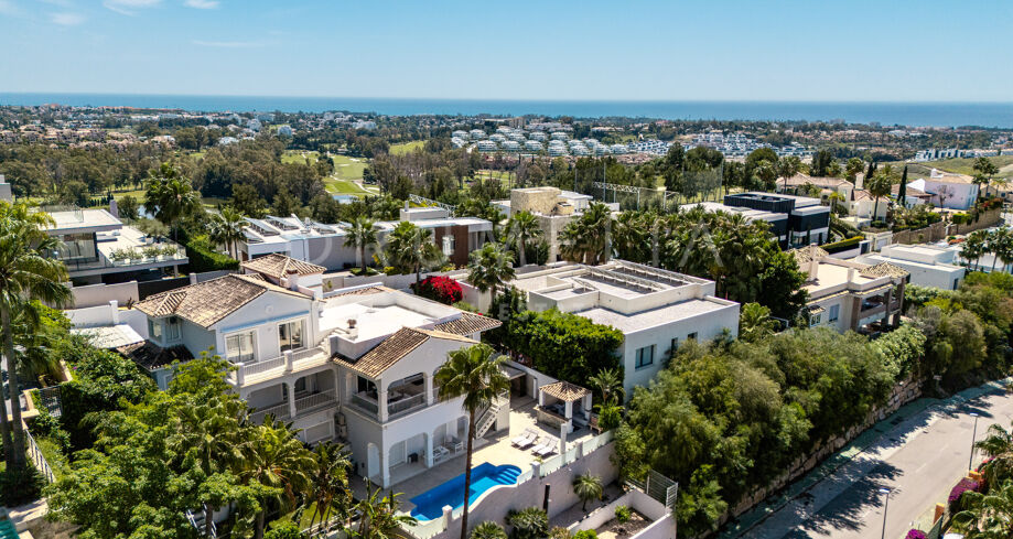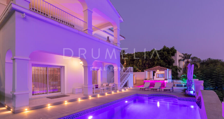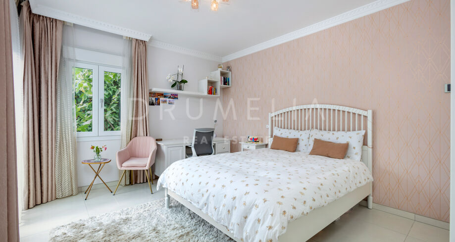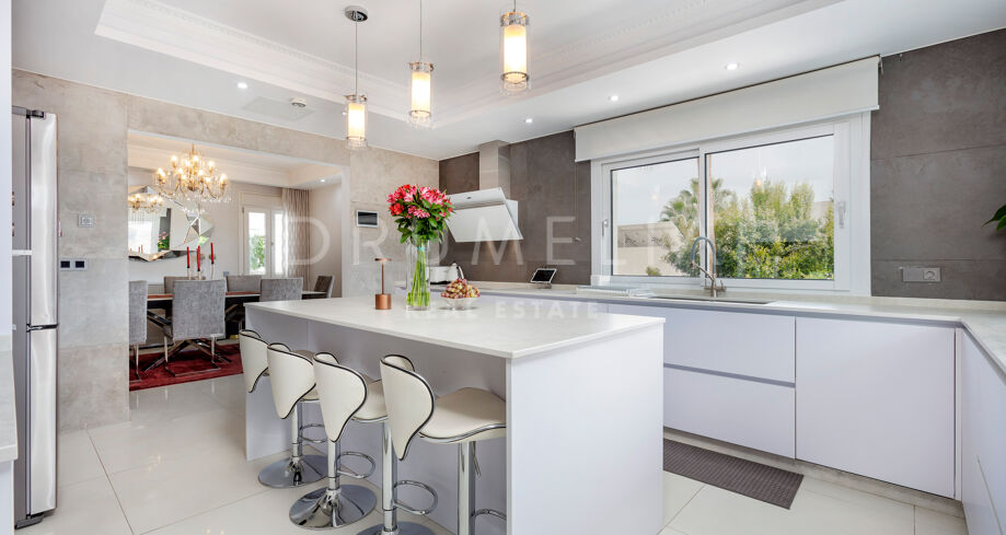 La planta baja está pensada para disfrutar y relajarse. Cuenta con una sala de cine con sonido de alta calidad, sala de juegos, gimnasio, una segunda cocina, una suite para invitados y salida directa a la piscina, la zona de barbacoa y el espacio chill-out. El jardín, que combina zonas abiertas con árboles frutales, aporta un toque natural muy especial. Con calefacción por suelo radiante, tecnología domótica y un sistema de seguridad de primer nivel, esta villa no solo es visualmente atractiva, sino que también es muy cómoda para el día a día. Una propiedad poco común en una de las zonas más valoradas de la costa.