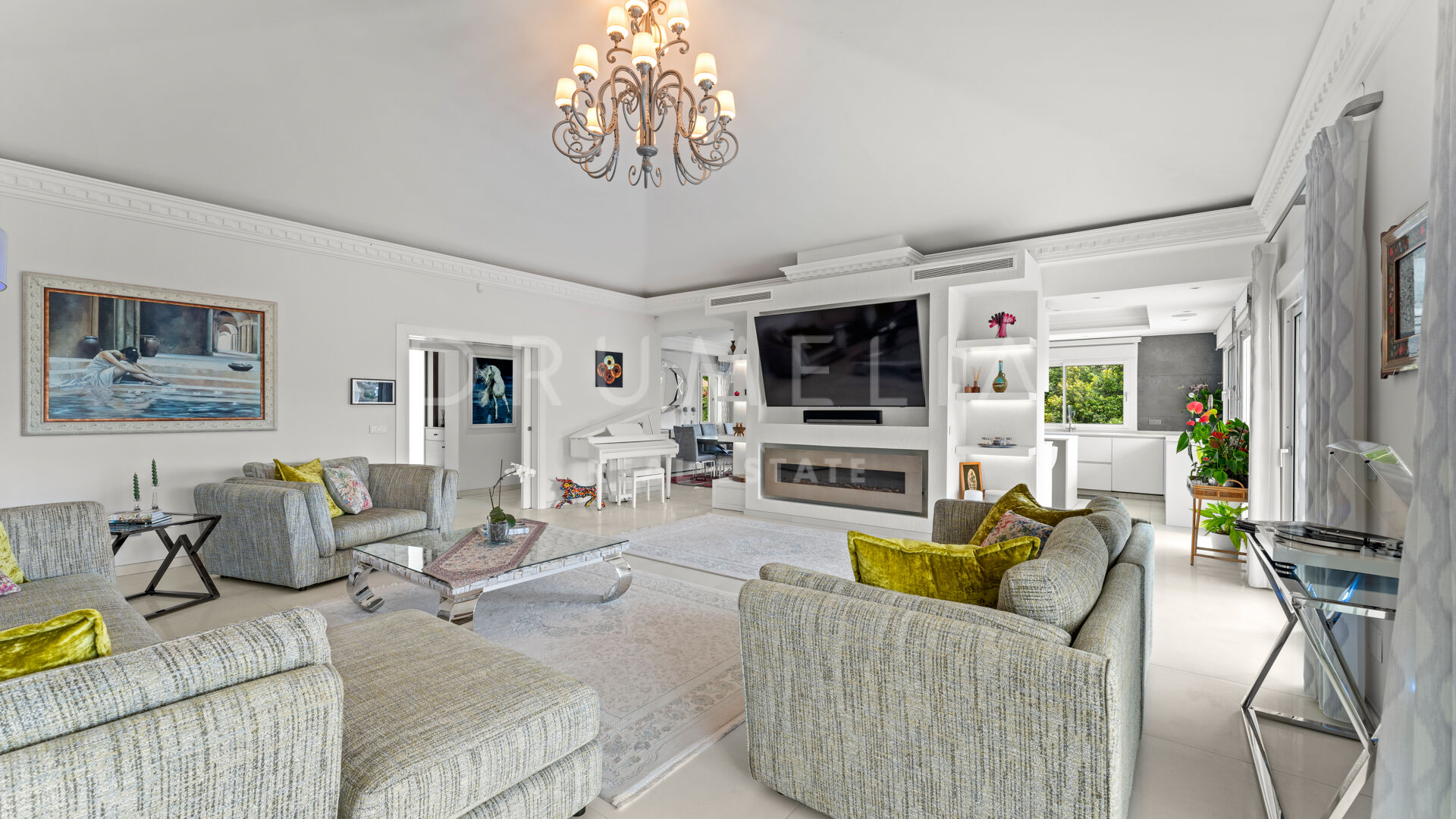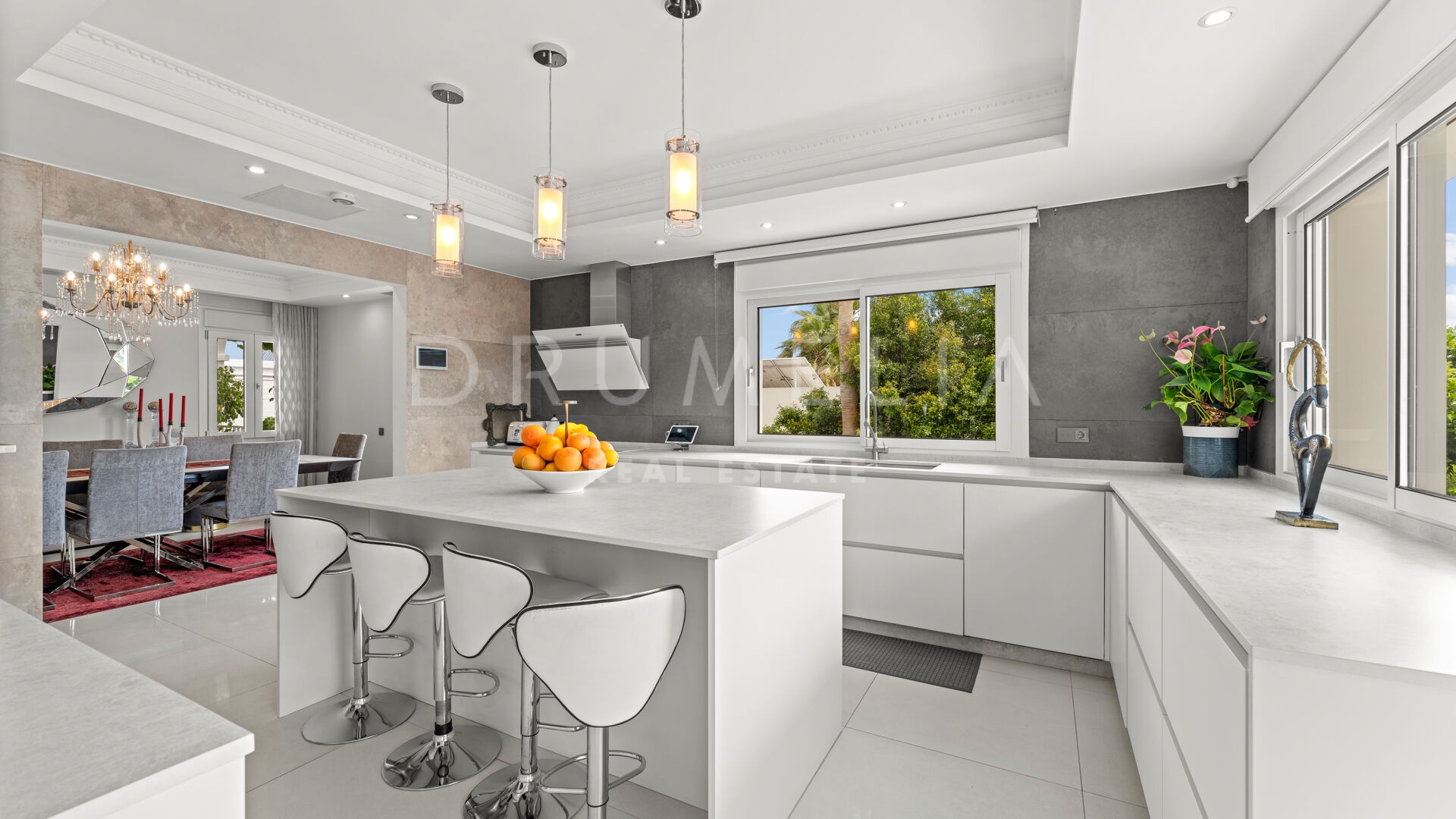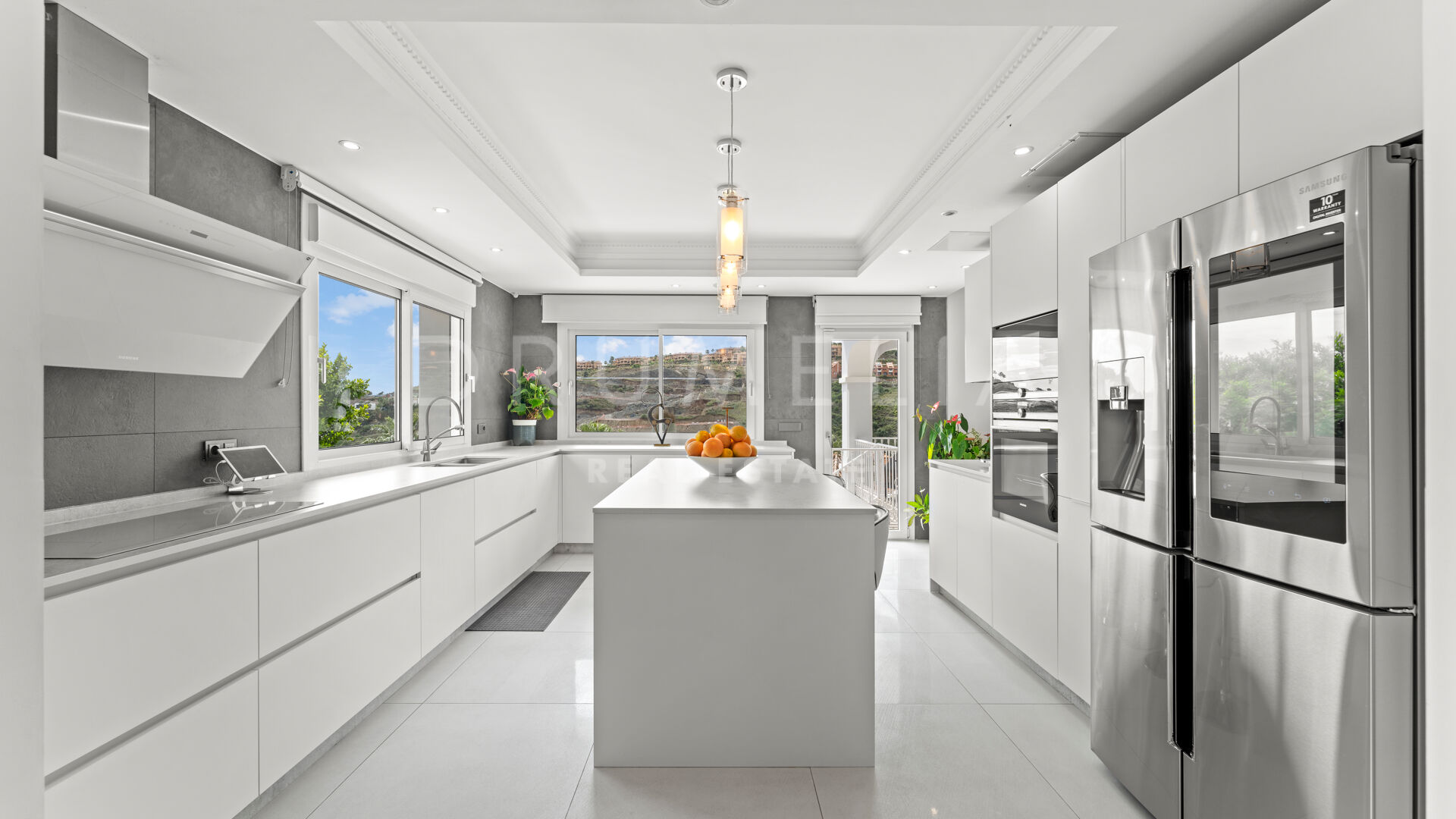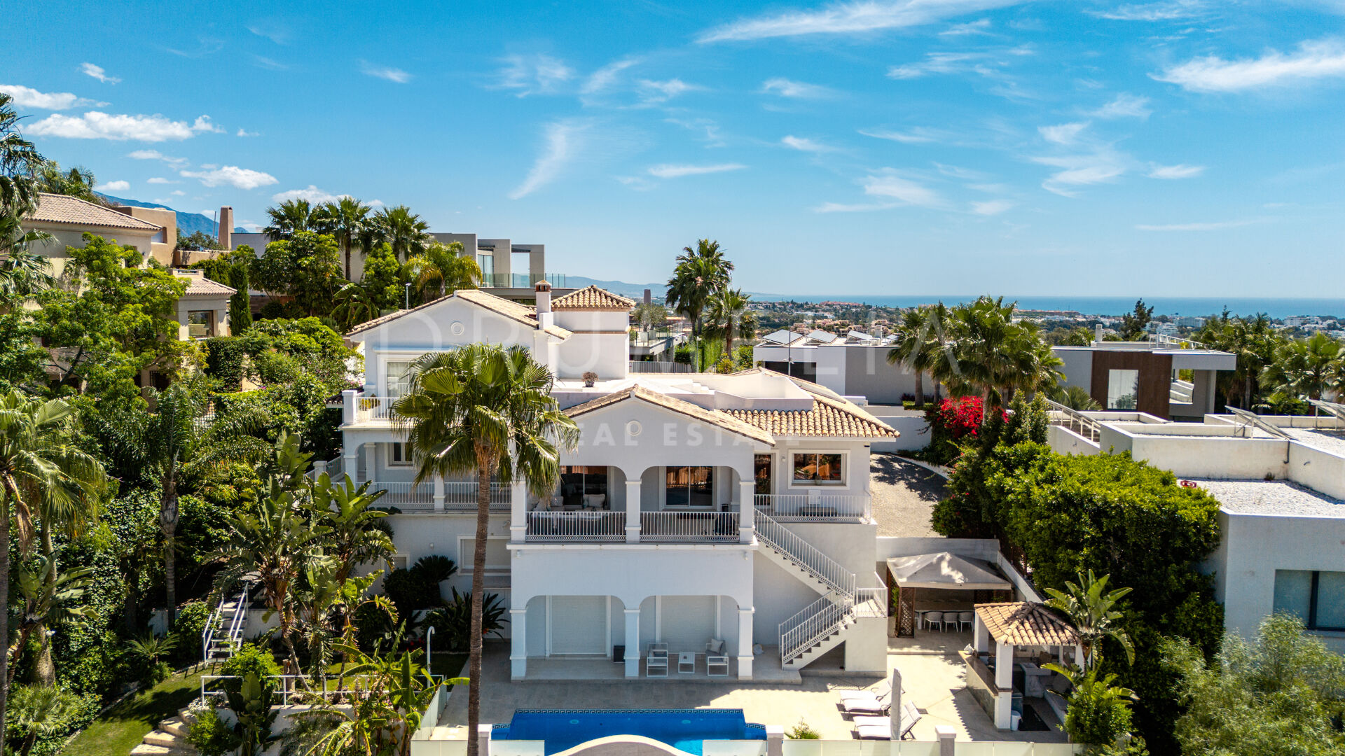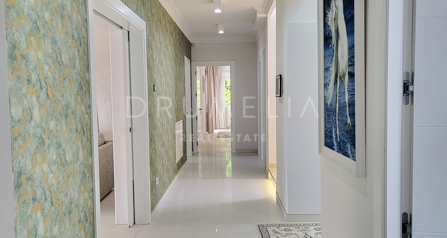 La planta baja está pensada para disfrutar y relajarse. Cuenta con una sala de cine con sonido de alta calidad, sala de juegos, gimnasio, una segunda cocina, una suite para invitados y salida directa a la piscina, la zona de barbacoa y el espacio chill-out. El jardín, que combina zonas abiertas con árboles frutales, aporta un toque natural muy especial. Con calefacción por suelo radiante, tecnología domótica y un sistema de seguridad de primer nivel, esta villa no solo es visualmente atractiva, sino que también es muy cómoda para el día a día. Una propiedad poco común en una de las zonas más valoradas de la costa.