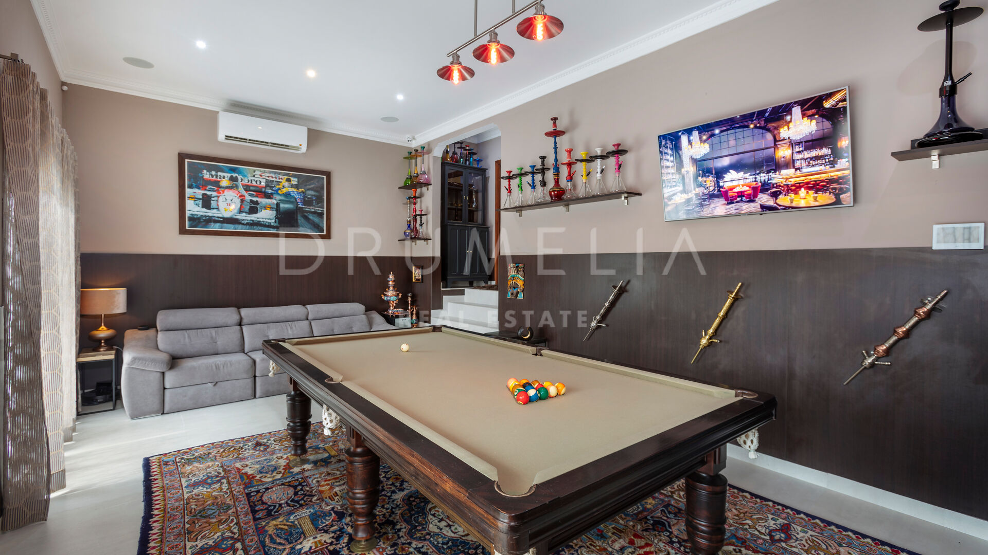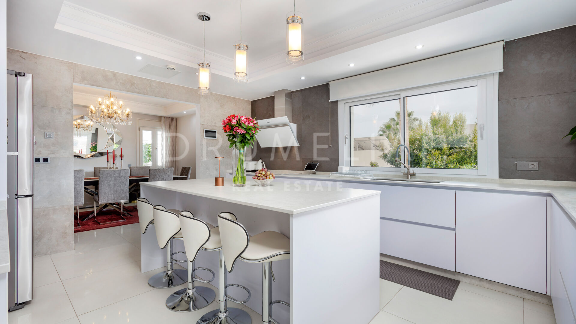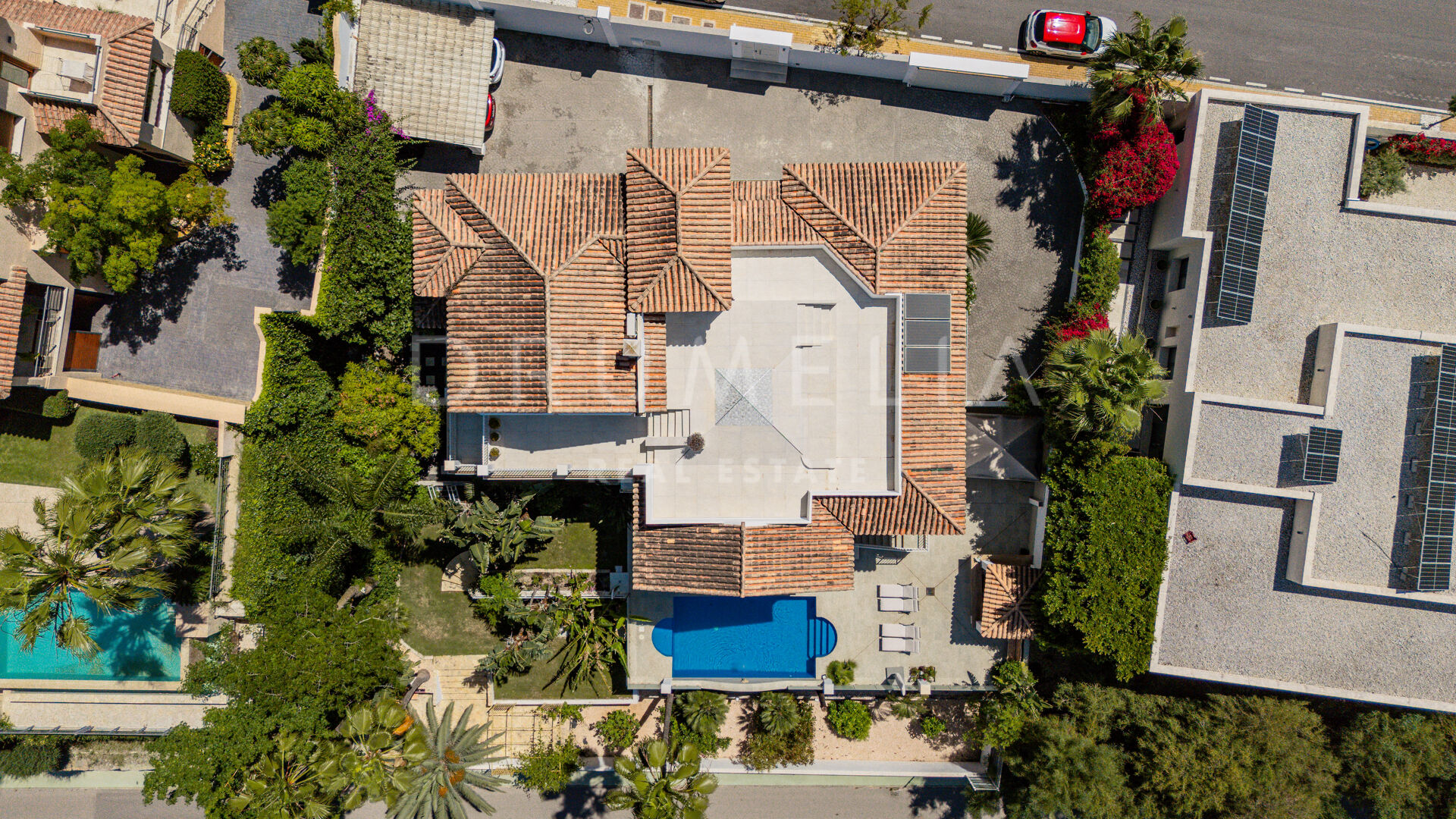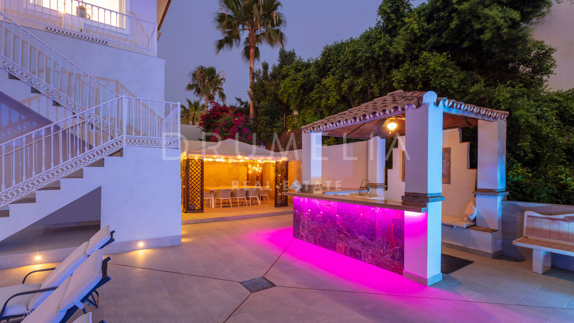 La planta baja está pensada para disfrutar y relajarse. Cuenta con una sala de cine con sonido de alta calidad, sala de juegos, gimnasio, una segunda cocina, una suite para invitados y salida directa a la piscina, la zona de barbacoa y el espacio chill-out. El jardín, que combina zonas abiertas con árboles frutales, aporta un toque natural muy especial. Con calefacción por suelo radiante, tecnología domótica y un sistema de seguridad de primer nivel, esta villa no solo es visualmente atractiva, sino que también es muy cómoda para el día a día. Una propiedad poco común en una de las zonas más valoradas de la costa.