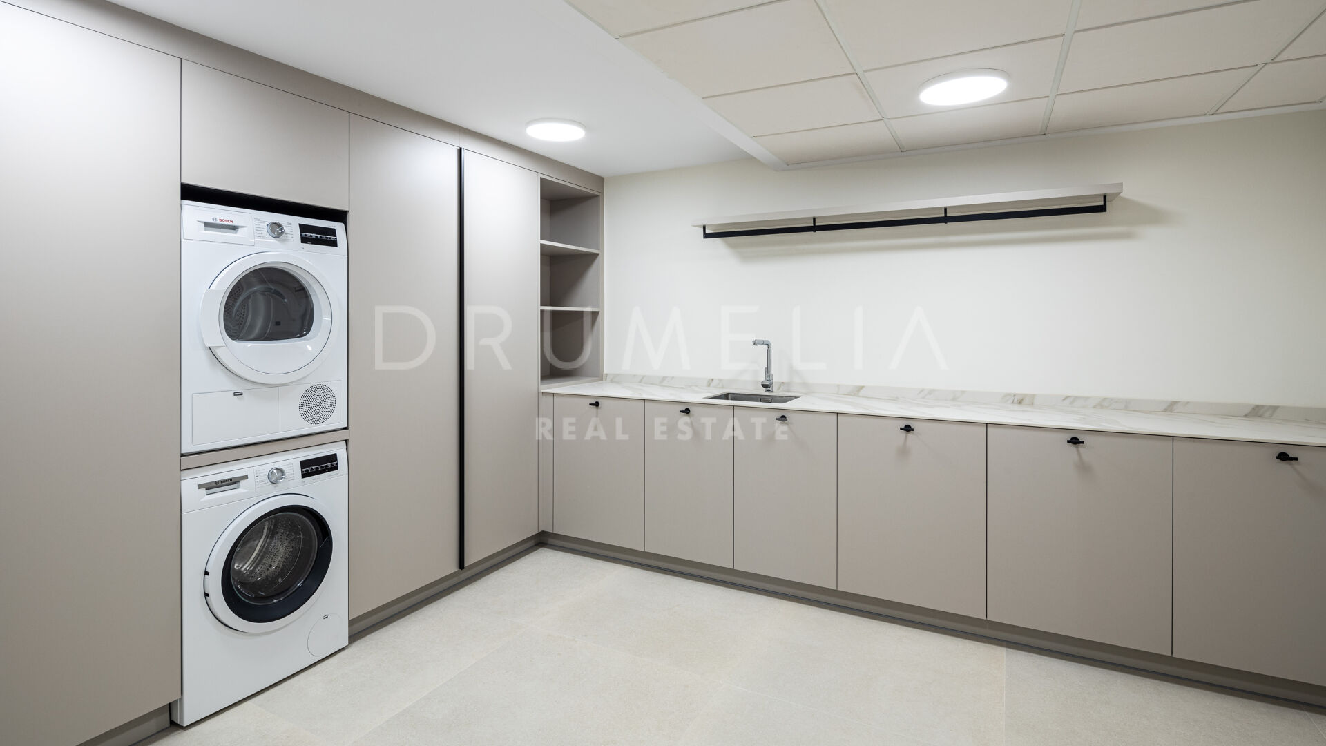 Distribuida en tres niveles, la planta superior está dedicada a dormitorios bien equipados, cada uno de los cuales crea un ambiente tranquilo y elegante. La suite principal es una muestra de diseño interior funcional y confortable, con terraza privada y cuarto de baño privado con ducha, bañera independiente, tocador doble de mármol y madera e iluminación LED.