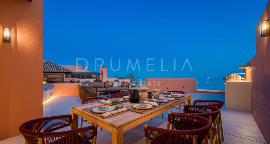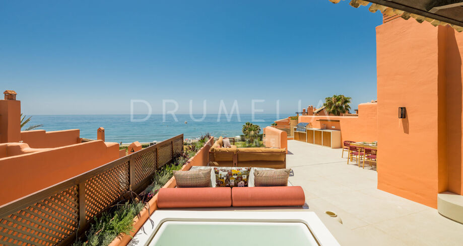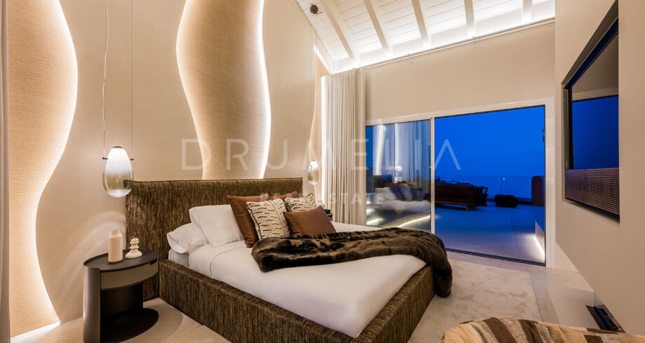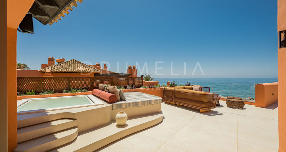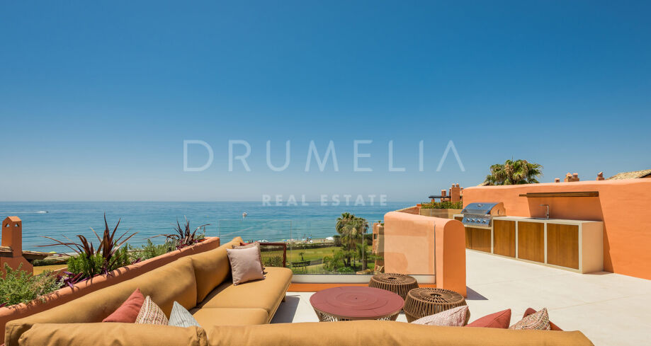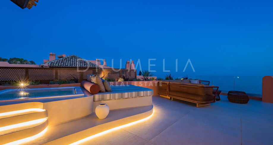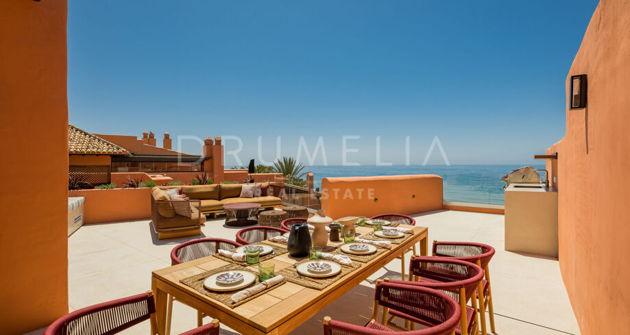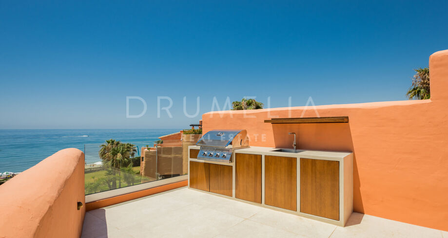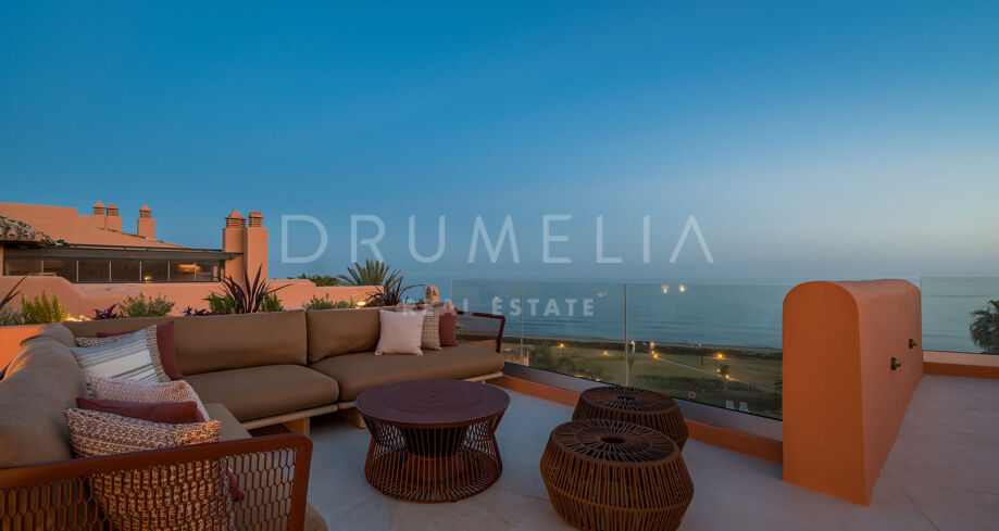Moderno ático dúplex de lujo en primera línea de playa con vistas al mar en La Morera, Marbella Este