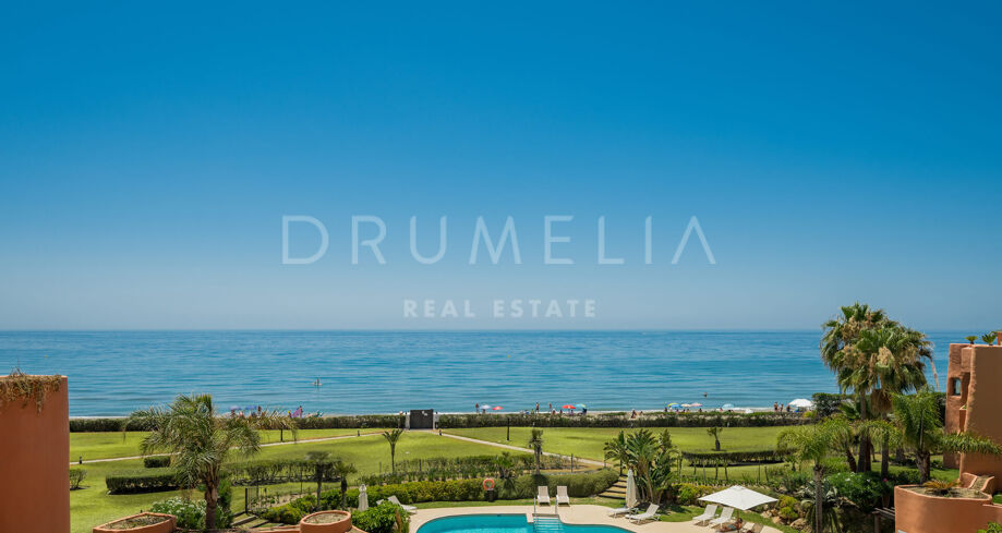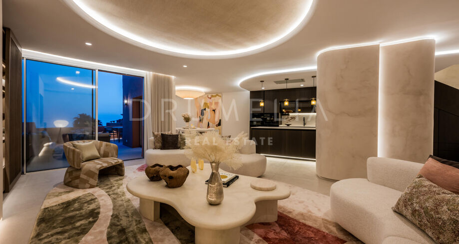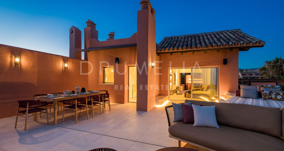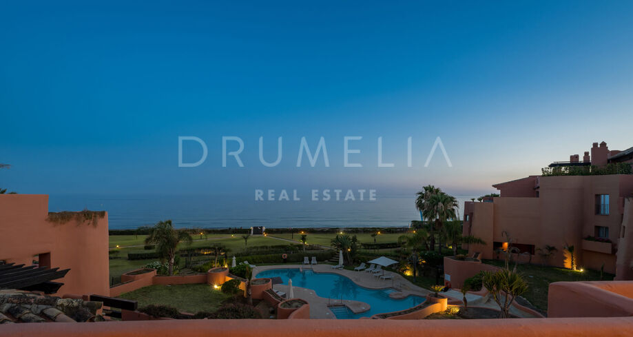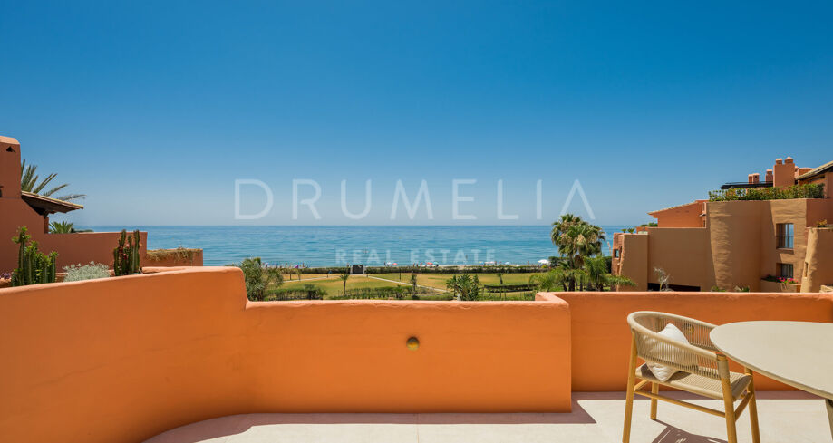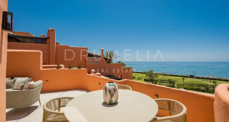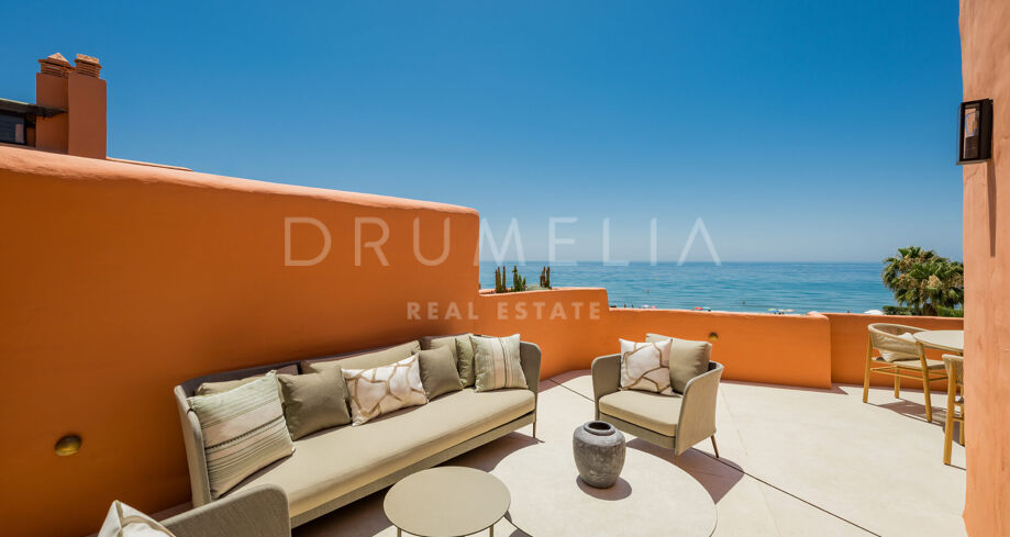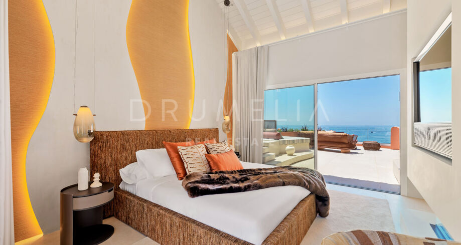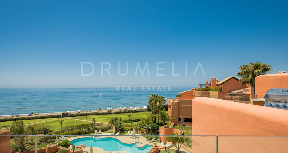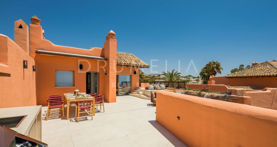 Moderno ático dúplex de lujo en primera línea de playa con vistas al mar en La Morera, Marbella Este